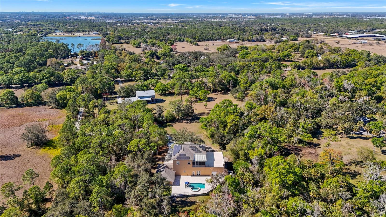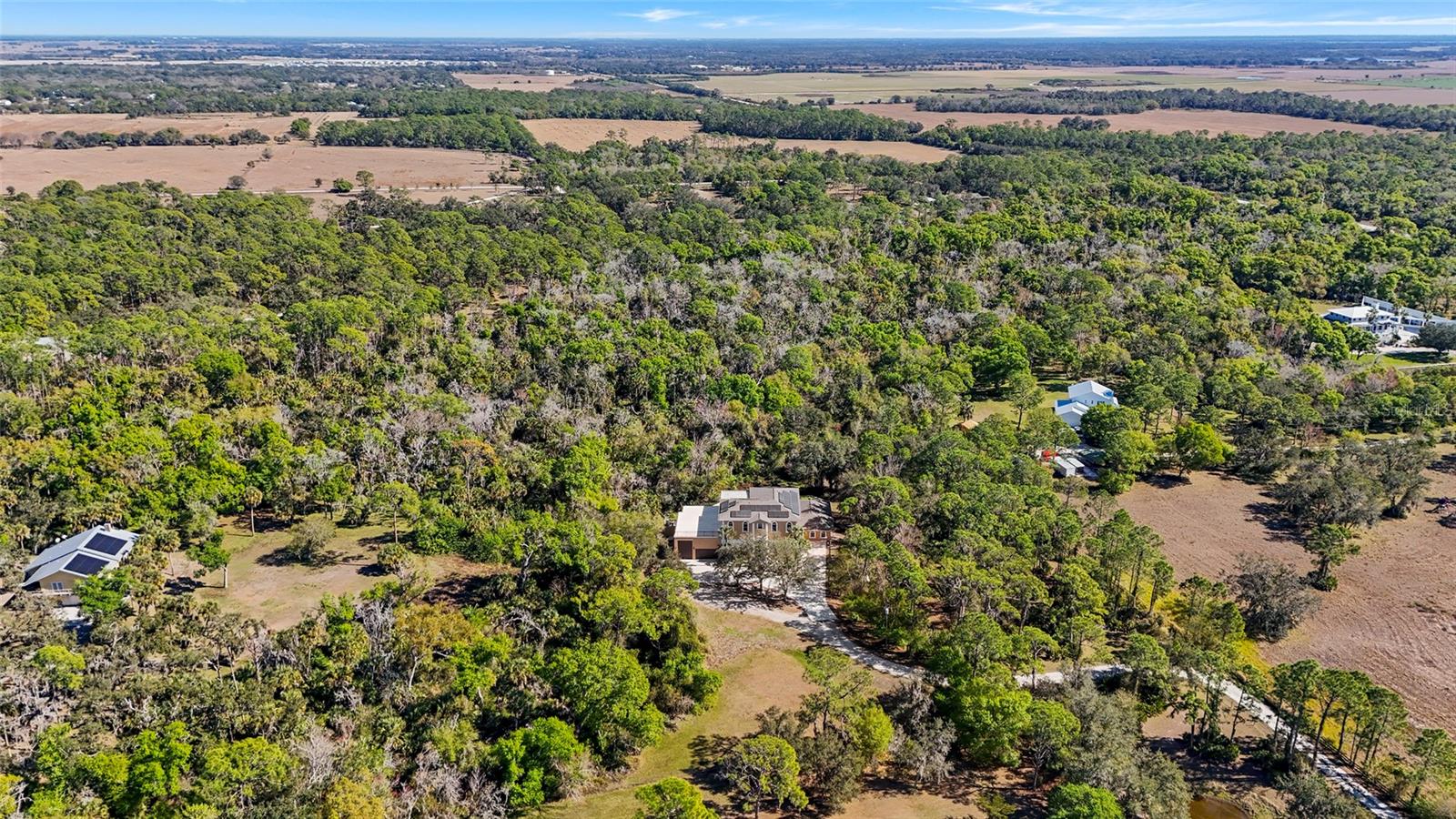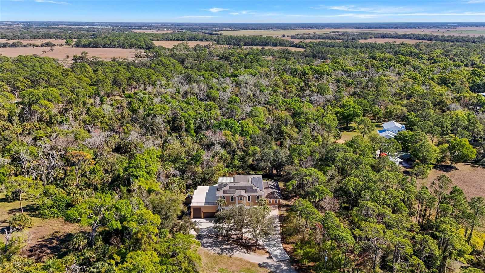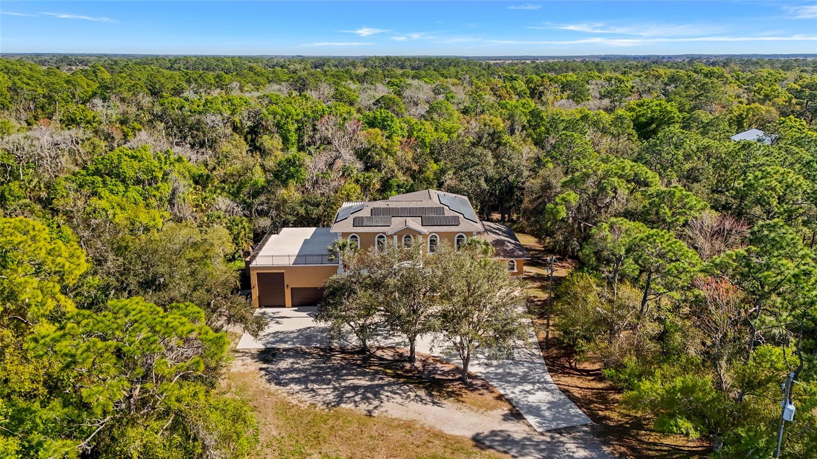 Welcome to an exceptional, one-of-a-kind luxury estate offering total privacy, massive upgrades,and unmatched versatility, all just minutes from Lakewood Ranch and every modernconvenience.At the heart of this property is a jaw-dropping RV and collector's dream garage! The Garage ishurricane-rated, plumbed for a future bathroom, equipped with two 50-amp hookups, soaringceilings, and space to accommodate a 45+ foot RV plus up to six vehicles, boats, toys, orshowroom-quality car storage. Truly unmatched.This solid concrete, all-block construction estate features soaring 15-foot ceilings on both levels,elegant crown molding throughout the great room, dining area, and kitchen, and an incrediblecoral stone gas fireplace that anchors the living space with dramatic beauty.The thoughtfully designed floor plan offers 4+ bedrooms and 4.5 bathrooms, including aprivate-entry in-law suite or office -- perfect for multi-generational living, guests, or Airbnbpotential.The lower level features a versatile game room or potential second owner suite with wet bar,mini fridge, oversized storage, dual-sink bath, large shower, and hurricane-rated doors openingto the pool oasis.An acoustically soundproof theater room delivers a true cinematic experience and can easilyserve as an additional bedroom or retreat.Upstairs, the primary suite boasts a spa-style bath with jacuzzi tub and dual sinks, plus accessto a stunning 1,500-square-foot upper deck overlooking the heated massive elevated custompool including zero-entry tanning shelf, eight-person spa and surrounded by travertine is anentertainer's paradise offering breathtaking views.All of this sits on over 8 private acres with a long, secluded driveway offering TOTAL PRIVACYwith NO HOA, NO water bill, NO flood insurance requirement, low insurance, and because ofthe solar panels, a very low electric bill!This is a true luxury compound, entertainer's oasis, multi-generational estate, and investoropportunity wrapped into one -- powered by green energy, built to last with solid concreteconstruction, and unlike anything else on the market.Nothing compares in Sarasota or Lakewood Ranch for acreage, privacy, construction quality,and proximity to town -- with Publix, Aldi, Starbucks, hospitals, top-rated schools (includingOut-of-Door Academy), restaurants, parks, salons, theaters, and country clubs just minutesaway.Priced well below appraisal.Exceptional. Private. Luxurious. One-of-a-kind.