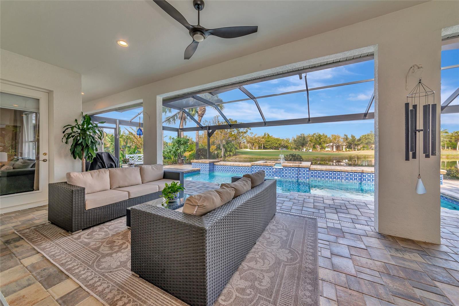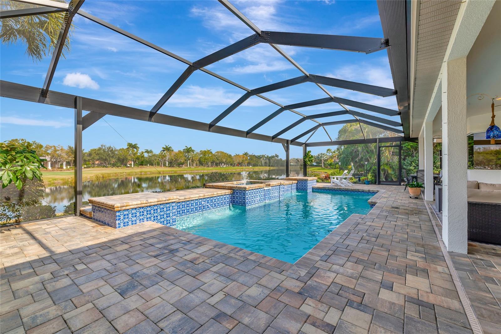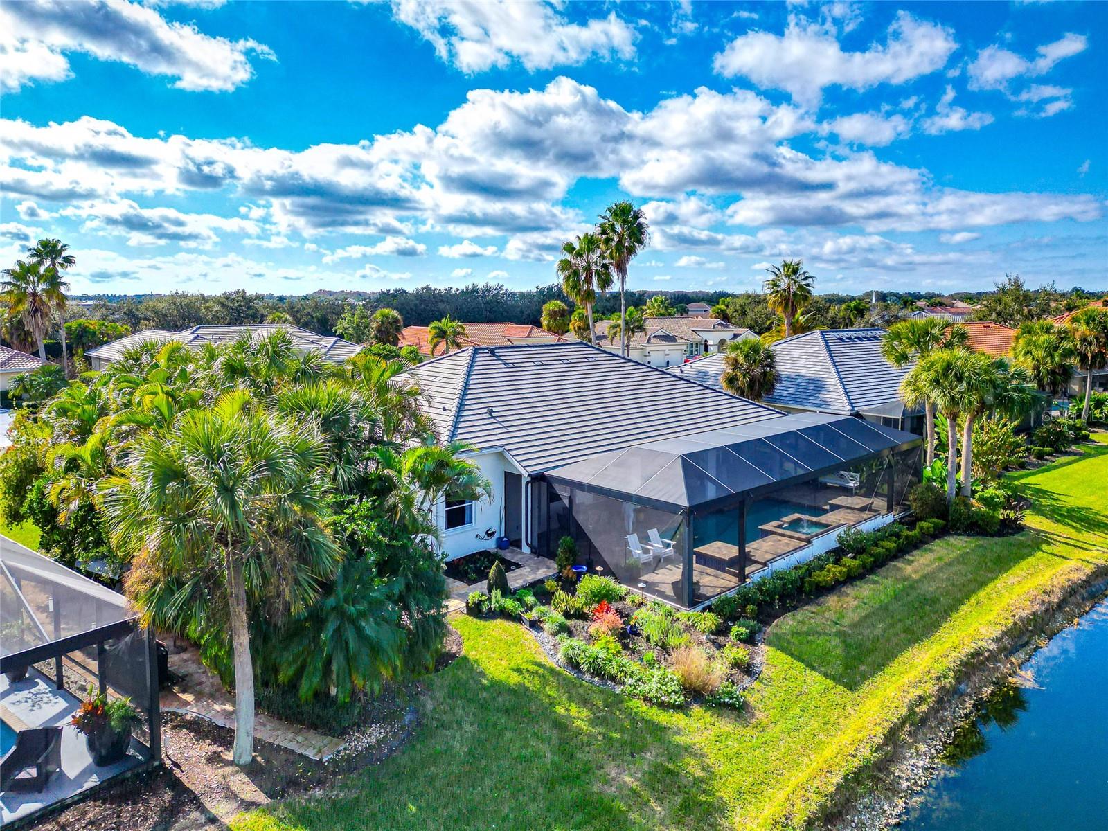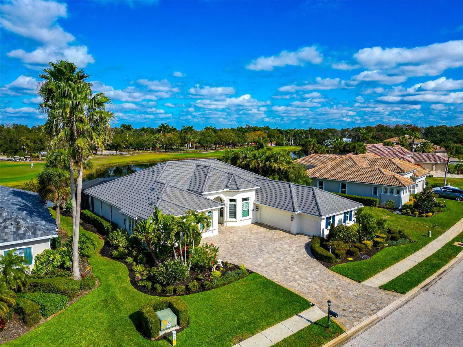Commanding lakefront and golf course views define this beautifully updated executive residence in Waterlefe Golf & River Club, one of the region's most distinctive gated communities offering championship golf and direct access to the Manatee River. From the screened lanai, enjoy long water views across the lake to the 4th hole--close enough to appreciate the scenery, yet comfortably distant for privacy.This home is truly move-in ready, with major improvements already completed, including an updated kitchen and interior, new tile roof, whole-house generator, impact-rated front windows, and storm shutters for peace of mind. Inside, the great room makes an immediate impression with soaring 14-foot ceilings, abundant natural light, and an open layout designed for both everyday living and entertaining. The fully updated kitchen features Cambria quartz countertops, premium wood cabinetry, Bosch and Wolf stainless steel appliances, and natural gas cooking, opening seamlessly to the main living areas.The primary suite serves as a private retreat with wood flooring, a spacious walk-in closet with custom built-ins, and a spa-inspired bath complete with a glass-block walk-in shower, garden tub, and dual vanities. Two guest bedrooms, a den, a formal dining room, and a generous home office provide flexibility for guests, work, and multi-use living.Pocketing sliders open to a resurfaced salt water pool and spa, enclosed by a Clear-View pool cage, creating a seamless indoor-outdoor living experience ideal for year-round enjoyment.An often-overlooked luxury, the oversized three-car garage is freshly painted and offers abundant practical storage for vehicles, golf carts, water gear, and hobbies.Life in Waterlefe centers around an active, resident-focused community. Residents enjoy the River Club with resident-owned riverfront dining, a 24-hour state-of-the-art fitness center, kayak launch, playground, and scenic nature trails. HOA fees include cable and internet, adding everyday convenience.Golf and boating are available by choice, not requirement. The championship golf course offers flexible join or pay-to-play options, a newly completed clubhouse restaurant, and an Aqua driving range. For boating enthusiasts, the option to purchase a boat slip provides direct access to the Manatee River and the Gulf beyond.Here, mornings can begin on the golf course, afternoons on the water, and evenings dining with friends and family along the river--all within your own gated community.Be sure to explore the 3D virtual tour for a true sense of the home's space, flow, and setting.