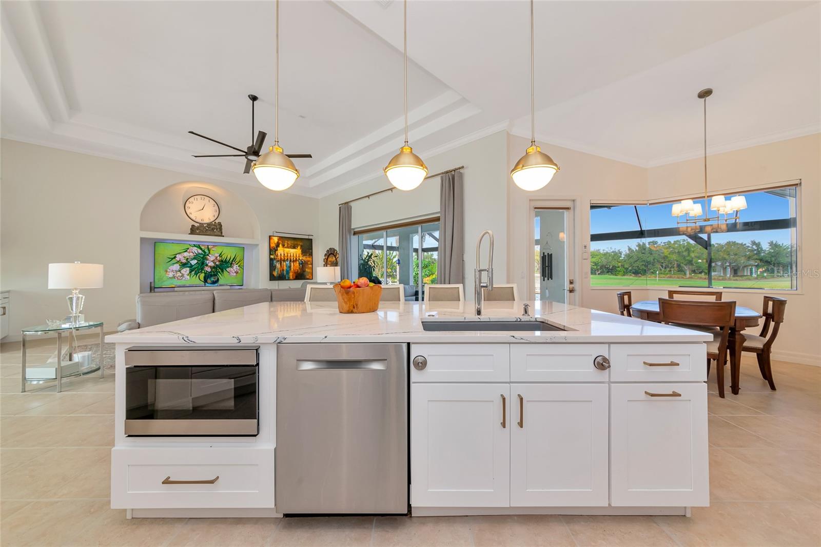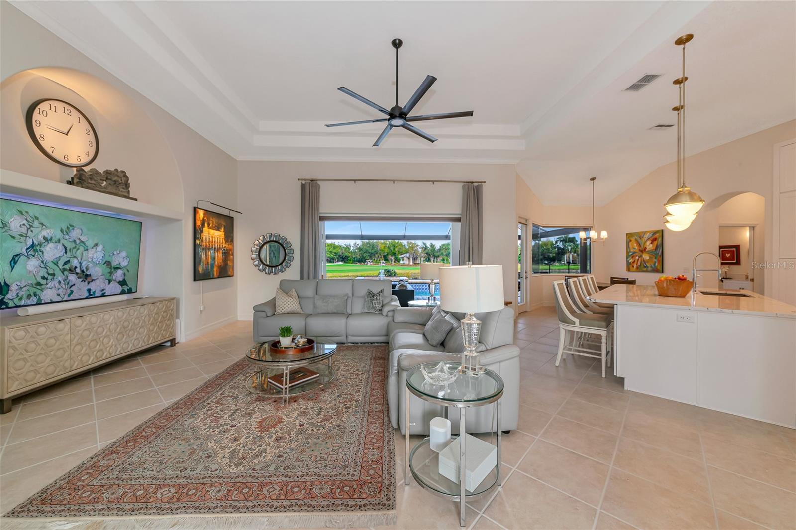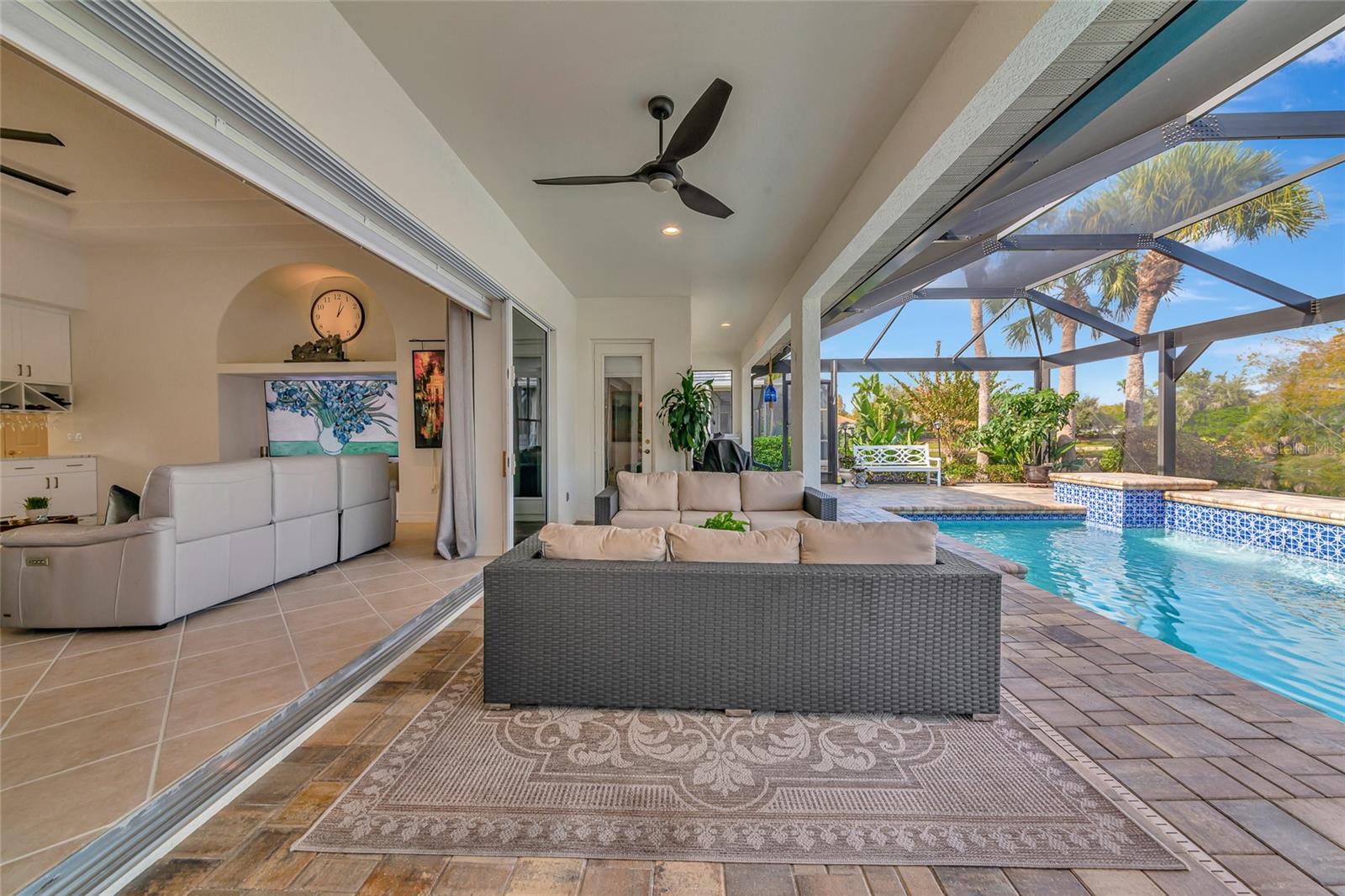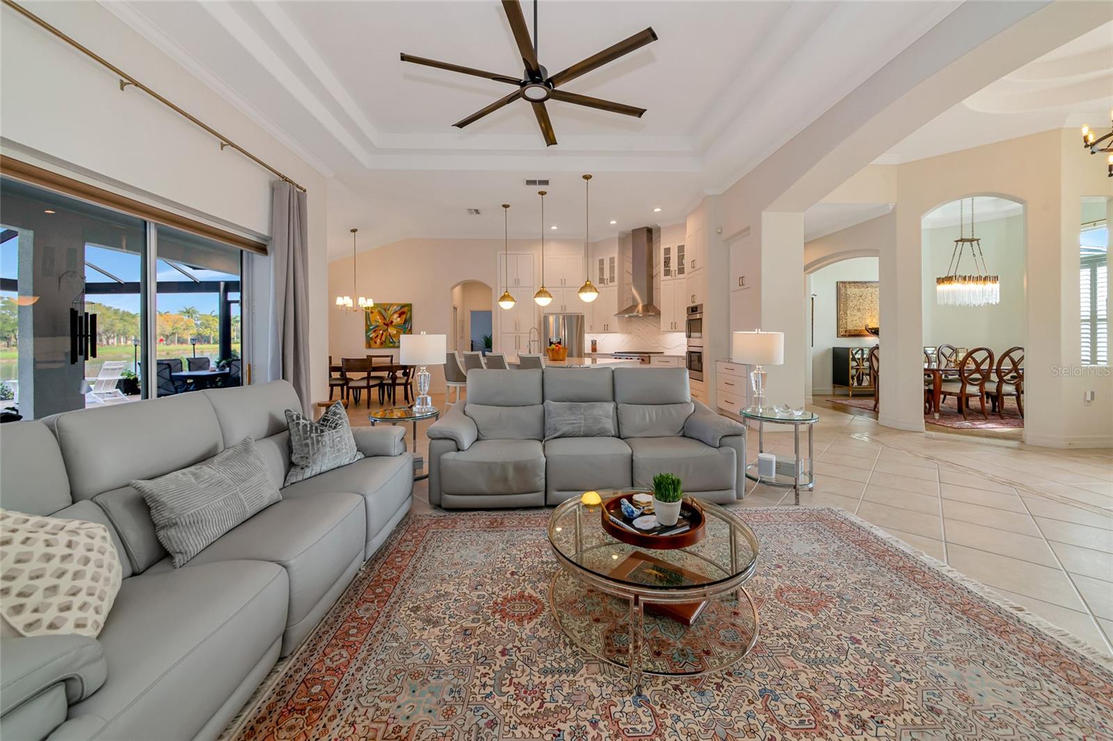 Commanding lakefront and golf course views define this beautifully updated executive residence in Waterlefe Golf & River Club, one of the region's most distinctive gated communities offering championship golf and direct access to the Manatee River. From the screened lanai, enjoy long water views across the lake to the 4th hole--close enough to appreciate the scenery, yet comfortably distant for privacy.This home is truly move-in ready, with major improvements already completed, including an updated kitchen and interior, new tile roof, whole-house generator, impact-rated front windows, and storm shutters for peace of mind. Inside, the great room makes an immediate impression with soaring 14-foot ceilings, abundant natural light, and an open layout designed for both everyday living and entertaining. The fully updated kitchen features Cambria quartz countertops, premium wood cabinetry, Bosch and Wolf stainless steel appliances, and natural gas cooking, opening seamlessly to the main living areas.The primary suite serves as a private retreat with wood flooring, a spacious walk-in closet with custom built-ins, and a spa-inspired bath complete with a glass-block walk-in shower, garden tub, and dual vanities. Two guest bedrooms, a den, a formal dining room, and a generous home office provide flexibility for guests, work, and multi-use living.Pocketing sliders open to a resurfaced salt water pool and spa, enclosed by a Clear-View pool cage, creating a seamless indoor-outdoor living experience ideal for year-round enjoyment.An often-overlooked luxury, the oversized three-car garage is freshly painted and offers abundant practical storage for vehicles, golf carts, water gear, and hobbies.Life in Waterlefe centers around an active, resident-focused community. Residents enjoy the River Club with resident-owned riverfront dining, a 24-hour state-of-the-art fitness center, kayak launch, playground, and scenic nature trails. HOA fees include cable and internet, adding everyday convenience.Golf and boating are available by choice, not requirement. The championship golf course offers flexible join or pay-to-play options, a newly completed clubhouse restaurant, and an Aqua driving range. For boating enthusiasts, the option to purchase a boat slip provides direct access to the Manatee River and the Gulf beyond.Here, mornings can begin on the golf course, afternoons on the water, and evenings dining with friends and family along the river--all within your own gated community.Be sure to explore the 3D virtual tour for a true sense of the home's space, flow, and setting.