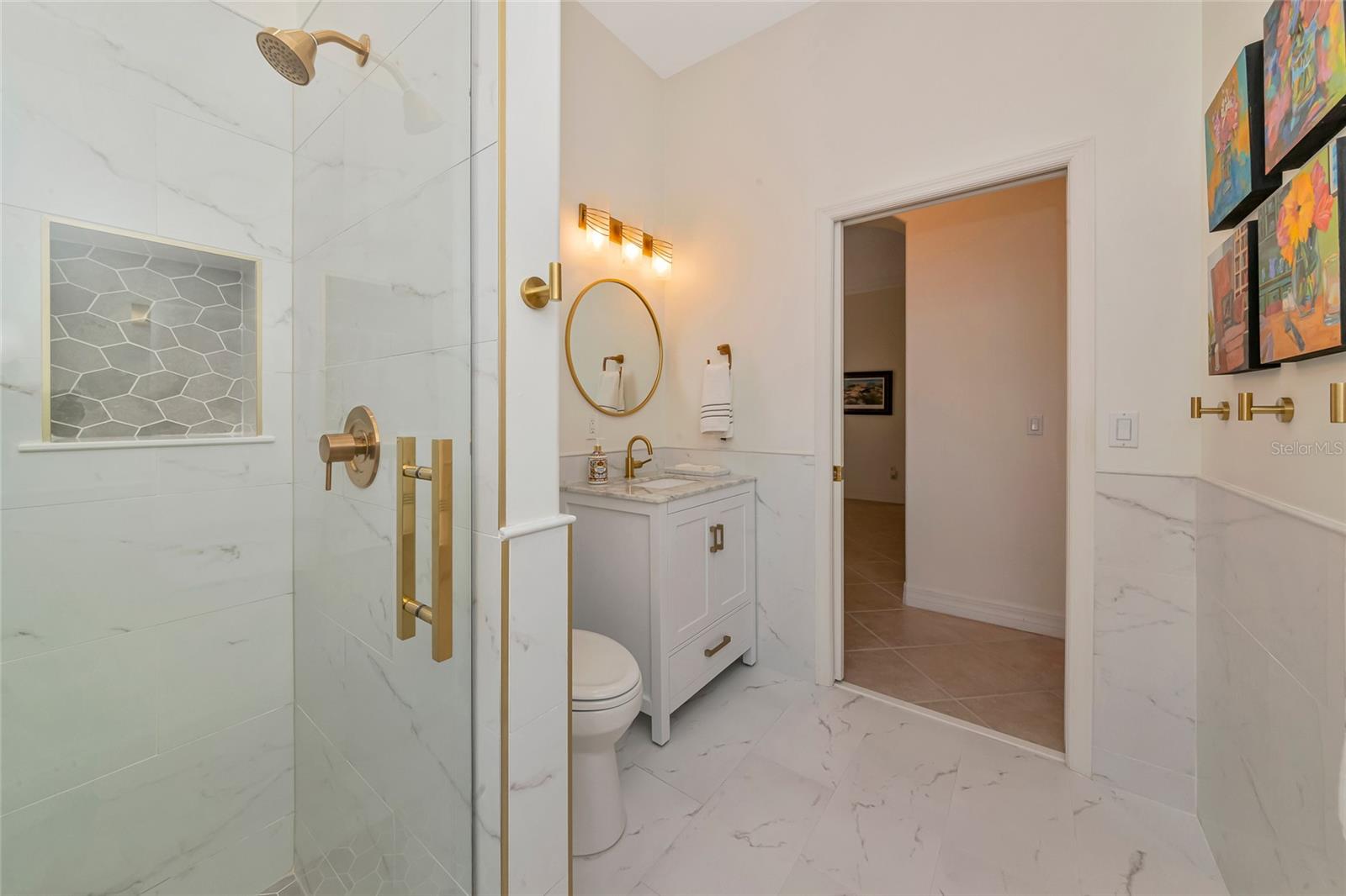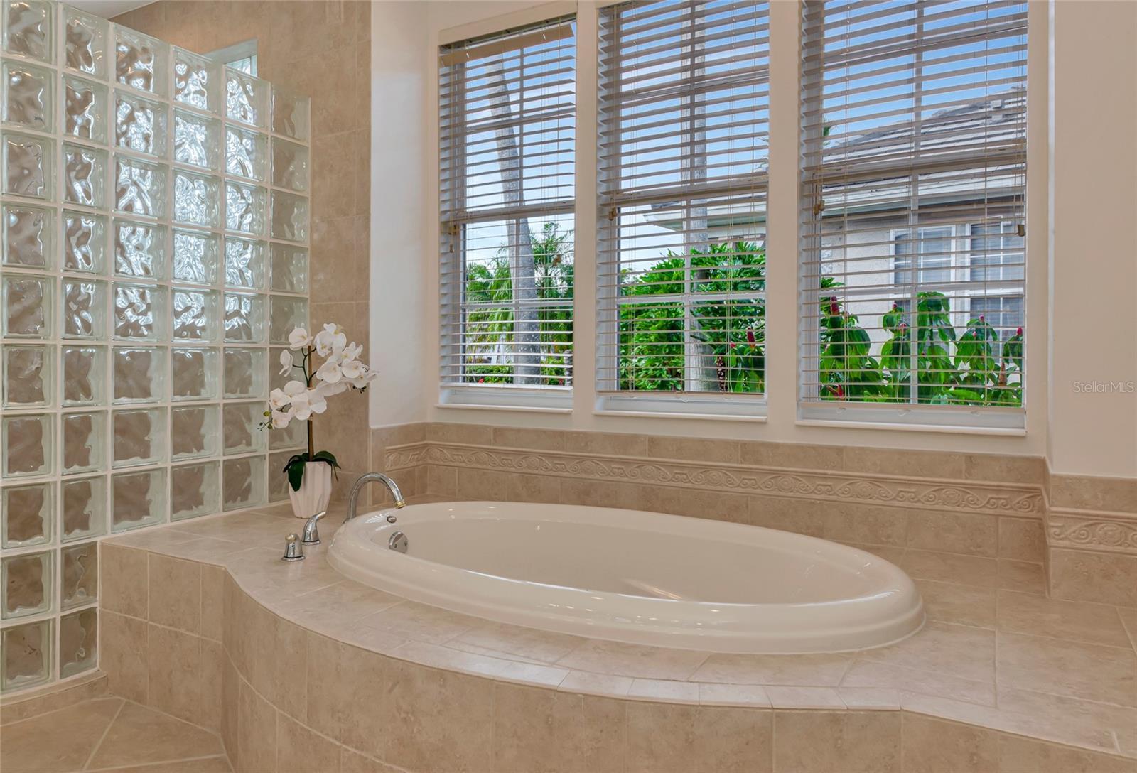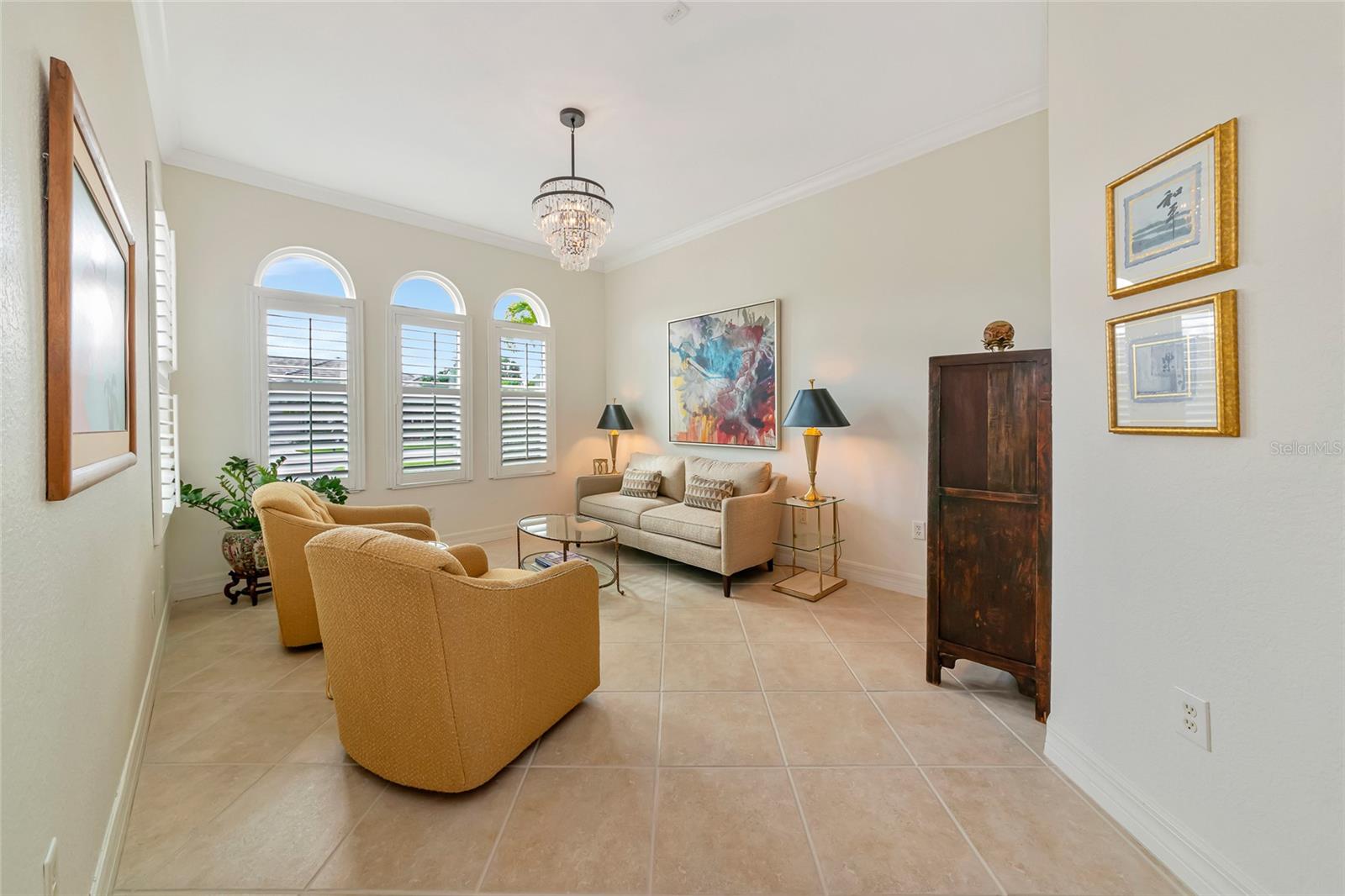 Exterior: Hurricane Shutters, Lighting, Sidewalk, Sliding Doors