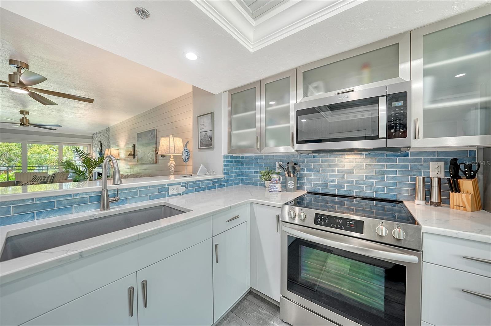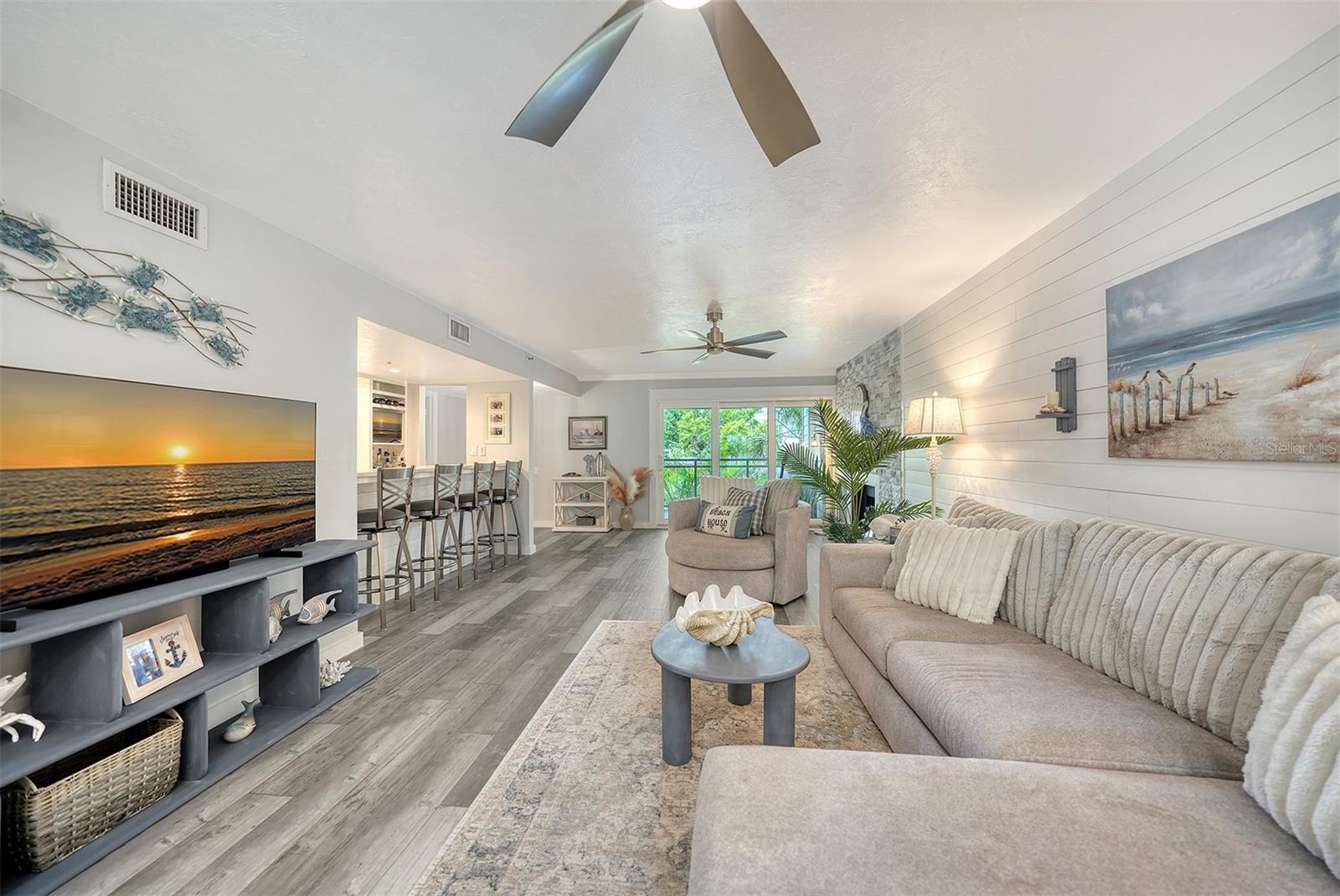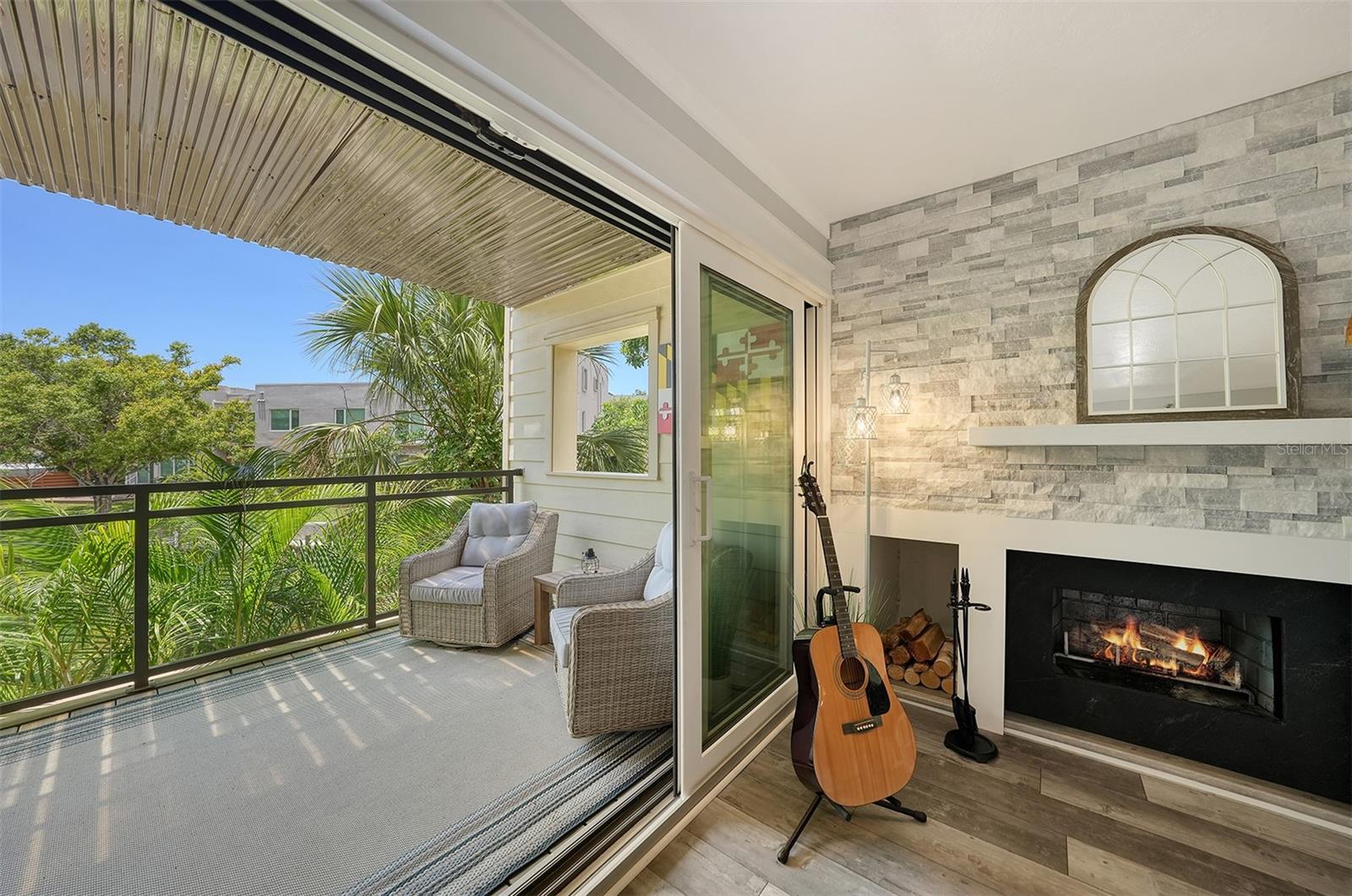 Live on the water in the heart of Downtown Sarasota. SELLER TO PAY 3 MONTHS OF HOA DUES at closing as a buyer incentive. Tucked away in a beautifully shaded, WATERFRONT community along the Hudson Bayou, this UPDATED condo is the perfect blend of urban convenience and serene, coastal living. Located in Hudson Oaks, a hidden gem between historic Laurel Park and eclectic Burns Court, you're just steps from Sarasota's finest dining, shopping, entertainment, Selby Gardens, the Bayfront, and only a bike ride over the Ringling Bridge to Lido Key Beach and St. Armands Circle. Drenched in natural light, this spacious 2-bedroom, 2-bathroom, 2-balcony residence is designed for effortless indoor-outdoor living. The open-concept great room features hurricane-rated sliders that lead to a covered balcony with peaceful water and pool views. Plexiglass half-walls offer unobstructed sightlines of the Bayou. A wood-burning fireplace and large bar area make this an entertainer's dream. The updated eat-in kitchen is both functional and stylish, with soft-close cabinetry, pull-out shelving, quartz countertops, subway tile backsplash, stainless steel appliances, pantry closet, and a breakfast bar for additional dining space. The primary suite features a private covered balcony, walk-in closet with custom built-ins, and a beautifully renovated ensuite featuring dual sinks, quartz counters, and a walk-in tiled shower with glass door. A generous second bedroom includes a cozy alcove, while the second bathroom is equally refined with quartz counters, vessel sink, and tiled walk-in shower. Additional features: updated electrical panel (2023), roof replaced (2020), large windows and hurricane-rated sliders (2017), in-unit laundry with Maytag washer/dryer & storage cabinetry, laminate plank flooring, recessed lighting, ceiling fans, and Hunter Douglas shades. Attached carport under building with an oversized 14' x 8' storage room, perfect for beach gear, bikes, and more. Hudson Oaks offers rare waterfront living downtown with boat docks, kayak launch, swimming pool, gas grill, and a pedestrian bridge to Laurel Park. Hudson Bayou is a protected waterway with small boat access to Sarasota Bay, making it perfect for kayaking, paddleboarding, or simply enjoying the views. Surround yourself with multi-million-dollar homes in one of Sarasota's most sought-after neighborhoods, and experience the Florida lifestyle at its best - private, pet-friendly, and just moments from everything Downtown Sarasota and life on the Gulf Coast has to offer.