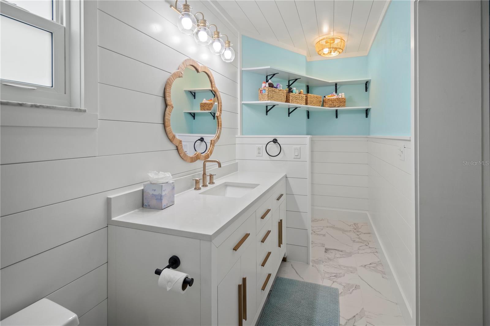 Stunning Fully Renovated Island Retreat-Turnkey Paradise Awaits! This beautifully updated 2-bedroom, 2-bath home has been thoughtfully transformed with high-end finishes throughout, offering a seamless blend of style, comfort, and functionality.Step inside to an inviting open floor plan that creates an effortless flow between the living, dining, and kitchen areas -- ideal for everyday living or hosting family and friends. Fresh new finishes, including shiplap walls and ceilings, add coastal charm throughout the home.The primary suite provides a peaceful retreat with its own ensuite bathroom. The spacious second bedroom comfortably fits both a bunk bed and a full bed, making it a perfect space for guests. The laundry room, located off the garage and kitchen, offers ample storage and convenience.Outside, your private oasis awaits. Enjoy the sparkling saltwater pool, perfect for cooling off on sunny days. The expansive yard offers plenty of room for play -- including your very own soccer field -- and abundant outdoor space to embrace the tropical lifestyle of Anna Maria Island. No detail has been overlooked, including the new custom turquoise metal roof.Whether you're seeking an island escape, a vacation getaway, or low-maintenance year-round living, this property delivers it all.