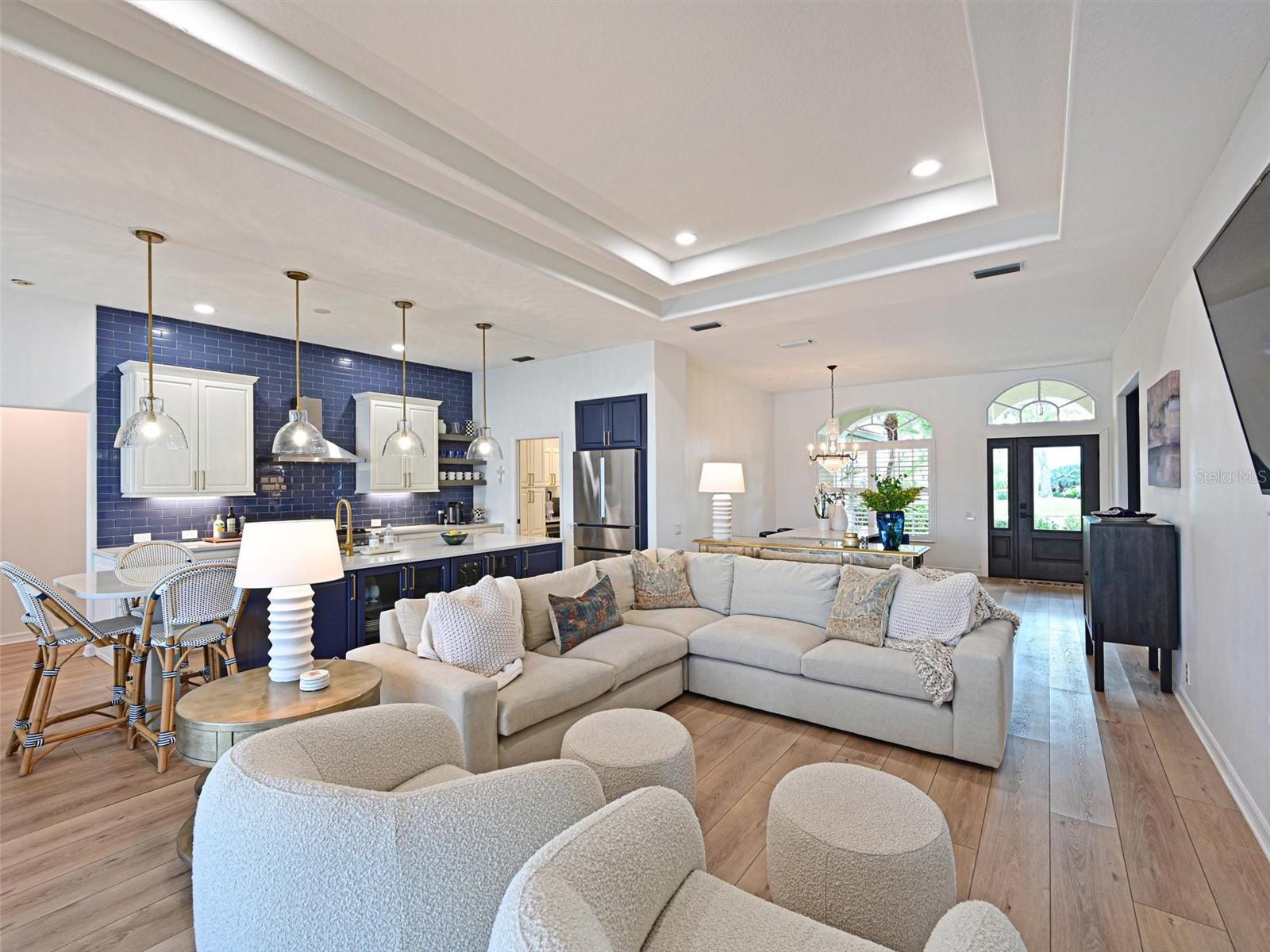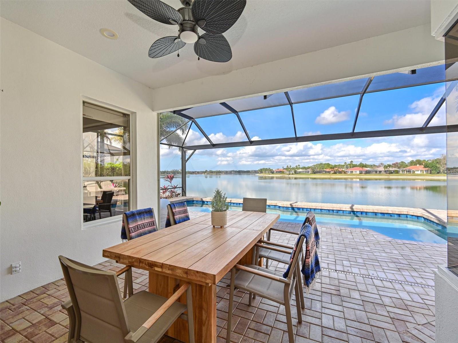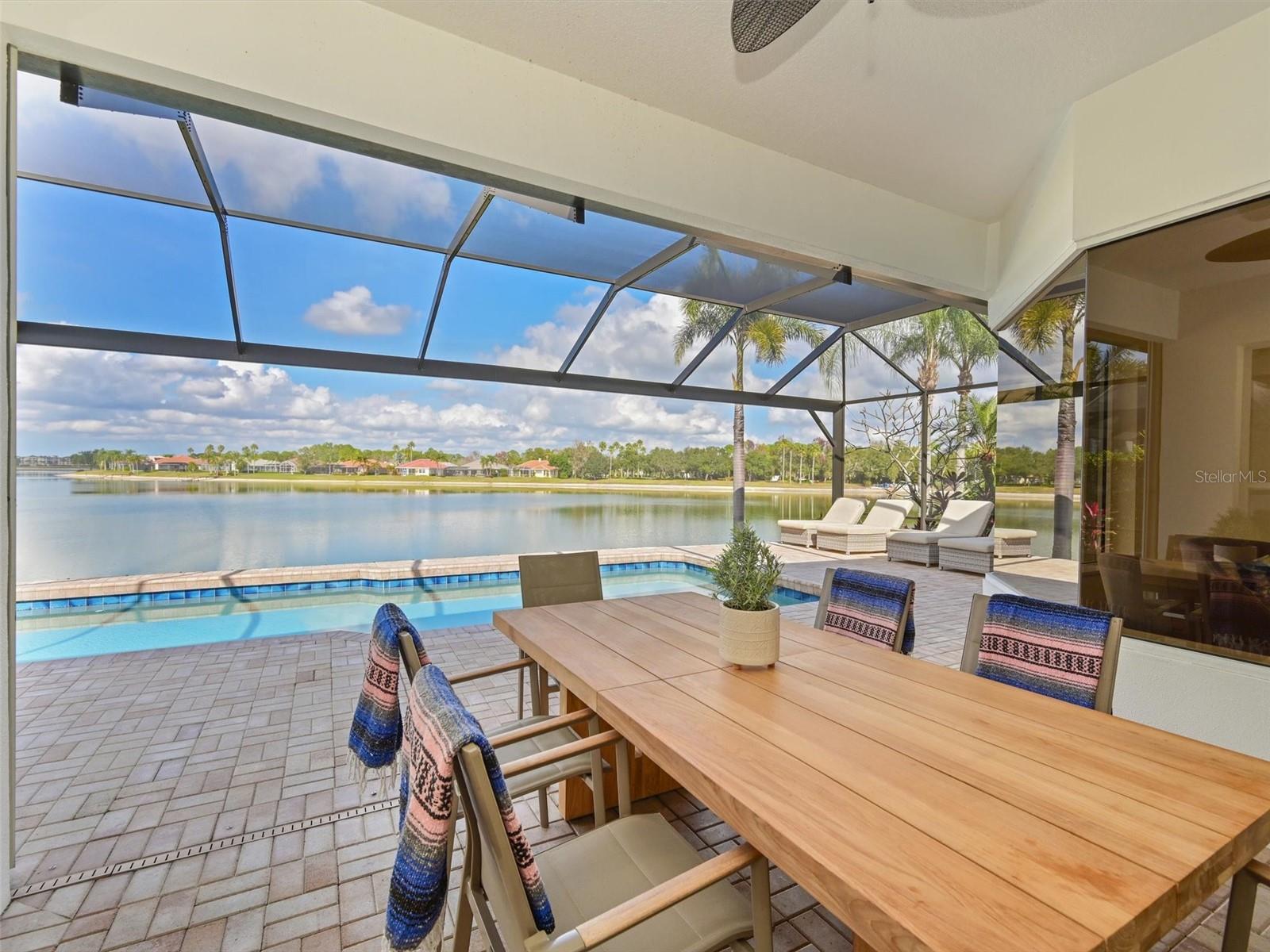 Spectacular Lakefront Living in Edgewater Village -- 6619 Waters Edge WayWelcome to your gorgeously updated dream home with infinity lake views overlooking the 160-acre Lake Uihlein in the highly sought-after community of Edgewater Village at Lakewood Ranch! This is a custom Rutenberg home and has over $150,000 in renovations in the past 3 years, showcasing an exceptional combination of indoor elegance and outdoor paradise with breathtaking year-round lake views.With 3 spacious bedrooms, a newly created dedicated office, and 2 fully updated bathrooms, this home delivers both comfort and style in an exceptional open floor plan. The beautifully renovated kitchen overlooks the spacious family room with a linear fireplace, and features stylish cabinetry, quartz countertops and high-end appliances with an oversized island and pendant lighting. You will be thoroughly impressed with the newly created garage entry mudroom/drop zone with custom bench and cubbies alongside countertop cabinetry with beverage/wine fridge, pantry and storage closet. Additional storage has been created in the laundry room with overhead cabinetry and commercial sink.Step outside through sliders to your private, screened lanai, replaced in 2022 with a picture window pool cage, and enjoy a sparkling pool that has been totally resurfaced, retiled and converted to a saltwater with new gas pool pump. The surrounding serene water vistas -- your own peaceful retreat for morning coffee or evening sunsets. The seamless indoor-outdoor flow provides exceptional space for relaxation and entertaining with a spectacular view.Live the Florida lifestyle to the fullest in a home that is move in ready and perfectly blends comfort, style, and waterfront tranquility -- all just moments from both Waterside and Lakewood Ranch's Main Street restaurants, shopping, trails, and top-rated amenities.