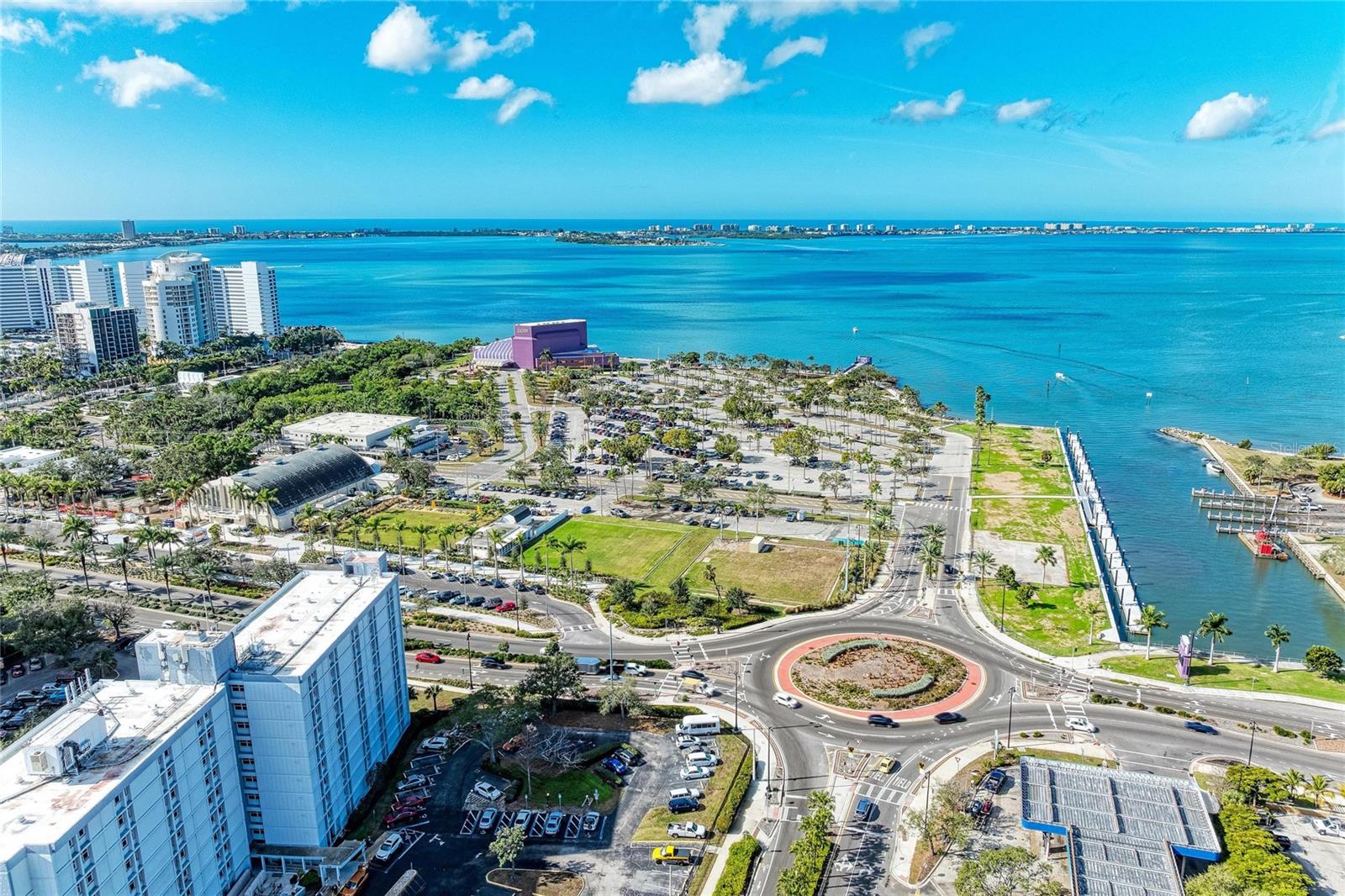 Discover this exceptional turnkey furnished condo in the heart of Downtown Sarasota! Featuring high ceilings, an open concept floor plan, built-in custom cabinetry, a brand-new in-unit LG washer and dryer (2025) and HVAC system (2024) with warranty, this unit is a dream come true! The custom designed flex room is ideal for guests, extra dining space or a home office. This spacious unit's balcony overlooks the picturesque courtyard, full of greenery and a tranquil fountain. Located on the sought-after second floor, you are steps away from all the common areas such as the library and game room, the social room (complete with a TV, pool table and poker table), the business center and the fully equipped fitness center, with a yoga/weight room, newly updated locker rooms with saunas and a terrace overlooking the community pool. Enjoy additional luxurious amenities including a massage room, with on-site masseuse, the heated community pool with BBQs, rentable club room with a full chef's kitchen, the expansive courtyard, public herb garden, recycling center and mailroom. With regular community events, your options for entertainment are endless! The unit has a reserved parking spot, temperature-controlled storage and elevator access. The building has 24-hour front desk service, on-site management offices, and a full-time maintenance team. Experience unparalleled coastal lifestyle with on-premise shopping, grocery stores and restaurants. Located steps away from the Van Wezel Performing Arts Hall and minutes from vibrant Downtown Sarasota, living here means you will experience tons of shopping, restaurants, entertainment, the beachfront and harbor and much much more. With ample guest parking, SCAT bus stops on every corner and the Breeze private shuttle service, which picks up residents directly outside the building's front entrance, your convenience options are endless!