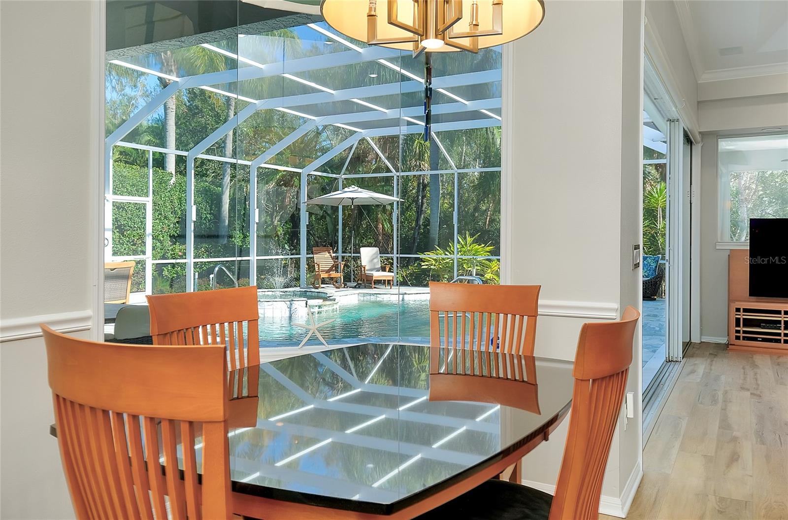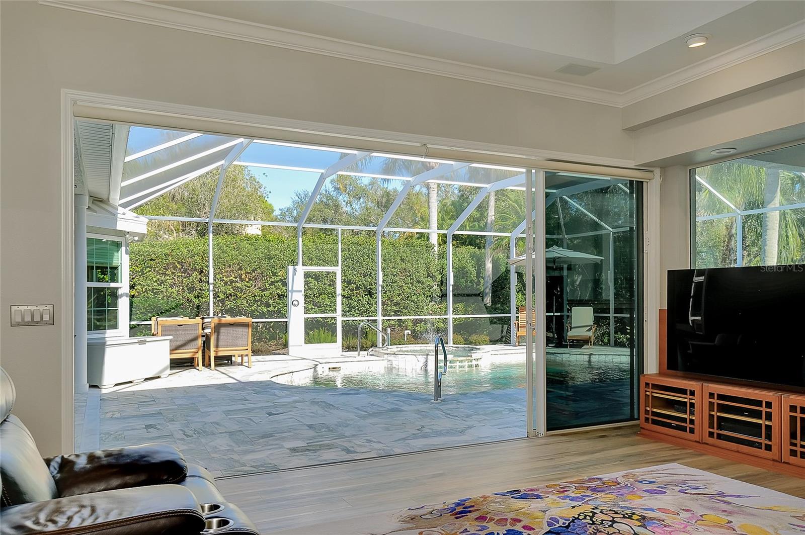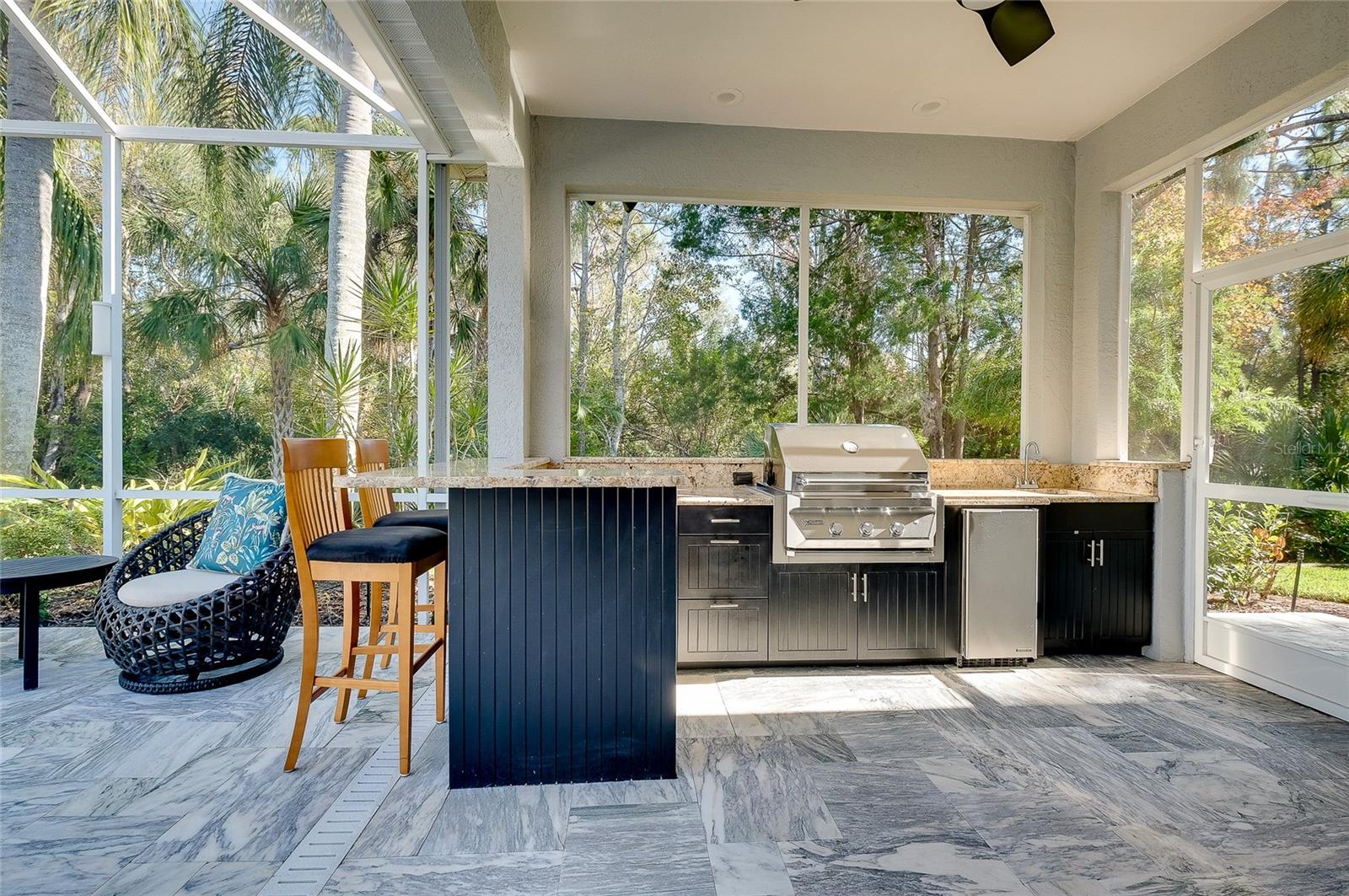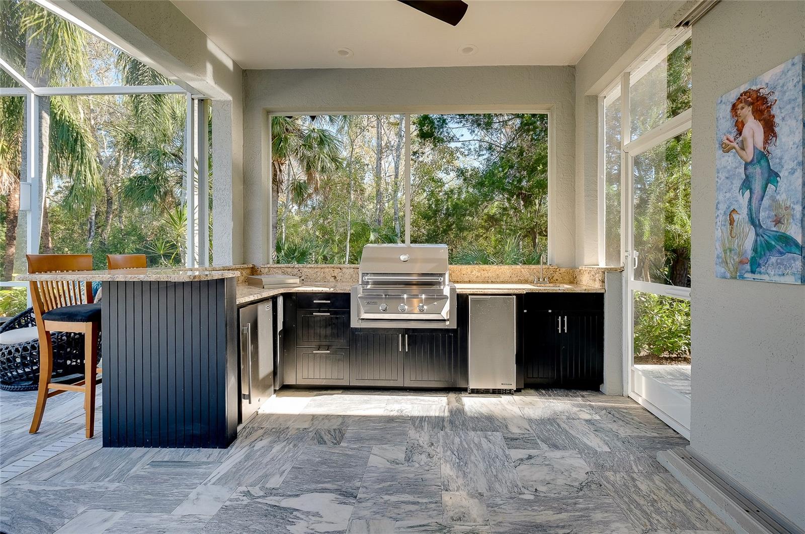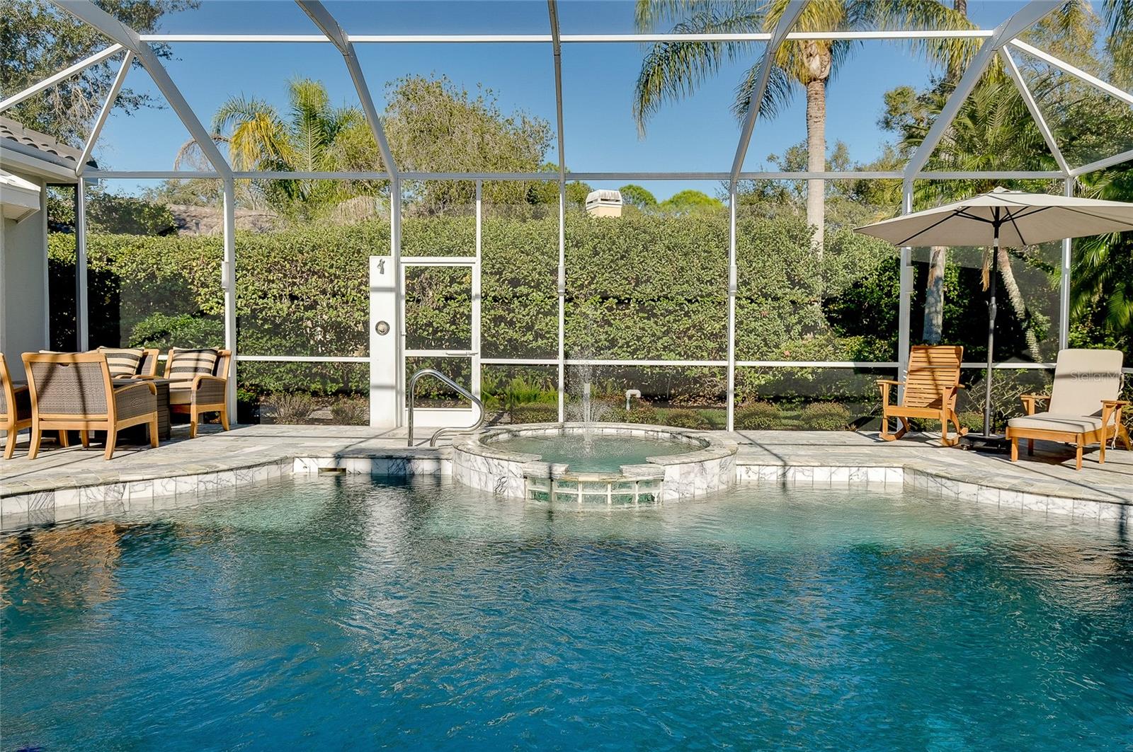 Exceptional Opportunity to discover this beautifully upgraded pool home located in the highly sought-after, gated Edgewater community of Lakewood Ranch. From the moment you arrive, the home delivers a true WOW factor, beginning with the impressive double entry featuring stunning iron doors added in 2023. Built by Todd Johnston, this residence offers a spacious split-bedroom floor plan with 3 bedrooms plus a den/office with custom built-ins, 3 bathrooms, and multiple living spaces including a formal living and dining area as well as a family room with an adjacent dinette. The home has been thoughtfully remodeled to complement its exceptionally private preserve-view lot, tucked away on a quiet one-way cul-de-sac. Designed for both comfort and entertaining, the main living areas feature newer luxury vinyl and tile flooring and flow seamlessly through fully pocketing sliding glass doors to the expansive outdoor living space. Enjoy cozy evenings by the gas fireplace, framed by quadruple sliding doors overlooking the impeccably landscaped backyard and serene preserve views. The gourmet kitchen is a chef's delight, showcasing granite countertops, rich wood cabinetry, and stainless steel appliances, including a Wolf gas range and double oven. The spacious primary suite offers a tranquil retreat with a bay window overlooking the preserve, two walk-in closets, dual vanities, a soaking tub, a separate shower, and a private water closet. The secondary bedrooms, additional bathrooms, and den are thoughtfully positioned on the opposite side of the home for privacy. Elegant plantation shutters are featured throughout the home, adding timeless style and functionality. The expansive outdoor living area serves as the true centerpiece of the home, thoughtfully designed to accommodate large gatherings of 25+ guests with ease and enhanced by recently added leathered marble flooring, lanai cage lighting, a fully equipped outdoor kitchen with granite countertops, gas grill and burner, sink, and refrigerator, along with an outdoor shower, large pool, and spa. One of the guest bathrooms conveniently serves as both an en-suite and a pool bath. Major upgrades have already been completed, including a new roof (2022), new A/C system (2022), new water heater (2025), pool heater (2024), and washer/dryer (2023), and all newer hurricane impact windows, offering peace of mind for years to come. First impressions truly matter, and this home delivers exceptional curb appeal. Recent exterior upgrades include a refreshed landscaping package, elegant driveway pavers, updated exterior (and interior) paint, and new gutters--all completed within the past couple years. This home is also high and dry, being built higher than others in the area. Edgewater Village boasts a prime Lakewood Ranch location near University Parkway and Waterside, with very low HOA dues that even include kayak AND canoe storage at Lake Uihlein--perfect for leisurely paddles to Lakewood Ranch Main Street. With easy access to world-famous Florida beaches, exceptional shopping and dining, and multiple major airports, this home offers the ultimate Florida lifestyle. Don't miss your opportunity to make this extraordinary property your private paradise.