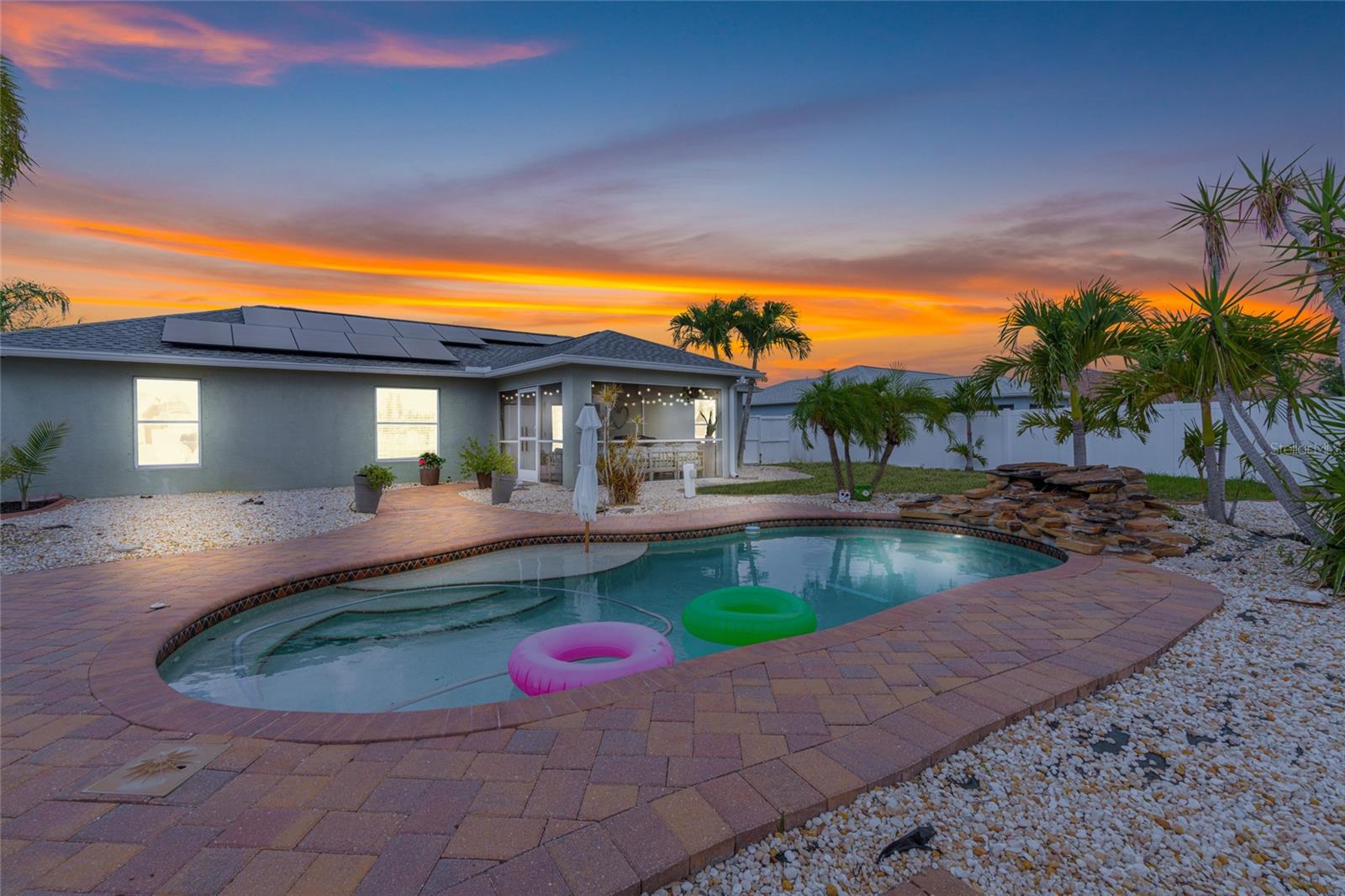 NEW Salt water pool system, NEW pool pump, NEW ROOF in 2023, NEW HVAC in 2023 and paid-off SOLAR SYSTEM (power bills well under $100), the sellers have spared no expense replacing BIG systems to get this home ready for the next 15+ years! There is room for anything and everything you could want and need. Three very nicely sized bedrooms, two full baths, an island kitchen with a breakfast bar, dining area and the perfect living room for cozying it up at the end of the day or the weekends. The screened in Florida porch is adorable and whimsical and the perfect segway from the comfort of the AC into the tropical paradise that is the back yard and pool area of 6178 Coliseum Blvd. Enjoy the tranquil sight and sounds of the waterfall feature and hang out in the poolside cabana for some shade! You may not want to go back inside.