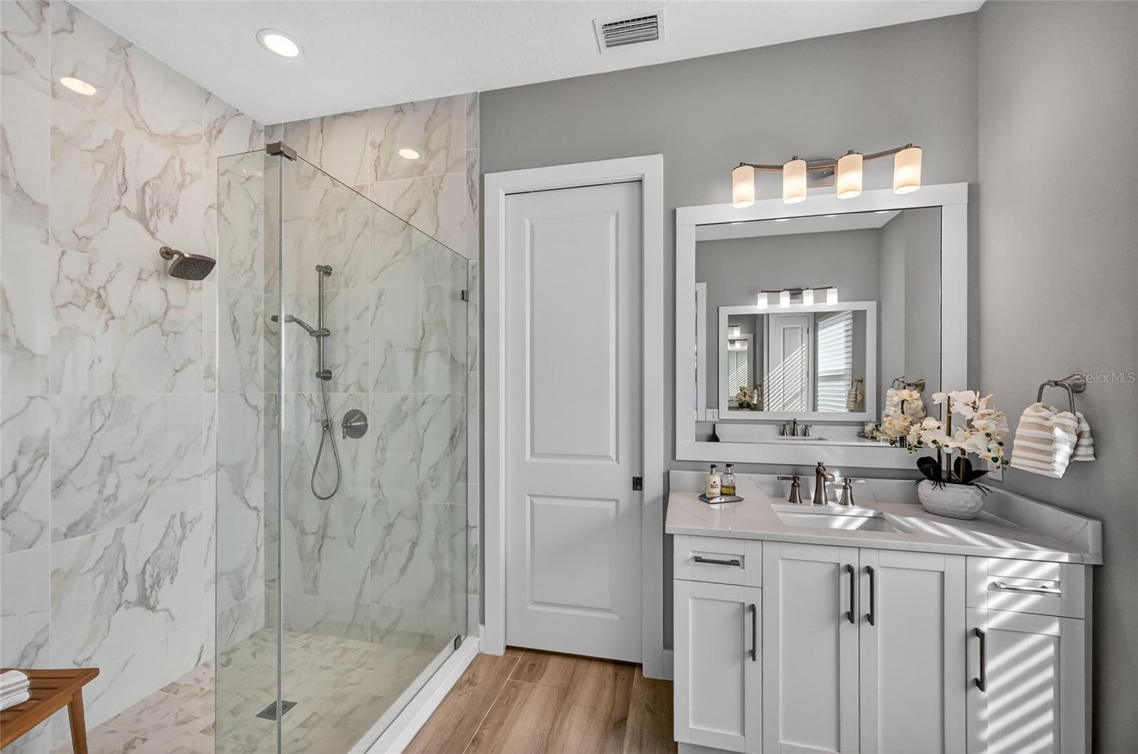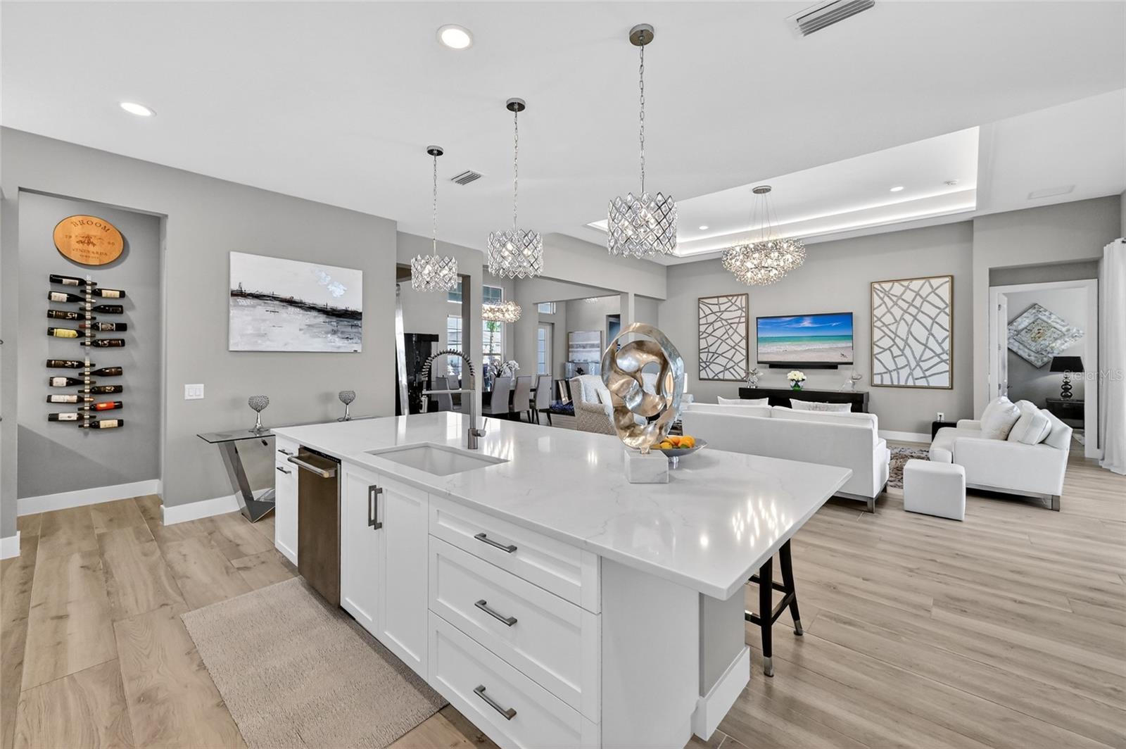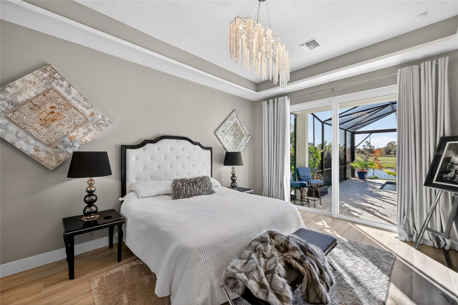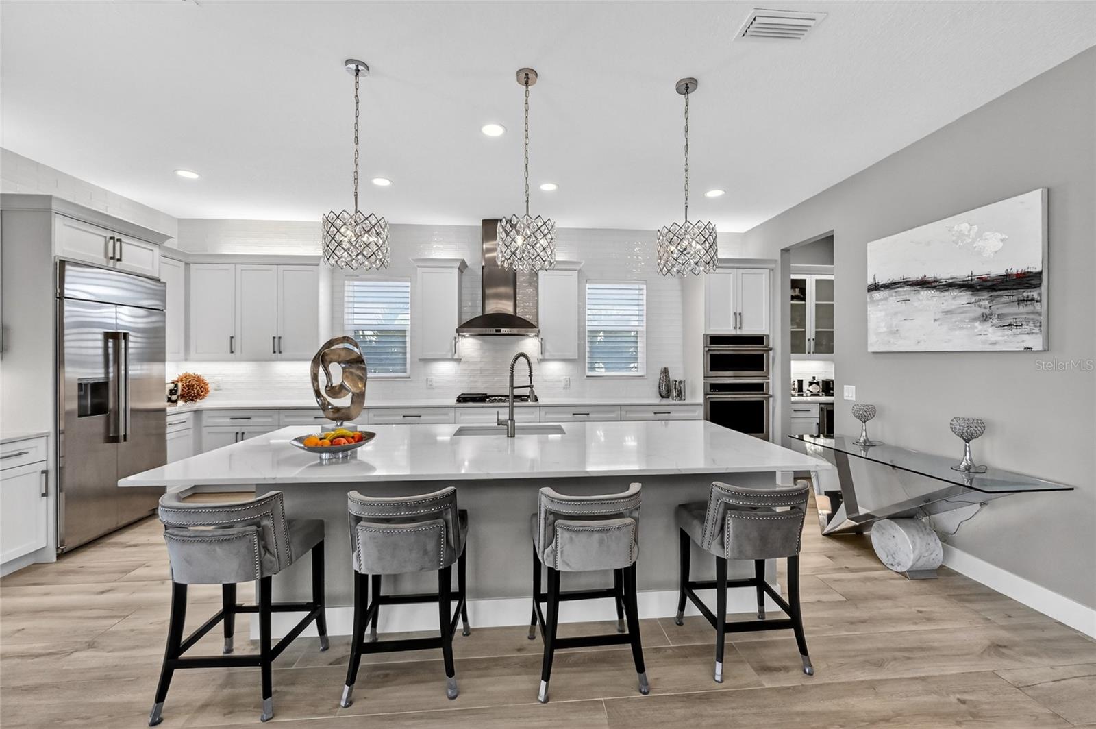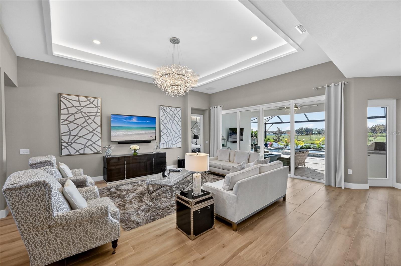 Opportunity to bypass the build process and start living a life well deserved in one of Lakewood Ranch's newest communities from this beautifully appointed West Indies Islander plan built 2025 by Homes by Towne on a south-facing lake front setting in Shellstone at Waterside.The three bedroom plus study residence showcases 2,675 square feet of open one-story living, sumptuous wide wood-plank style porcelain tile throughout, voluminous tray ceilings with recessed accent lighting, IMPACT windows and doors, and a breathtaking outdoor living area with open and under cover space, shellstone pavered deck, newly added Summer kitchen and bar, PebbleTec heated saltwater pool/spa with sunshelf, and a panoramic clearview screen surrounded by premium landscaping and vistas. Seamlessly connecting this outdoor oasis to the oversized great room, kitchen and dining areas are impact glass doors revealing an optimal layout where guests and chefs alike will delight in the gourmet kitchen with GE Monogram appliances, sprawling counters, oversized island, dry bar with wine fridge, under cabinet lighting, a customized walk-in pantry, and stylish crisp white tile adorns the backsplash all the way up to the ceiling. Unwind in the elegant owner's retreat offering direct lanai access via sliding glass doors, oversized customized closet, and a refreshingly luxuriant bath with two vanity stations, invigorating shower and separate water closet. Family and guests will be right at home in this split bedroom floor plan with two additional guest suites each on separate wings of the home, both offering customized walk-in closets and wood plank porcelain tile flooring, with one boasting its own private ensuite full bath, the other is just off the homes third full bath. Additionally, the residence offers a study behind double glass entry doors, and wood plank tile flooring. Other highlights of this all-encompassing 3,987 square foot residence includes a large laundry room with cabinetry and sink, the recent addition of remote-controlled window shades, show-stopper light fixtures, customized closets throughout, camera surveillance, 8' interior doors, and an oversized three car garage with epoxy flooring and built-in storage cabinetry.Beckoning a lifestyle fulfilled with access to two resort-styled amenity centers, Shellstone residents will have private access to the soon-to-be completed Summit offering a social hall, fitness center, pool with cabanas, spa, firepit, poolside BBQ grills, and fitness lawn. Additionally, they can enjoy the recently completed hub at Midway Park that offers Shellstone and Wild Blue residents tennis, pickleball, basketball courts, kayak launch, walking trails, dog parks, playground, pro shop, and pavilions. Ideally located in Waterside, known for its vibrant Lakewood Ranch lifestyle surrounded by dining, shopping, polo, golf, community events, Waterside Place, Centerpointe, UTC Mall, and minutes to SRQ Airport and the beaches of Sarasota.