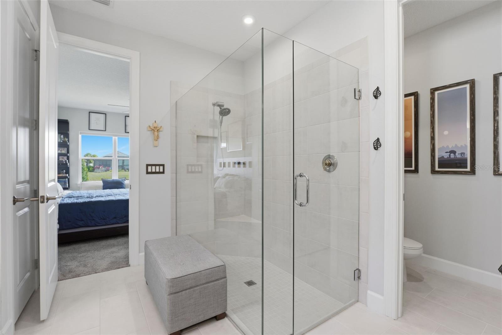 A SUN-SOAKED RESORT RETREAT! Welcome to upscale, resort style Florida living at it's best! Treat yourself to a fabulous new home in the new year and live where you can feel like you are on vacation everyday. This darling 3Br/2.5ba quality built Taylor Morrison home is situated on a large corner lot with serene lake views. This Matera floorplan offers a very light, bright, open and airy greatroom layout. The original owner has thoughfully upgraded and switched out lots of the standard builder included features. The home showcases upgraded light fixtures and ceiling fans throughout, gorgeous decorator tile on the Master bathroom wall, the kitchen island and backsplash, glass shower enclosures and upgraded plumbing fixtures in the Primary and Guest baths, designer mirrors in the baths, upgraded shower heads, and a Simply Safe alarm system. Other outstanding features this home has to offer include gorgeous plank style ceramic tile floors throughout the living area, solid surface countertops, stainless steel appliances, brand new washer and dryer, tankless hot water heater, large screened enclosed super sized extended lanai with rough in for a future outdoor kitchen. The HOA fee includes yard maintence, irrigation and cable/internet. This upscale gated community hands down offers some of the best amenties around which include a lifestyle instructor, multiple resort style pools, hot tubs, on site spa/therapy room, state of the art fitness center, tennis courts, pickleball bocci, firepits, cornhole, walking trails, dog park and more! This community is conveniently located to lots of brand new shopping, restaurants and I-75. A quick and easy commute to the Tampa/St. Pete area and quick and easy access to downtown Bradenton and Sarasota. This premiere community has it all!