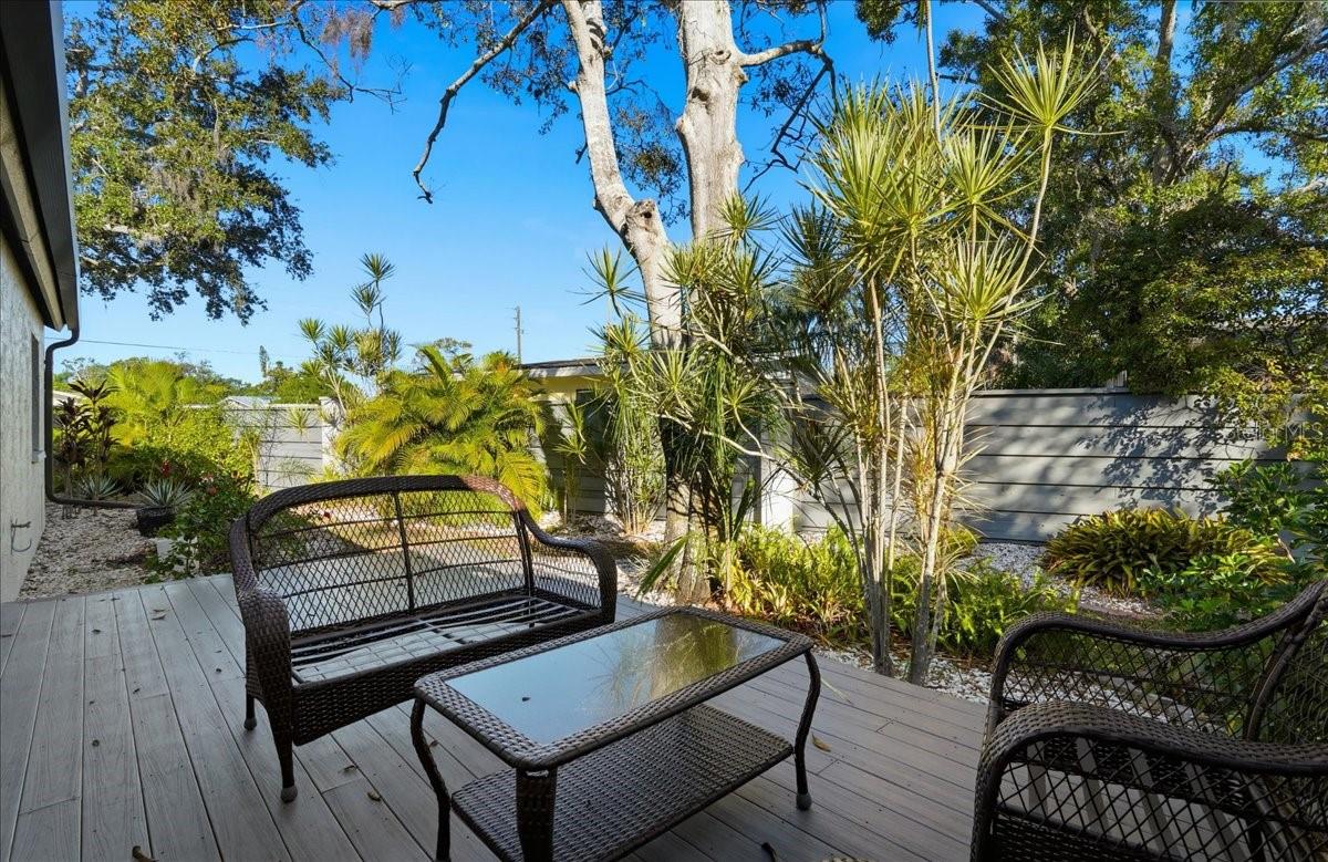 New to Market | Eagle Chase Villa - Sarasota. Ideally positioned in the desirable Eagle Chase community, this impeccably upgraded 2-bedroom, 2-bath villa offers 1,268 square feet of thoughtfully enhanced living space just minutes from beaches, nature, shopping, and downtown Sarasota. Located within walking distance to the 84-acre Red Bug Slough Nature Preserve and only 2.1 miles to Crescent Beach and 3 miles to Siesta Key, this home delivers the perfect blend of location, quality, and peace of mind. Inside, the residence reflects years of careful investment and pride of ownership, with over $125,000 in renovations and improvements completed since 2020. The home has undergone extensive mechanical and structural upgrades, including a near full plumbing re-pipe with the removal of old cast iron and replacement with CPVC, new electrical breakers, all-new outlets, plate covers, and modern dimmable LED lighting throughout. HVAC systems have been replaced and professionally serviced twice yearly, the roof was replaced in 2022, and impact-rated windows and doors were installed for comfort, efficiency, and storm protection. The kitchen has been beautifully updated with quartz countertops, painted cabinetry with new hardware, tile backsplash, LED under-cabinet lighting, an upgraded oven range, undermount sink, and newer appliances, creating a bright and functional space that flows effortlessly into the living areas. Both bathrooms were fully remodeled down to the studs with waterproofing, new drain lines, Moen fixtures, custom tile, rain shower heads, quartz vanities, beveled window detail in the primary bath, and LED lighting with dimmers, offering a spa-like experience. Living space was thoughtfully expanded with the creation of a stunning Florida Room, replacing the former lanai and deck. This space features impact sliding doors and windows, reinforced flooring, custom Italian tile, fresh paint, updated electrical, and a ceiling fan with remote, seamlessly blending indoor and outdoor living. New composite decking was added on a reinforced foundation along the rear of the home, with additional composite decking on the side porch, while the exterior rear stucco wall was repainted for a polished finish. Additional enhancements include plantation shutter doors throughout the hallways, bedrooms, and primary bath, refreshed interior doors and hardware, updated flooring in the primary bedroom, attic flooring for storage, and a mounted 65" Sony flat-screen TV with in-wall wiring that will convey. The home has also been meticulously maintained with comprehensive termite prevention, Sentricon bait systems, and ongoing annual inspections showing zero termite activity. Outside, the property has been transformed into a serene, park-like setting with engineered paver stone retaining walls designed to enhance drainage, extensive hardscape and landscaping improvements, indigenous Florida plantings, fruit trees, pollinator-friendly gardens, and low-maintenance decorative stone features. The location offers exceptional convenience with nearby shopping, easy access to I-75, downtown Sarasota, Venice, St. Petersburg, Tampa, and Clearwater, making this home ideal as a primary residence or refined coastal retreat. This Eagle Chase villa stands apart for its depth of upgrades, quality craftsmanship, and unmatched proximity to Sarasota's best natural and coastal amenities.