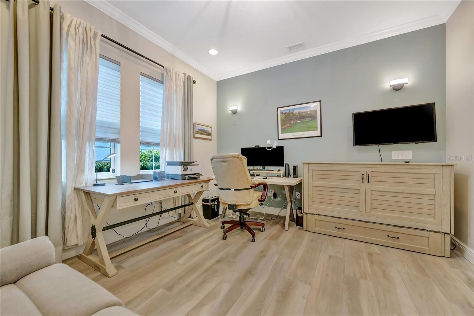 Welcome to this FORMER MODEL home located within the gates of the distinguished Country Club East offering exceptional upgrades and thoughtful design throughout.As a previous model it features enhanced finishes and details not typically found in standard homes.These features include;custom woodwork,built-in entertainment center,Sonos surround sound,plank tile throughout,and a brick accent wall with coffered ceilings in the dining room.The home blends style with function while creating warm,defined living spaces.Upgrades continue to the exterior of the home which include;Newer air conditioning system including the garage,pool heater,Generator,Hurricane and privacy screens which provide year round comfort and peace of mind.Meticulously cared for and move-in ready,this home is ideal for buyers seeking quality,comfort,and timeless appeal in a standout property.Located within a sought-after community featuring multiple clubhouses and premiere golf courses,residence enjoy an elevated lifestyle with access to top-tier amenities.Lakewood Ranch has been rated the #1 community in the US for all ages since 2018!Come see why so many have chosen to call this community home.