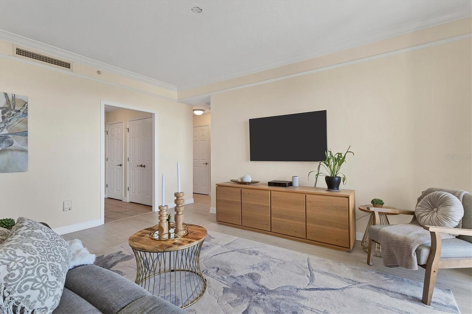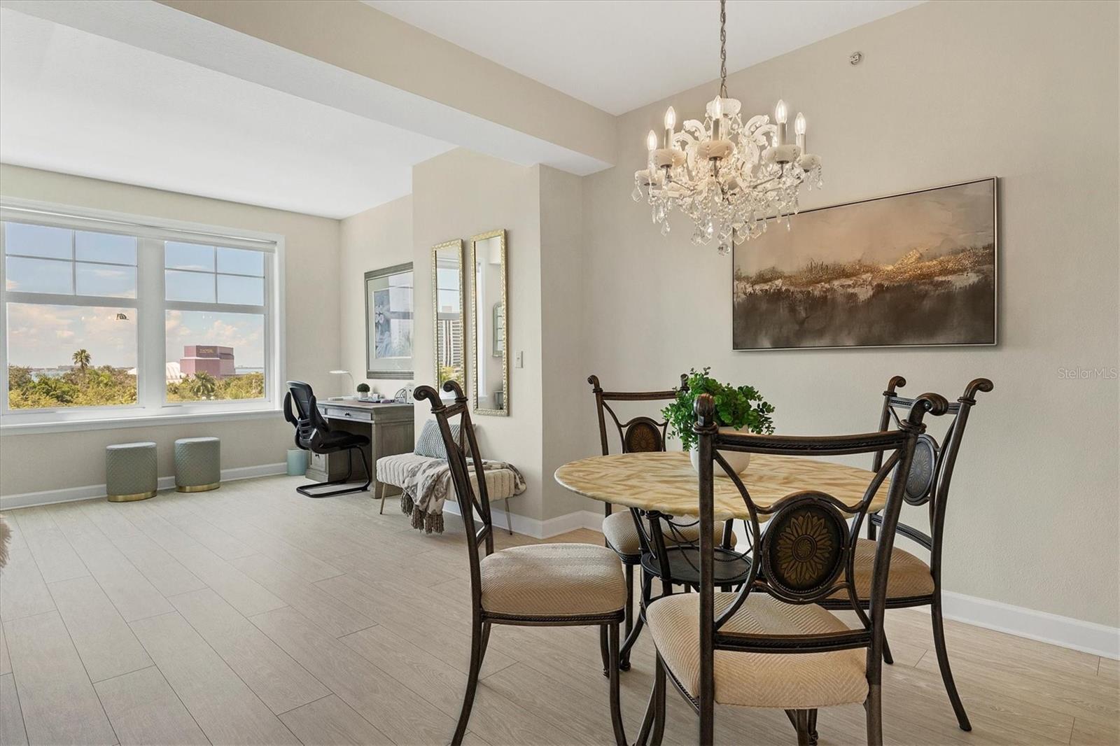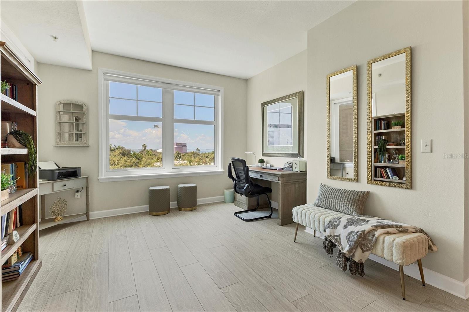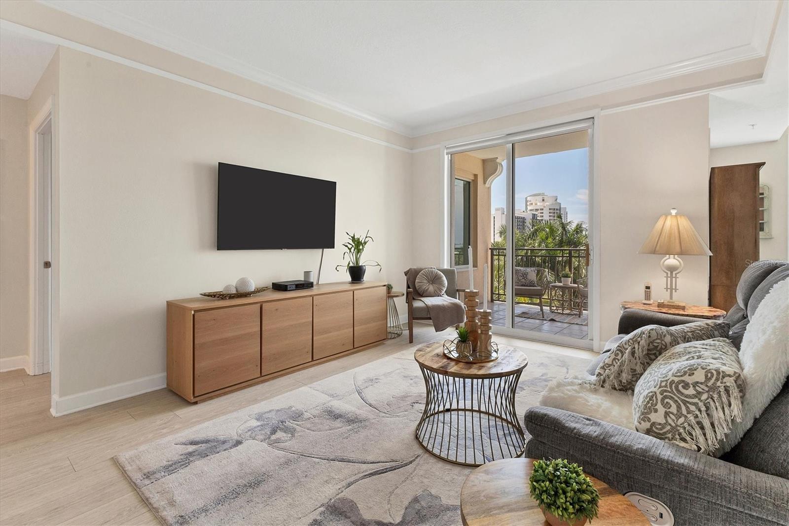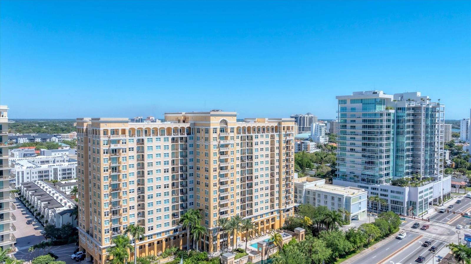 Experience the best of downtown Sarasota living from this beautifully positioned fourth-floor residence at Renaissance, where sweeping views of the turquoise Sarasota Bay and the newly developed Bay Sarasota Park, a resilient green space creating a daily backdrop of coastal beauty and vibrant city energy. Offering 1,020 square feet of heated living space and 1,072 total square feet, this thoughtfully designed one-bedroom, one-bath residence delivers an exceptional blend of comfort, functionality and timeless appeal, ideal for full-time living and seasonal enjoyment. Natural light fills the interior through expansive windows, enhancing the open and inviting layout. The primary living area flows seamlessly into a versatile den, providing valuable additional space for a home office, reading lounge or guest accommodations. The kitchen is well-appointed with new appliances and ample cabinetry, while the updated bath features clean, modern finishes. A large walk-in closet adds generous storage, and the residence has been tastefully maintained to support an effortless lock-and-leave lifestyle. Indoor and outdoor living converge beautifully as tranquil bay views become part of everyday living. There is a spacious balcony off the living area with westerly views. Beyond the residence, Renaissance offers a comprehensive suite of resort-style amenities within a secure, 16-story high-rise known for its enduring construction and thoughtful design. Residents enjoy landscaped plazas, fountains, a grand Italian villa-inspired entrance and a striking lobby with concierge services. The building features key-card access, a staffed front desk, overnight security, on-site management, a clubroom, business center, fitness center and a private resident theater. Renaissance was engineered with exceptional attention to structural integrity. Constructed with reinforced concrete beams, fireproofed materials and pilings drilled deep into the ground, the building was designed to perform like a fortress. The property is in Flood Zone X and outside the floodplain. The lobby and guest parking are elevated more than 15 feet above base sea level, providing additional peace of mind. This residence includes one assigned, secured parking space on the first floor of the garage, also elevated over 15 feet above sea level. Ideally in the heart of Sarasota's cultural district, Renaissance places residents moments from world-class dining, performing arts, galleries, waterfront promenades and year-round social events. This is a rare opportunity to enjoy downtown Sarasota living with Sarasota Bay views, exceptional security and outstanding value. Schedule your private tour today before this updated residence is gone.