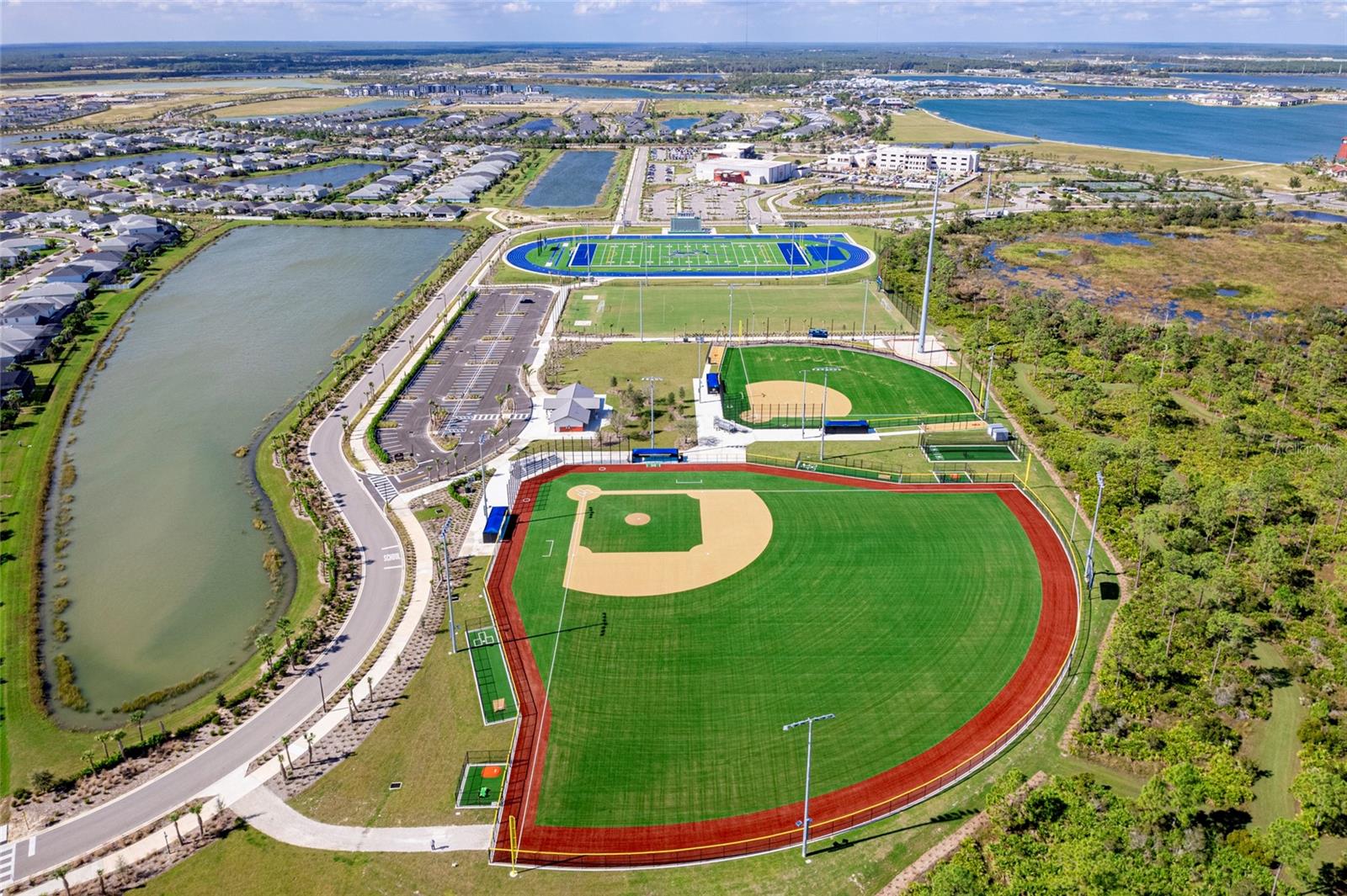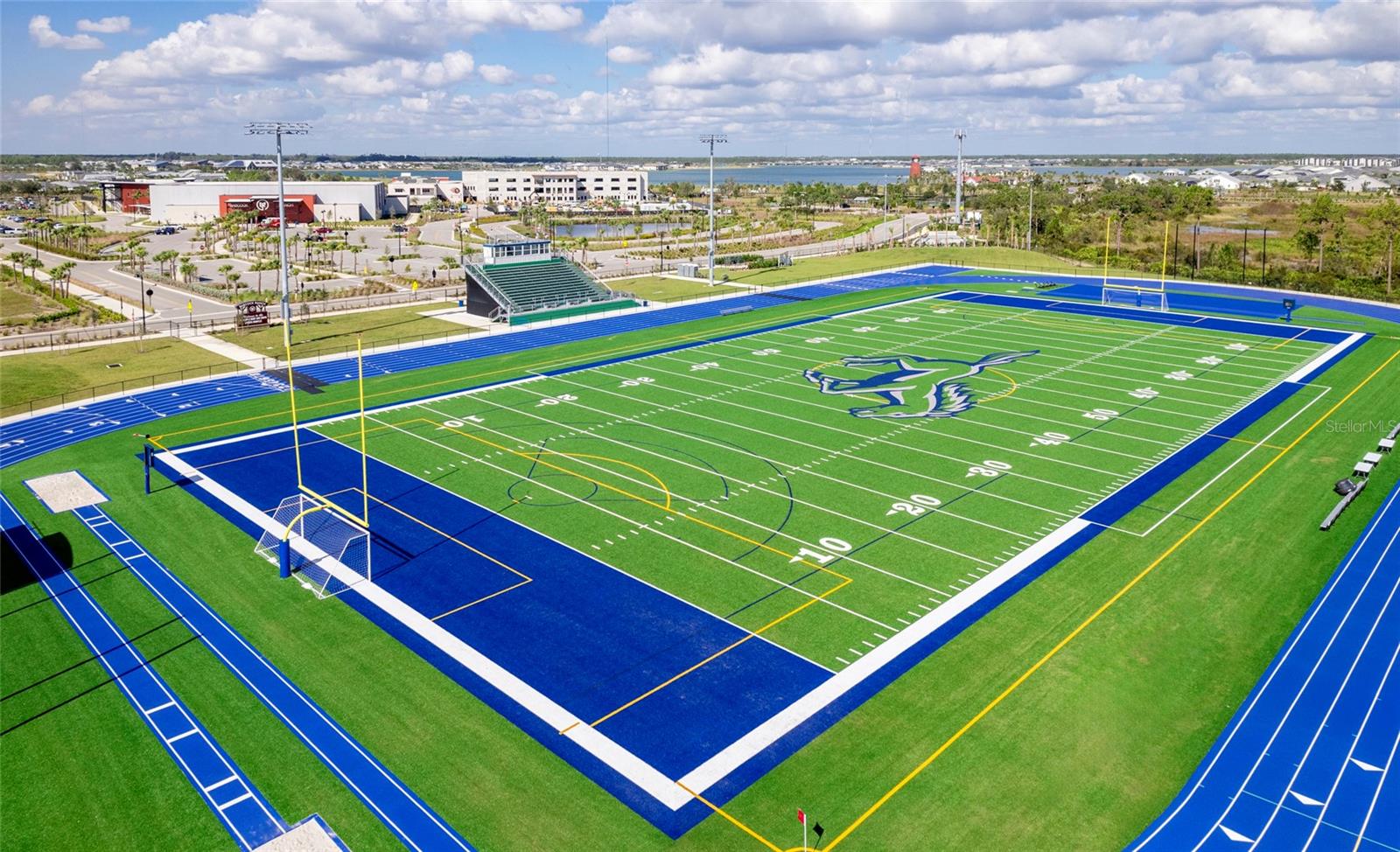When you enter this stunning Pulte-built Citrus Grove home, featuring four bedrooms and an owner's suite on the main floor, plus a den and loft overlooking the lake, you'll feel right at home! Located at the end of a cul-de-sac. Enjoy beautiful southwest sunset views. Immerse yourself in the luxury of a custom-designed pool featuring a soothing hot tub, a spacious sunshelf perfect for lounging, and intricate mosaic designs that add a touch of artistic elegance. This home boasts beautiful finishes, including an oversized quartz island, gas stove, corner pantry, custom drop zone for shoes and bags, high-end woodwork in the den, a custom fireplace, a tile backsplash, upgraded appliances, and additional upgrades that set this home apart. The downstairs owner's suite has double sinks, a large walk-in custom closet, and a spacious shower with a glass barn door, making it a perfect retreat, while three more bedrooms and a loft on the second floor provide comfort for family or guests. This well-designed home perfectly combines luxury, convenience, and waterfront living. The two-car garage has an epoxy floor and overhead storage. You are conveniently located within a short distance to Founders Square and Telegraph Park, where you can enjoy Food Truck Fridays with live music or Farmer Market Sundays. Babcock Ranch is the first solar-powered town, offers a welcoming community and beautiful nature, and features modern technology, ranking among the top 50 places to live in the United States.
