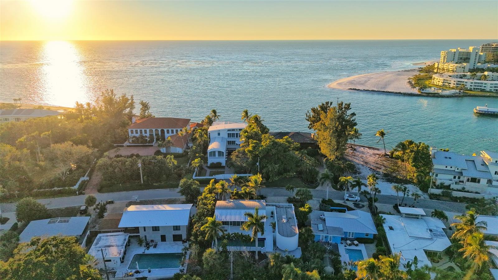 In the sought-after Lido Shores community with deeded beach access, this striking contemporary residence is a rare architectural offering designed by renowned Swiss architect Hans Ritschard. Thoughtfully updated while honoring its modernist roots, the home seamlessly blends timeless design with today's lifestyle. At the heart of the home is a dramatic atrium, an architectural centerpiece designed for year-round enjoyment. Sixteen-foot floor-to-ceiling windows on three sides frame tranquil views of the 54ftx 18ft covered patio, the lap pool and lush palm-filled grounds, while clerestory windows introduce warm, indirect sunset light from the fourth side. A state-of-the-art climate control system ensures comfort in every season, making this space ideal for gathering, relaxing and entertaining, rain or shine. The newly renovated gourmet kitchen anchors the living spaces, featuring sleek finishes and an open-concept layout that overlooks the atrium, ideal for everyday living and hosting guests while preparing a favorite meal. The residence offers three bedrooms and three baths, along with a versatile ground-level flex space that can easily serve as an additional bedroom, home office or private gym. The lower level includes a walk-out family room with sliding glass doors that open directly to the outdoor living areas, enhancing the home's seamless indoor-outdoor connection. A two-car garage provides ample storage, including a dedicated closet for beach gear, bikes and recreational equipment.
