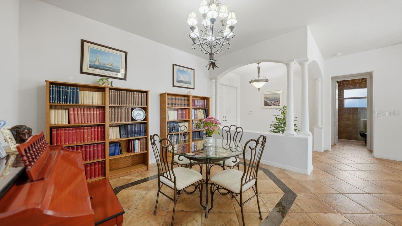 Welcome to this beautiful custom designed six bedroom four bathroom home with a commanding stately architectural presence. *Click on the video link below to tour*. A grand entryway showcases columns, graceful archways, rounded corners, and soaring *10-foot ceilings* throughout, reflecting craftsmanship at every turn. The formal dining room is highlighted by a custom marble inlay floor and generous space for hosting memorable gatherings. The gourmet kitchen is thoughtfully designed for both everyday living and entertaining, featuring abundant cabinetry, a central prep island, double ovens, *new refrigerator and microwave (2024)*, a dedicated coffee station, reverse osmosis filtration, built-in pantry and a display case with glass cabinetry to display fine china and collectibles. The kitchen opens seamlessly to the family room, creating a warm and connected entertaining space. The expansive family room offers a sophisticated yet comfortable setting with a feature wall designed to accommodate large format television. Triple pocket sliding doors fully retract, along with two additional sliding doors opens to create the home's spectacular resort style outdoor living area. Here, a large swimming pool and built in Jacuzzi are enclosed within a dramatic *newly restored (2024)* two story screened lanai. The *new pool heater (2025)*, allows for year-round enjoyment. An outdoor kitchen with a *new mini beverage refrigerator (2026)*, sink and grill completes the space, ideal for elegant entertaining or relaxed poolside dining. Just off the family room, a versatile bonus space provides an area perfect for a media lounge, home theater, reading retreat, or entertainment room enhanced by custom architectural cutouts. A first floor guest bedroom and full bath offer a private and comfortable suite for visiting family or friends. The spacious indoor laundry room with *new washer (2025) and dryer (2019)*, is near kitchen located by entrance of the abundant three car garage. Upstairs, a sweeping wrought-iron staircase leads to thoughtfully designed living quarters. Two spacious bedrooms share a large Jack-and-Jill bath, while an additional bedroom with its own private bath serves as an ideal retreat for a teenager or extended guest. A generous private office with walk-in storage creates an exceptional work from home environment and can easily function as a nursery. French doors open to the expansive primary suite, featuring 10-foot tray ceilings, an oversized walk-in closet, and a spa-inspired bath with dual vanities, a glass-enclosed dual-head shower, and a luxurious soaking tub all under a *new roof (2024)*. The home provides home security system as well as *new upstairs a/c unit (2024) and downstairs a/c unit (2023)* and energy efficient insulated windows for peace of mind. Residents enjoy a meticulously maintained community with lush green spaces and scenic lakes. For convenience, HOA services include community pool access, Spectrum internet and television, and operation and testing of individual sprinkler systems. Perfectly positioned between University Parkway and SR 70, this distinguished residence offers effortless access to Interstate 75, U.S. 301, Sarasota-Bradenton International Airport, and the region's world-class beaches and St. Armands Circle to deliver the ideal balance of convenience and refined Florida living. Make this house your next home!!