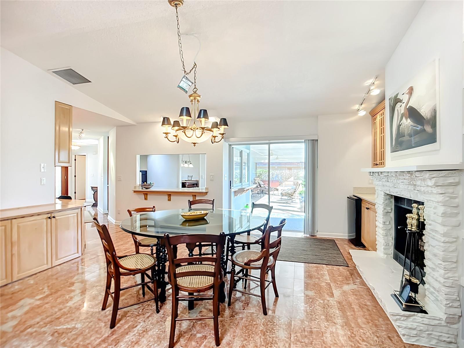 One or more photo(s) has been virtually staged. **COUNTRY CLUB OF SARASOTA** - Now affiliated with the Sarasota Sports Club, which is undergoing exciting improvements! Not included in the HOA Fee. A separate membership will be required. This charming home is nestled in a picturesque neighborhood with beautiful views. The spacious kitchen features ample wood cabinetry and overlooks the lush golf course, making meal prep a delight. Two generously sized living rooms on either end provide a warm and inviting space, complete with a cozy fireplace.The primary bedroom, located on the left, offers a large walk-in closet, while two additional bedrooms on the opposite side ensure comfort for family or guests. The updated bathroom includes a stylish new vanity, and the laundry room adds extra storage space for convenience.With elegant marble flooring throughout and hardwood floors in the bedrooms, the home exudes sophistication. An expansive screened lanai invites you to soak up the sun, facing south and overlooking the fairway of the 15th hole. Newer awnings provide added sun protection, and essential updates include a roof replacement in 2015 and new AC and water heater in 2019. A water softening system enhances this home's appeal.Schedule your showing today !!!
