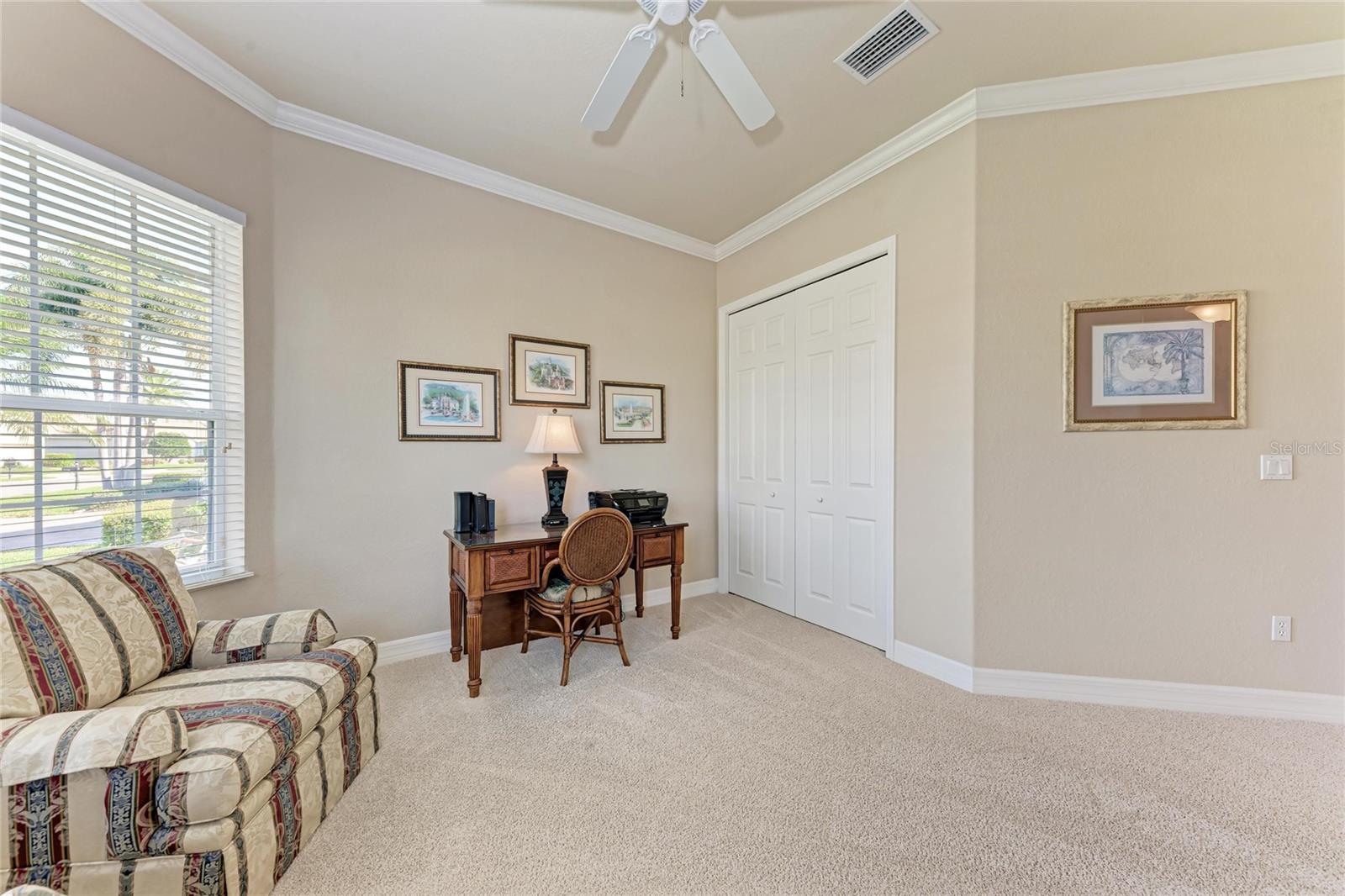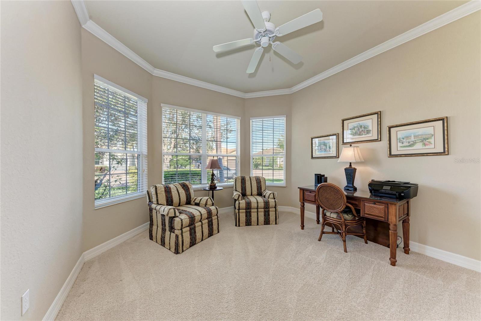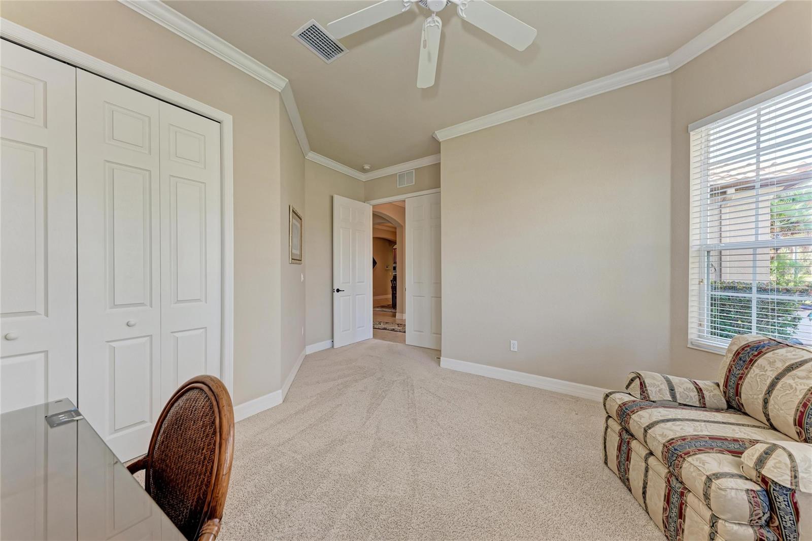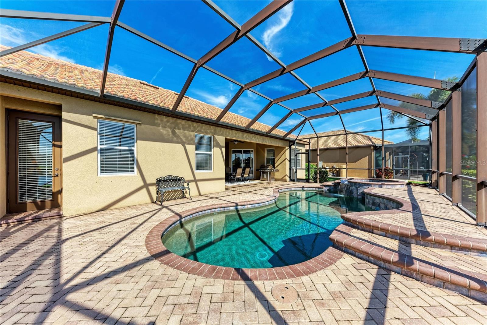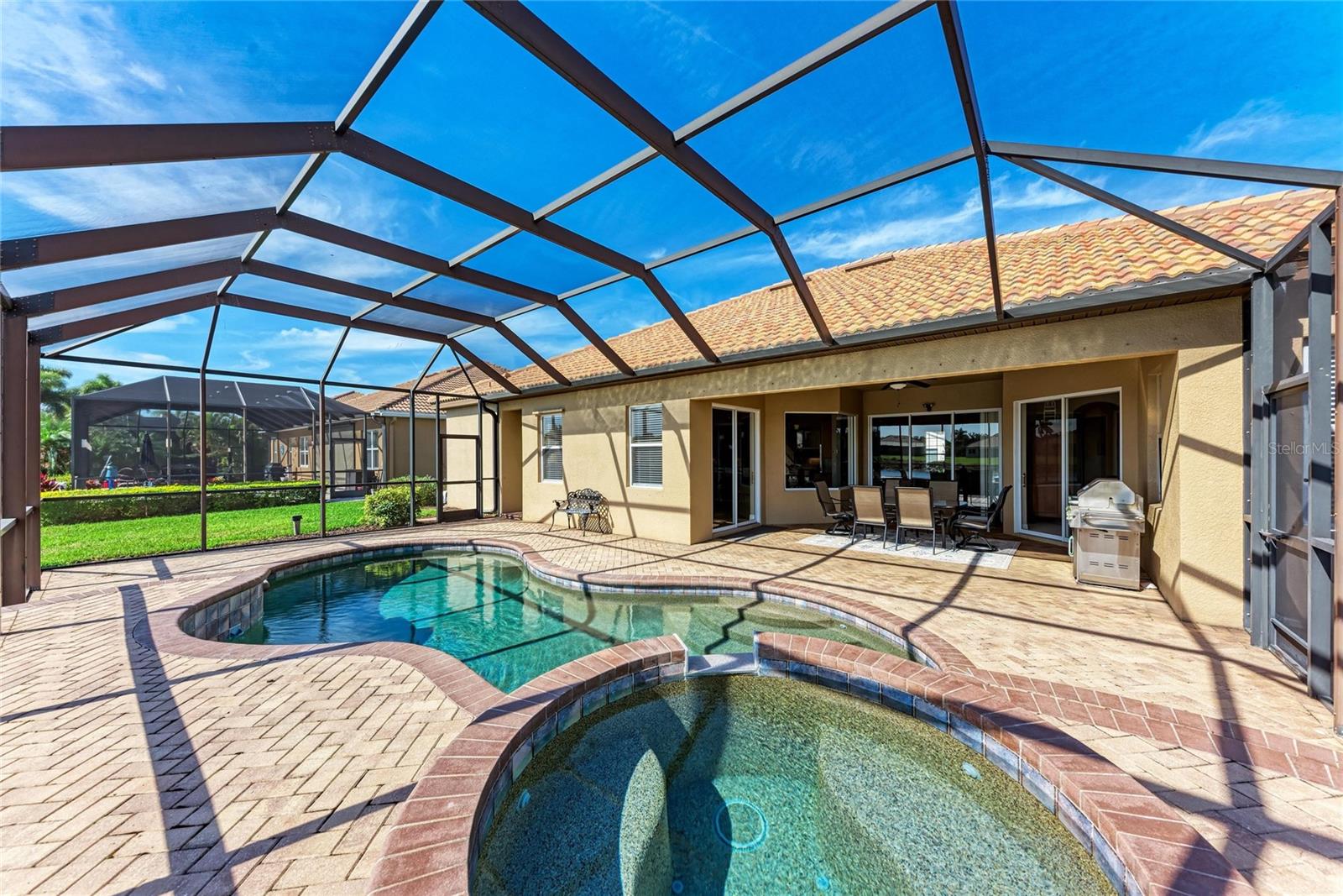 Sparkling water views and sunshine filled days are in your future if you make this beautiful home yours. Are you looking for a home that will fit all your family and friends or just need some extra space for an office, hobby room or a man cave? The fully furnished Sawgrass floor plan is the one for you. With four full bedrooms, three baths and an extra flex room, which can be a bedroom, office or den, this is the largest one-story floor plan offered in the golf-deed section of River Strand Golf and Country Club. The location offers stunning views out of the back, looking out to the south so you will have a lovely sunrise and sunset view on the pond in the backyard as well as the golfers at a safe distance on the other side of the pond. What's not to love with all the space and a three-car garage, oh and did I mention the expansive lanai with your own private pool and spa? The outdoor area is truly an extension of your home and offers the best that Florida living has to offer, including a large, covered area in case you have a rainy day. This home has never been rented, and the original owners have lovingly maintained it so It is ready for you. Strand Golf & Country Club is a friendly community with a 27-hole Arthur Hills designed golf course, 9 Har-Tru Tennis Courts, 8 Pickleball courts, 2 Resort-Style Pools, 6 Satellite Pools, currently renovated Clubhouse set to open later this spring with a restaurant & social events, Community Center & 2 fitness centers in this luxury gated community with 24 hr. security & lawn maintenance. Convenient location to I-75, Costco, Target, Hobby Lobby & more, University Town Center, & beaches complete the package. River Strand Golf & Country Club More than a Community, It's a Lifestyle.