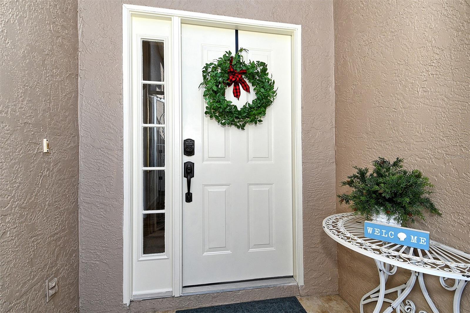 Exterior: Lighting, Rain Gutters, Sidewalk, Sliding Doors