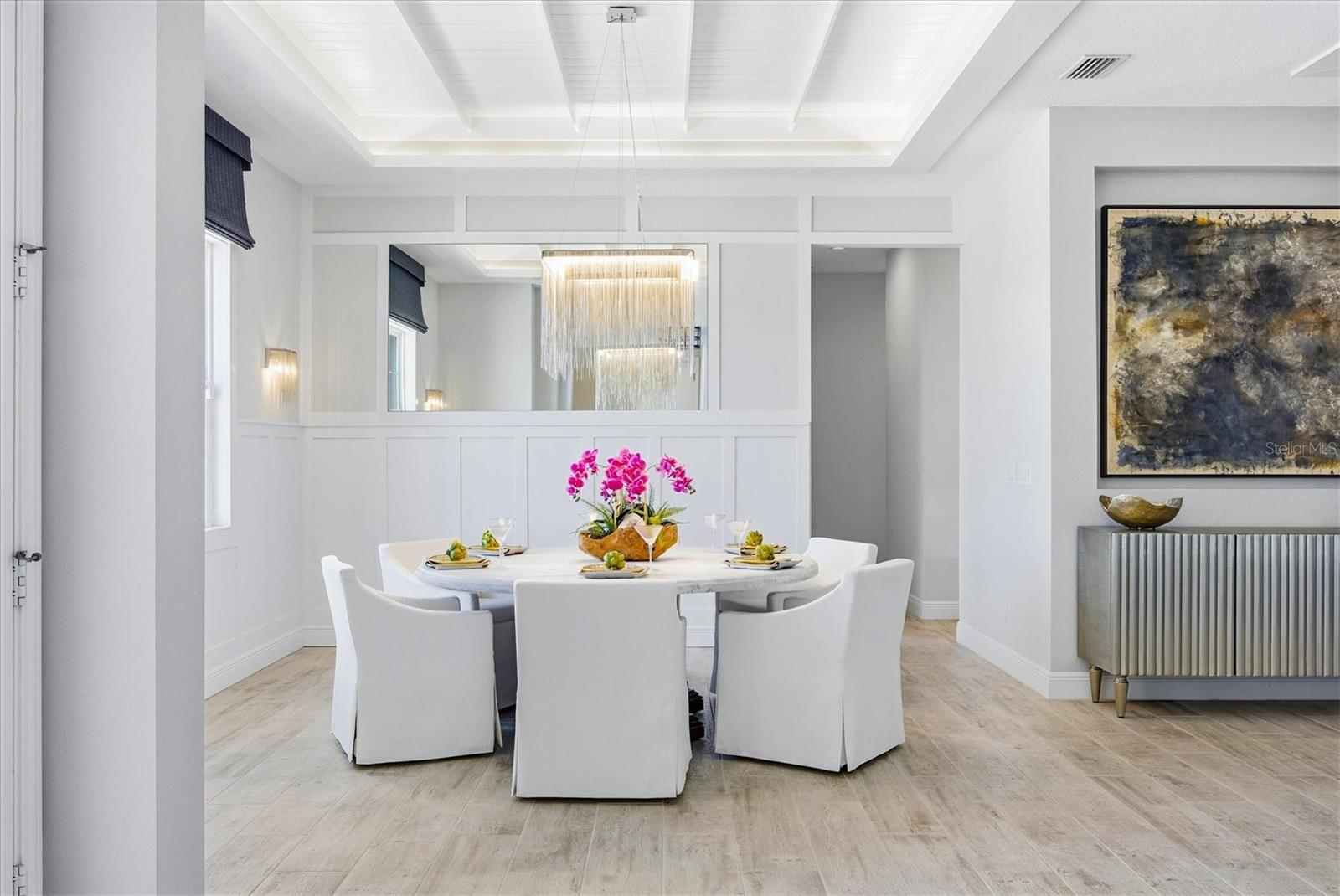 An Irreplaceable Estate Offering Unmatched Value and Distinction...A truly rare opportunity, this exceptional coastal-inspired estate--complete with a substantial detached shop--cannot be replicated at this price point. Built by Medallion Home in 2019 and set within the desirable Hampton Lakes subdivision, the residence is a masterful expression of refined luxury, craftsmanship, and serene country elegance.Spanning more than 3,400 square feet, the main residence is gracefully positioned on just over 3.5 acres, surrounded by sweeping pastoral views that create a sense of privacy and tranquility rarely found so close to modern conveniences. From the moment you arrive, the pavered drive and striking double glass-door entry set the tone for the sophistication within. The interior is rich in architectural detail, featuring custom ceilings, bespoke woodwork, coffered and tray ceilings, and wide-plank blonde beachwood-style tile flooring throughout. Sunlight pours into the home, illuminating thoughtfully designed spaces where modern elegance meets relaxed coastal charm. The chef's kitchen is both stunning and functional, offering a generous island, expansive breakfast bar, stainless steel appliances, double ovens, and a vented hood, all designed for effortless entertaining. Adjacent to the kitchen, the dining nook is framed by an aquarium-style glass window overlooking the screened pool, crowned by a striking beachgrass chandelier that adds warmth and character. Multiple living and dining areas provide versatility for both intimate gatherings and grand entertaining. A spacious bonus room with tray ceilings and corner sliding glass doors opens directly to the pool, seamlessly blending indoor and outdoor living. The formal dining room is enhanced with refined coastal detailing, ideal for elegant evenings at home. The primary suite is a private retreat, highlighted by wood beam accents, shiplap, and board-and-batten design elements. The spa-inspired ensuite features dual vanities, a luxurious walk-in shower, and premium finishes, while the custom walk-in closet offers exceptional storage and organization. Two additional guest bedrooms, a butler's pantry, and a show-stopping oversized laundry room--with abundant cabinetry, folding space, and a dedicated work desk--further elevate the home's functionality. Outdoors, the screened swimming pool is surrounded by lush tropical landscaping, offering a secluded oasis complete with a sun shelf, water features, and LED lighting. Covered lounging and expansive entertaining areas provide the perfect backdrop for alfresco dining and relaxed coastal living. Completing this extraordinary property is a 2,400-square-foot detached garage and shop, featuring decorative epoxy flooring, six electric garage doors with 10-foot openings, and generous space for vehicles, hobbies, or storage. Just minutes from Lakewood Ranch Main Street, downtown Sarasota, and world-renowned Gulf Coast beaches, this remarkable estate delivers an unparalleled blend of privacy, luxury, and convenience. An offering of this caliber is truly exceptional--schedule your private showing and experience the lifestyle that awaits.