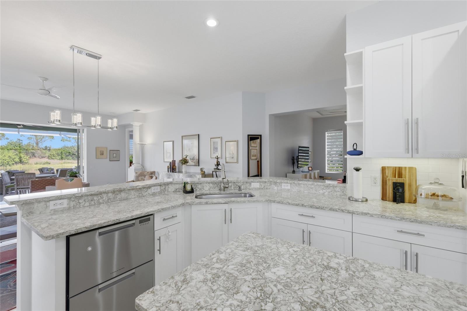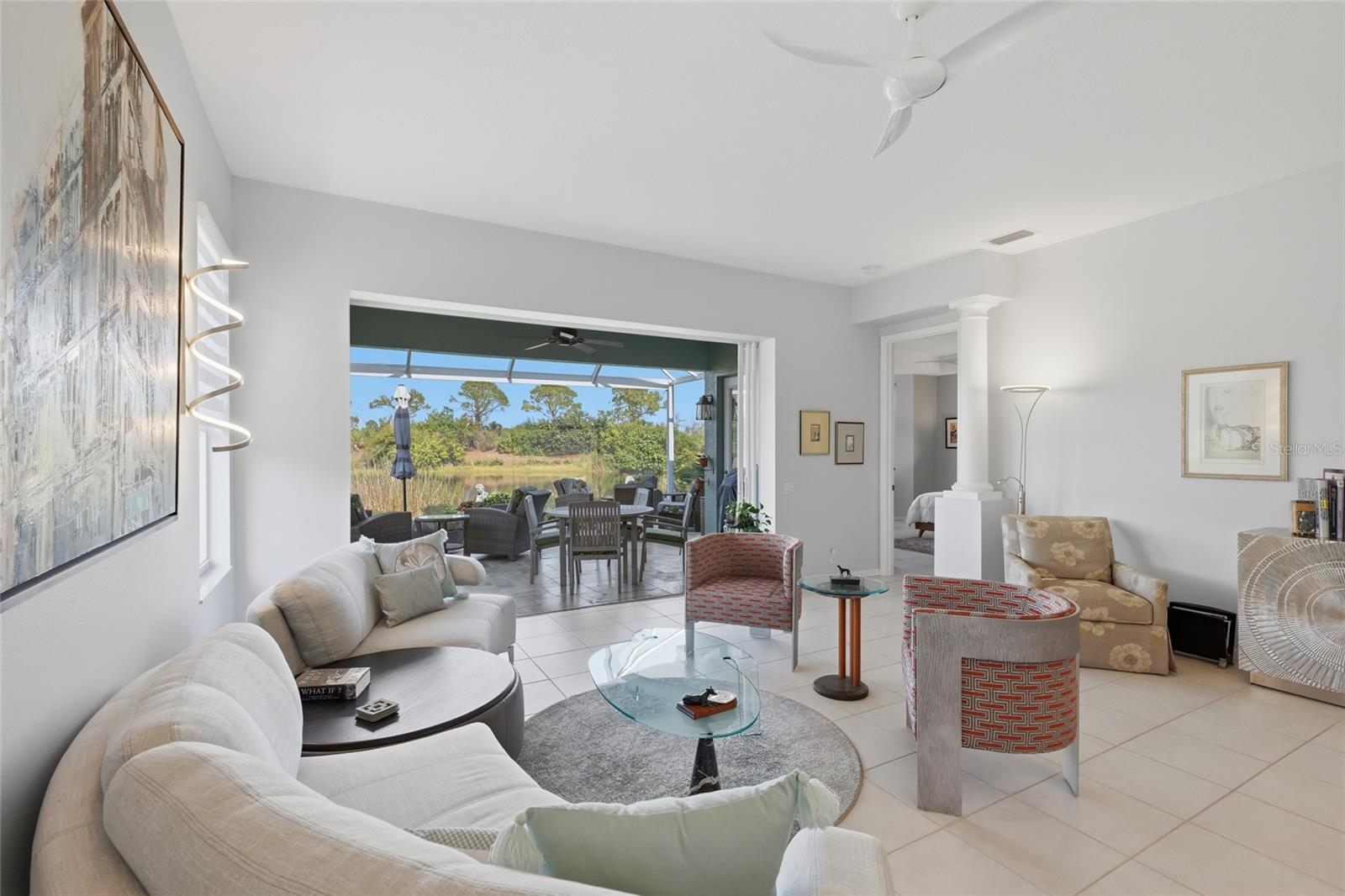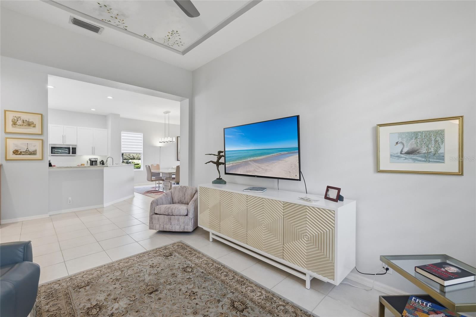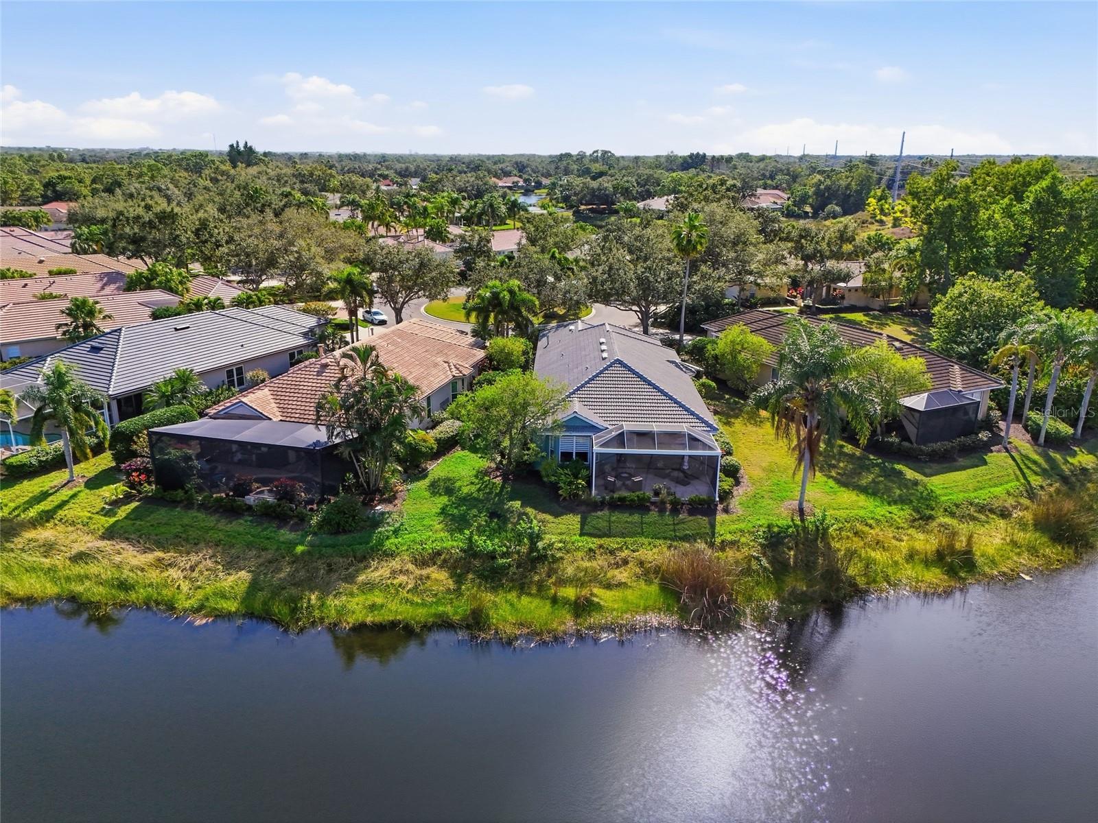 THIS IS A BEAUTIFULLY UPDATED HOME! POINT LAKEFRONT HOMESITE WITH A FABULOUS LAKE VIEW! Upon entering the impressive gates of University Park, with mature trees lining The Park Blvd., it's clear this is a special community. Tucked away on the cul-de-sac in the Notting Hill neighborhood, this floor plan is designed to showcase sweeping lake views from the kitchen, great room, and primary bedroom. Professional landscaping and custom paver driveway enhance this homes front elevation! The 2-bedroom, 2-bath home includes a separate dining room, den with French doors, tile throughout. Upgraded high end light fixtures! The updated chef's kitchen features quartz countertops, new stainless steel appliances including a 6 burner natural gas range, double oven, Fisher Paykel double drawer dishwasher, high end cafe refrigerator, refreshed cabinetry, and a cozy breakfast nook. The spacious primary suite offers dual walk-in closets and a well-appointed bath with a walk in shower and very relaxing air soaking tub. An extended, screened lanai with picture windows screening overlooks the pond, creating an ideal space to relax or entertain. The lanai has beautiful travertine flooring. Two car garage with an epoxy coated floor. THE ROOF IS JUST 4 YEARS OLD! Notting Hill is a grounds maintenance free neighborhood. The community pool is conveniently located just a few minutes walk from this special home. Please note that there is a rear entrance to University Park Country Club close to the Notting Hill neighborhood giving its residents excellent driving access to UTC Mall, Whole Foods, and fabulous restaurants!