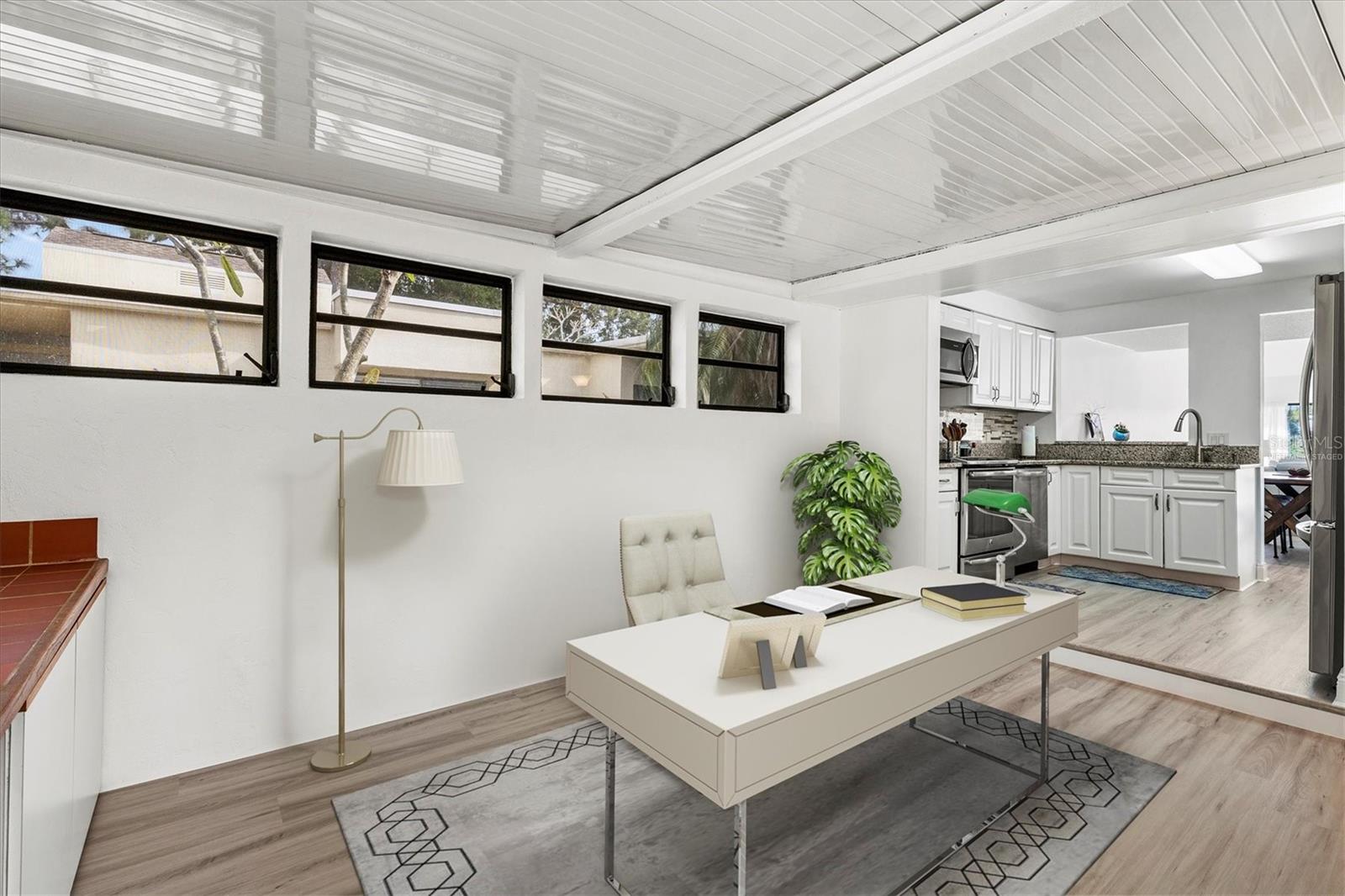 One or more photo(s) has been virtually staged. Captivating Views on Crispin Court. Located within the sought-after community of The Meadows in Sarasota, this beautifully remodeled THREE-BEDROOM, two-bath villa offers 1,608 square feet of thoughtfully designed living space, along with a versatile bonus area ideal for a home office, study, or flexible living needs--a feature not typically found in Meadowlake units. The A/C and hot water tank were REPLACED in 2022.This residence enjoys UNOBSTRUCTED WATER-VIEWS from the downstairs primary bedroom, living room, and an upstairs bedroom, all complemented by a picturesque golf course fairway in the distance, creating a serene and private setting. The two-story floor plan features a first-floor primary suite with an UPDATED en-suite bathroom and ample closet space. The spacious living and dining areas showcase VAULTED CEILINGS, enhancing openness, natural light, and the home's connection to the outdoors. Upstairs, two additional bedrooms provide comfort and privacy, ideal for guests or added flex space.The kitchen is well-appointed with granite countertops, abundant cabinetry, generous storage, a newer refrigerator, and a pantry, offering both functionality and timeless appeal. NEWLY INSTALLED luxury vinyl flooring runs throughout the home, while the entire interior has been freshly painted, providing a clean, move-in-ready presentation. Just beyond the living space, a screened-in lanai offers an inviting open-air seating area, perfect for morning coffee, evening relaxation, or enjoying peaceful water views--an ideal extension of the indoor-outdoor lifestyle.The surrounding landscape, both around the home and throughout The Meadows, feels more like a park with homes rather than a dense subdivision. Residents enjoy an active, amenity-rich lifestyle spanning over 1,650 acres of mature oak canopies, scenic lakes and waterways, golf courses, tennis courts, new pickleball courts, a fitness center, 14 miles of walking and bike trails, and a junior Olympic-size community pool. The Meadowlake neighborhood also offers TWO PRIVATE POOLS. Conveniently located near shopping, dining, cafs, University Towne Center (UTC), Mote Marine Aquarium, cultural attractions, and approximately 13 miles to Sarasota's renowned beaches, this villa offers comfort, lifestyle, and an exceptional location.Schedule your private showing today to experience the setting, views, and quality this Meadowlake villa offers--an exceptional opportunity within one of Sarasota's most established communities.