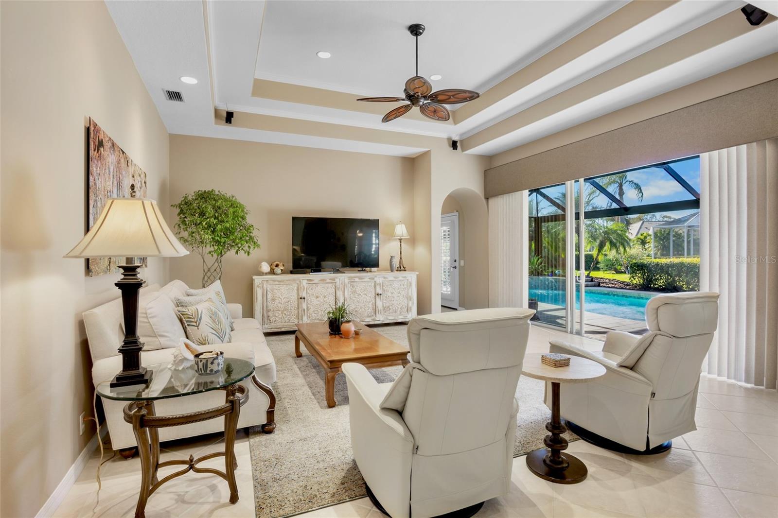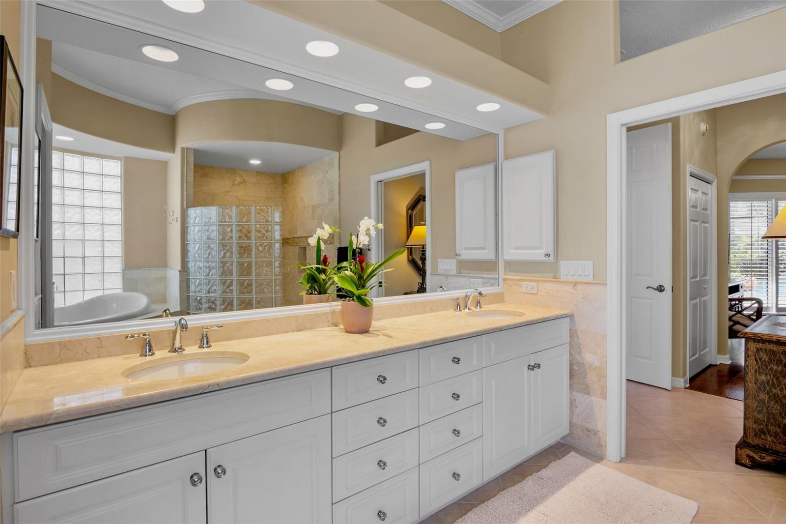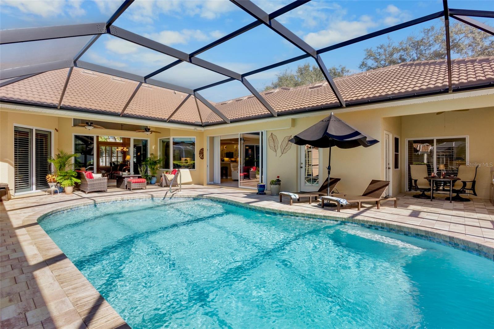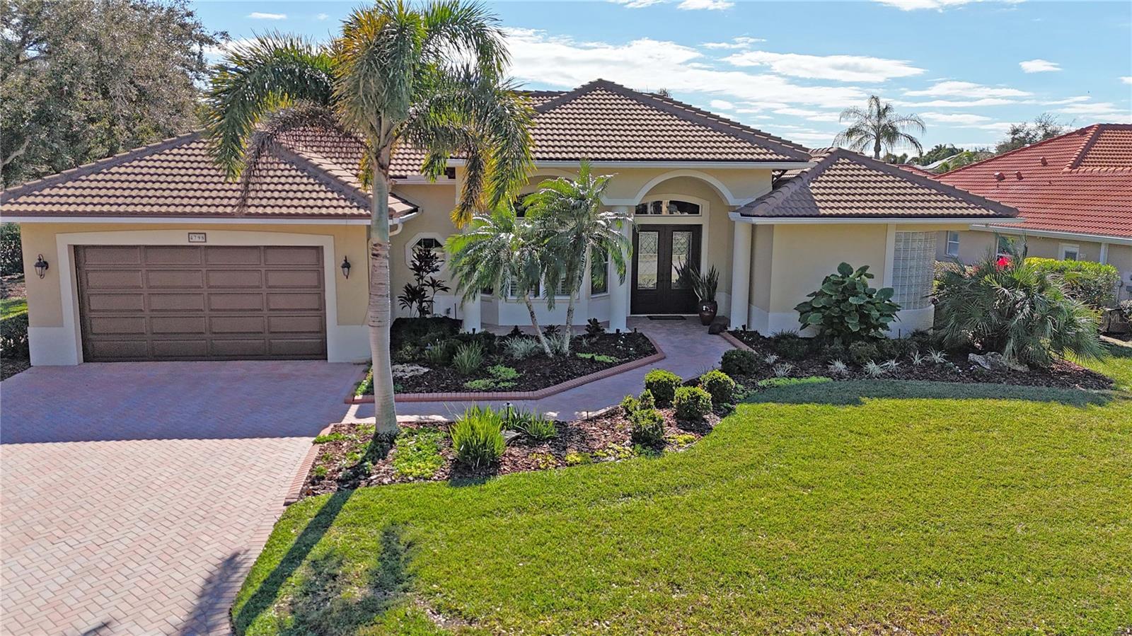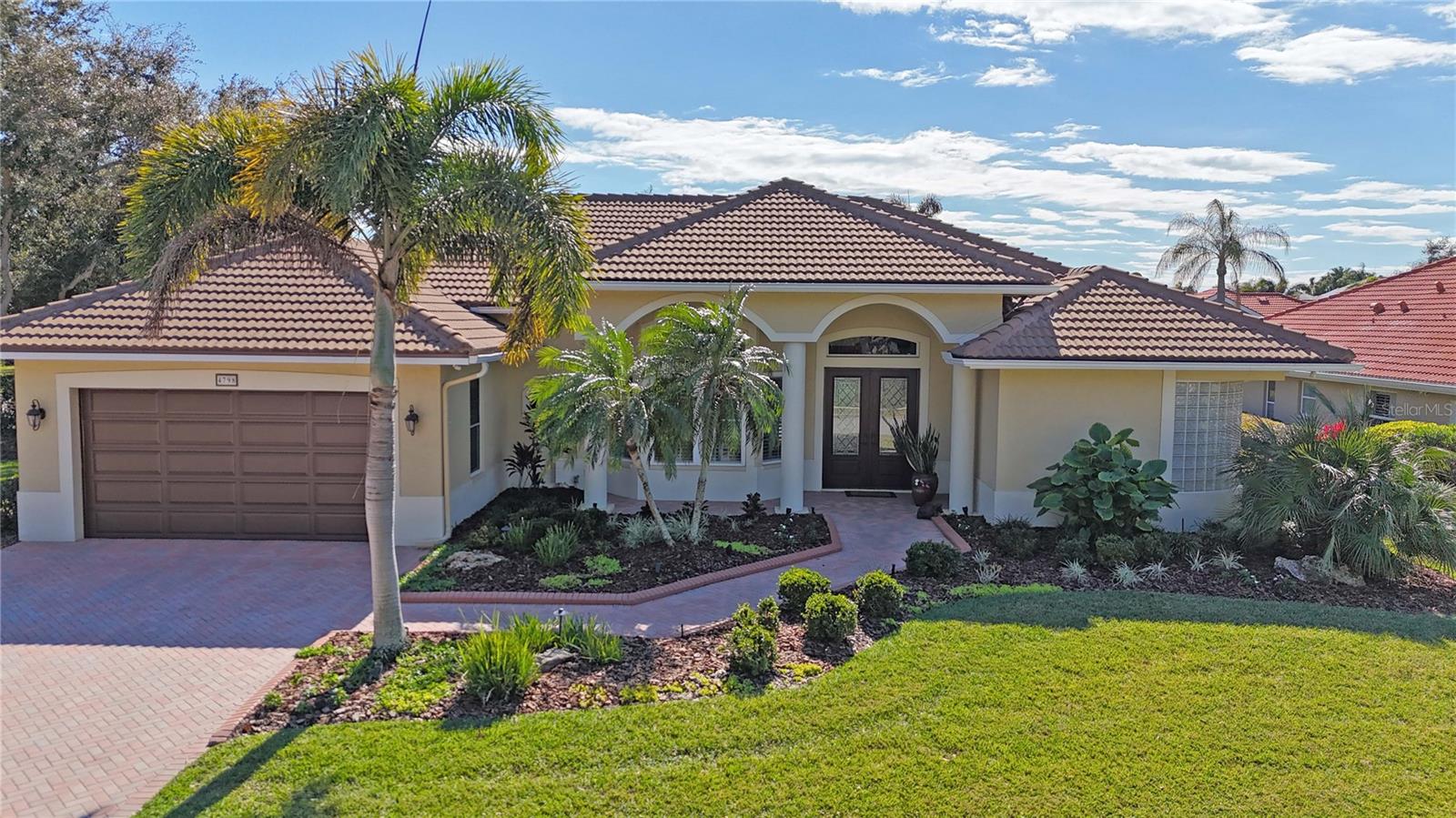 Welcome to an exceptional residence located behind the gates of the highly sought-after Turtle Rock community in Palmer Ranch, where residents enjoy resort-style living with access to a community pool, tennis, pickleball and basketball courts, and miles of scenic walking and biking trails winding through picturesque natural preserves. Perfectly positioned on an oversized corner lot within a quiet cul-de-sac, this home offers enhanced privacy and immediate curb appeal, highlighted by a pavered driveway and walkway, lush updated landscaping, and an elegant architectural presence. This beautifully maintained 4-bedroom, 3-bath residence showcases timeless architectural details throughout, including soaring double tray ceilings, crown molding, and custom millwork. Double Pella front doors with decorative glass insets welcome you into the dramatic living and dining spaces. The kitchen features granite countertops, rich wood cabinetry with glass accents, a two-tier island, and brand-new stainless steel Whirlpool appliances. Hunter Douglas blinds with a custom cornice frame the lanai view. The spacious family room impresses with a 18' tray ceilings, crown molding, recessed lighting, and a wall of sliders that seamlessly connect indoor and outdoor living. Throughout the home you'll find thoughtful upgrades, including plantation shutters on all windows and lanai doors, double-pane hurricane-impact windows, ceramic tile in main living areas and baths, luxury vinyl flooring in all bedrooms, custom window treatments with floor-to-ceiling panels, Tommy Bahama ceiling fans, a Bose surround sound system with coordinated lanai speakers, and a central vacuum system. The primary suite serves as a private retreat with crown molding, a walk-in closet, and a spacious bath featuring a glass-block shower and Jacuzzi tub. The bright and functional laundry room includes a commercial-grade LG washer and dryer, cabinetry, sink, and folding counter. For added peace of mind, the home reflects meticulous care and substantial investment in major systems, including: New Carrier 17 SEER HVAC system (2022 - $15,870), Concrete barrel tile roof replacement with updated sheathing (2021 - $52,000), Navien tankless water heater, Halo whole-house water treatment system, Updated garage door components (2024-2026) New attic access stairs The oversized two-car garage features extra-high ceilings, storage racks, an overhead platform with plenty of additional storage space , and durable interlocking flooring. Outdoor living has been completely reimagined to create a refined private oasis. The pool was resurfaced, re-tiled, and converted to a saltwater system, enhanced by a custom party light (2023 - $22,000). The lanai flooring was replaced with pavers, and the entire lanai cage was upgraded with a high-impact bronze frame and panoramic screening (2023 - $28,000). A fully equipped summer kitchen with gas grill, sink, tiled countertops, and ceiling fan completes this exceptional entertaining space. With its desirable southern exposure, extensive upgrades, and impeccable condition, this residence represents outstanding value in beautiful Palmer Ranch. Ideally located just minutes from fine dining, boutique shopping, and cultural venues, with the Legacy Trail nearby and world-renowned Siesta Key Beach only a short drive away. This is a rare opportunity to own an, impeccably maintained home in one of Sarasota's most desirable gated communities. Schedule your private showing today.