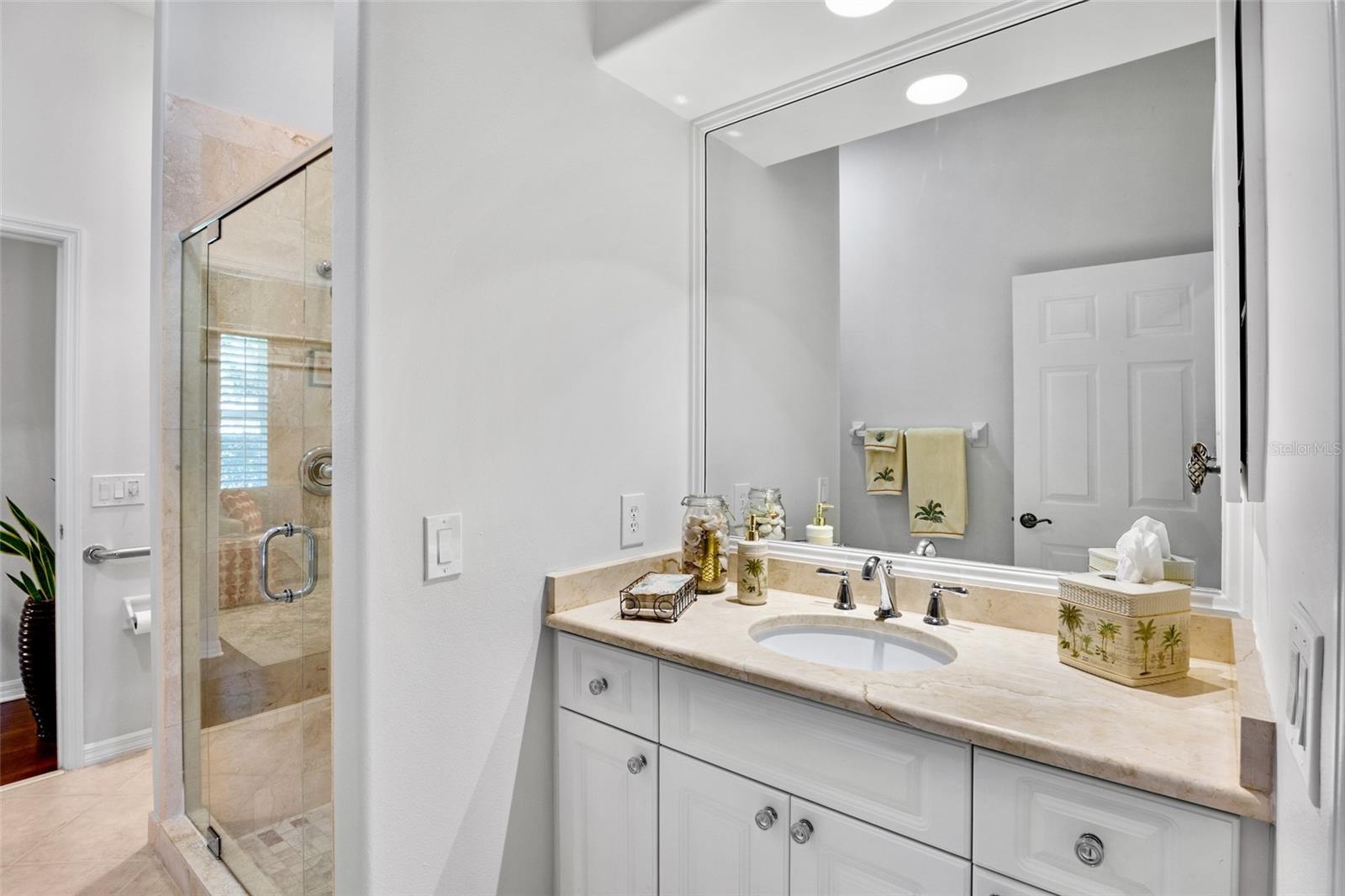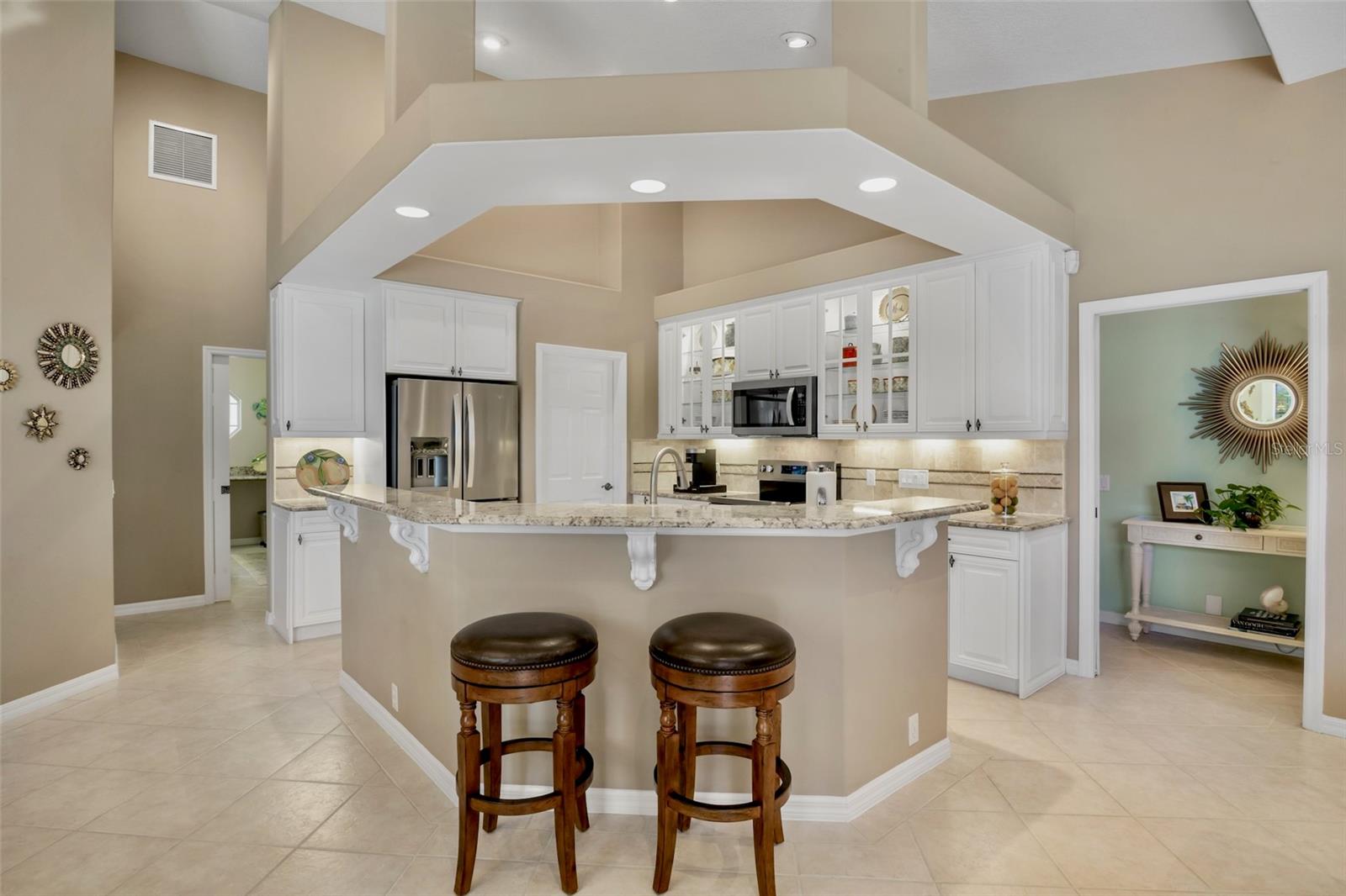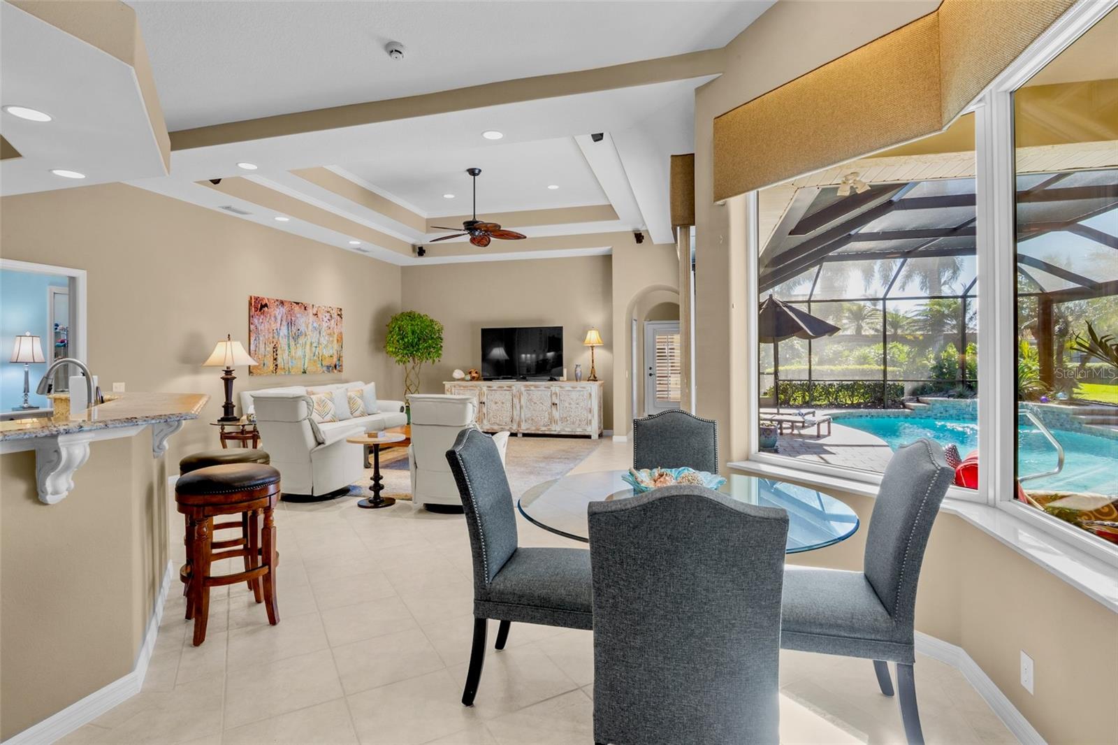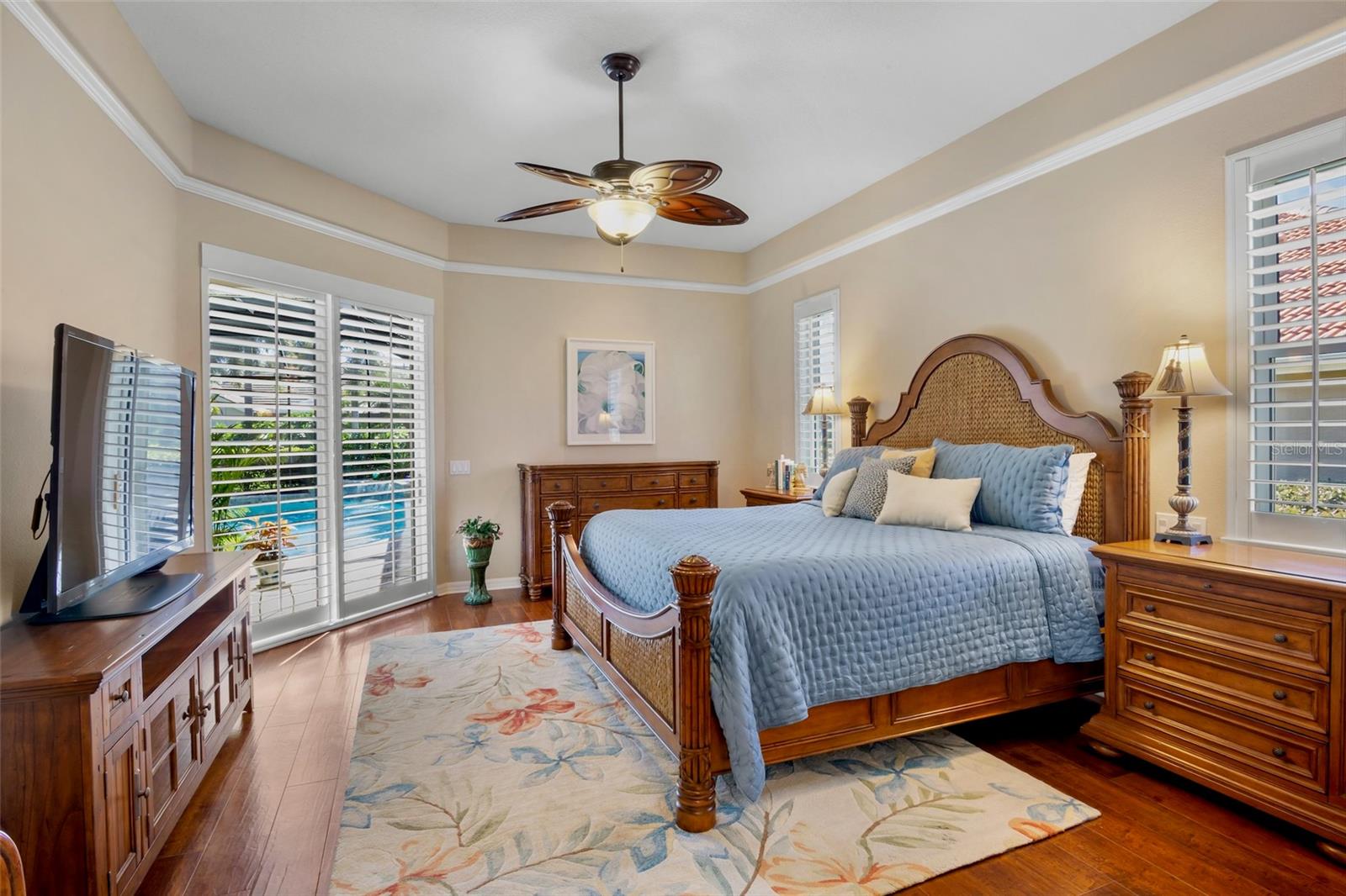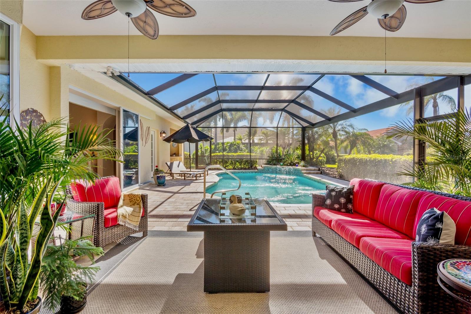 Welcome to an exceptional residence located behind the gates of the highly sought-after Turtle Rock community in Palmer Ranch, where residents enjoy resort-style living with access to a community pool, tennis, pickleball and basketball courts, and miles of scenic walking and biking trails winding through picturesque natural preserves. Perfectly positioned on an oversized corner lot within a quiet cul-de-sac, this home offers enhanced privacy and immediate curb appeal, highlighted by a pavered driveway and walkway, lush updated landscaping, and an elegant architectural presence. This beautifully maintained 4-bedroom, 3-bath residence showcases timeless architectural details throughout, including soaring double tray ceilings, crown molding, and custom millwork. Double Pella front doors with decorative glass insets welcome you into the dramatic living and dining spaces. The kitchen features granite countertops, rich wood cabinetry with glass accents, a two-tier island, and brand-new stainless steel Whirlpool appliances. Hunter Douglas blinds with a custom cornice frame the lanai view. The spacious family room impresses with a 18' tray ceilings, crown molding, recessed lighting, and a wall of sliders that seamlessly connect indoor and outdoor living. Throughout the home you'll find thoughtful upgrades, including plantation shutters on all windows and lanai doors, double-pane hurricane-impact windows, ceramic tile in main living areas and baths, luxury vinyl flooring in all bedrooms, custom window treatments with floor-to-ceiling panels, Tommy Bahama ceiling fans, a Bose surround sound system with coordinated lanai speakers, and a central vacuum system. The primary suite serves as a private retreat with crown molding, a walk-in closet, and a spacious bath featuring a glass-block shower and Jacuzzi tub. The bright and functional laundry room includes a commercial-grade LG washer and dryer, cabinetry, sink, and folding counter. For added peace of mind, the home reflects meticulous care and substantial investment in major systems, including: New Carrier 17 SEER HVAC system (2022 - $15,870), Concrete barrel tile roof replacement with updated sheathing (2021 - $52,000), Navien tankless water heater, Halo whole-house water treatment system, Updated garage door components (2024-2026) New attic access stairs The oversized two-car garage features extra-high ceilings, storage racks, an overhead platform with plenty of additional storage space , and durable interlocking flooring. Outdoor living has been completely reimagined to create a refined private oasis. The pool was resurfaced, re-tiled, and converted to a saltwater system, enhanced by a custom party light (2023 - $22,000). The lanai flooring was replaced with pavers, and the entire lanai cage was upgraded with a high-impact bronze frame and panoramic screening (2023 - $28,000). A fully equipped summer kitchen with gas grill, sink, tiled countertops, and ceiling fan completes this exceptional entertaining space. With its desirable southern exposure, extensive upgrades, and impeccable condition, this residence represents outstanding value in beautiful Palmer Ranch. Ideally located just minutes from fine dining, boutique shopping, and cultural venues, with the Legacy Trail nearby and world-renowned Siesta Key Beach only a short drive away. This is a rare opportunity to own an, impeccably maintained home in one of Sarasota's most desirable gated communities. Schedule your private showing today.