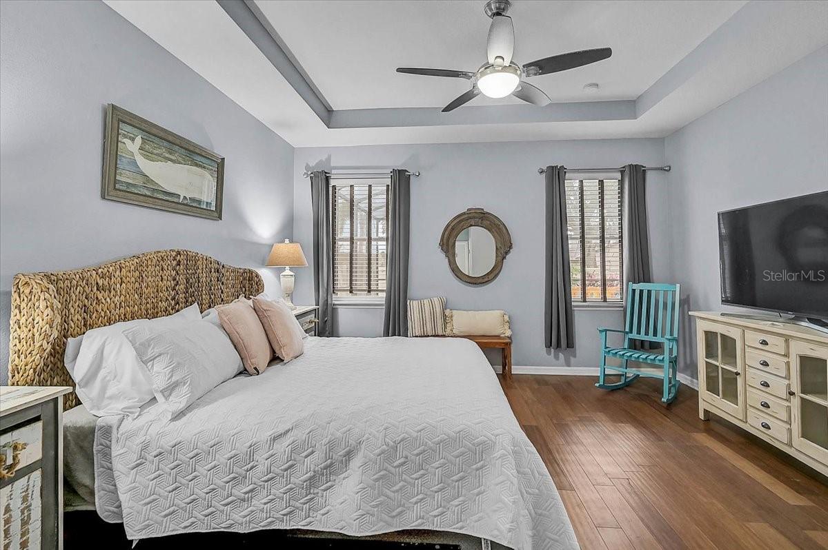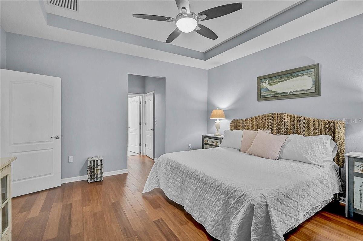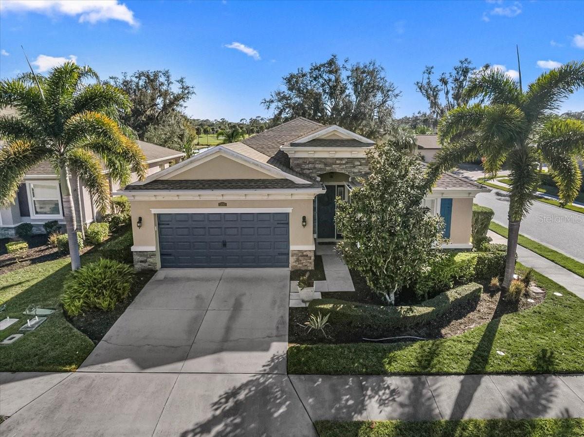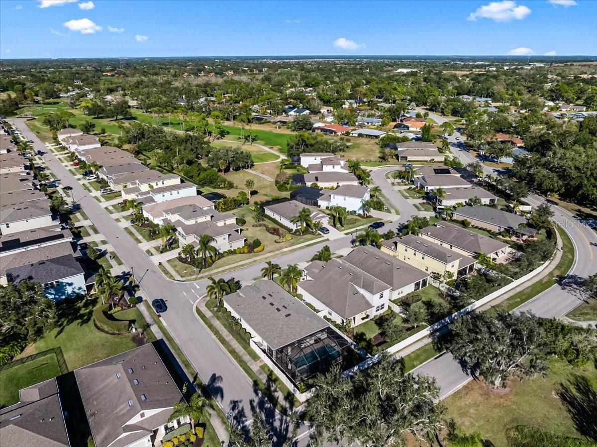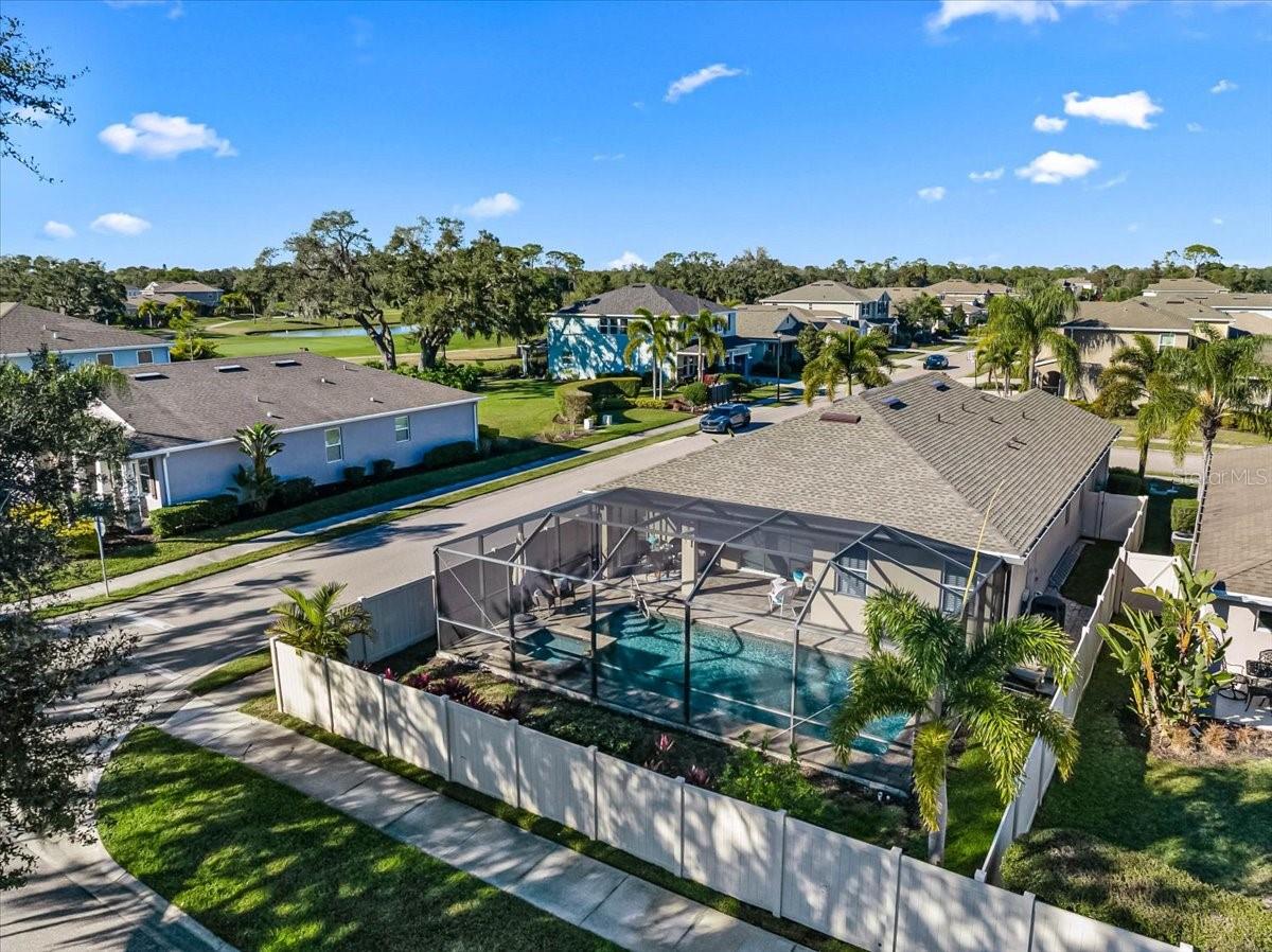 Located on a corner lot in The Fairways at Bent Tree, this home offers golf course and lake views in an optional golf community with maintenance-free lawn care. The fenced yard, screened lanai, and heated saltwater pool create the perfect setting for outdoor living.The open floor plan features 3 bedrooms plus a large den, 2.5 baths, and 9'4" ceilings with quality upgrades throughout. The kitchen includes 42" shaker cabinets, granite countertops, slate no-smudge appliances, and a large entertaining island. Tile flooring highlights the living areas, with bamboo flooring in the bedrooms and tray ceilings adding style.FPL Energy Certified with a 15-SEER HVAC, radiant barrier roof sheathing, and double-pane thermal windows. Ideally located less than 2 miles to I-75, 10 minutes to UTC, and approximately 20 minutes to Sarasota's top beaches. Move-in ready and perfectly positioned for easy, low-maintenance living.