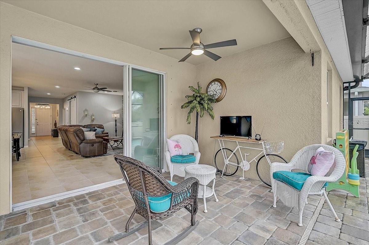 Exterior: Hurricane Shutters, Lighting, Rain Gutters, Sidewalk, Sliding Doors