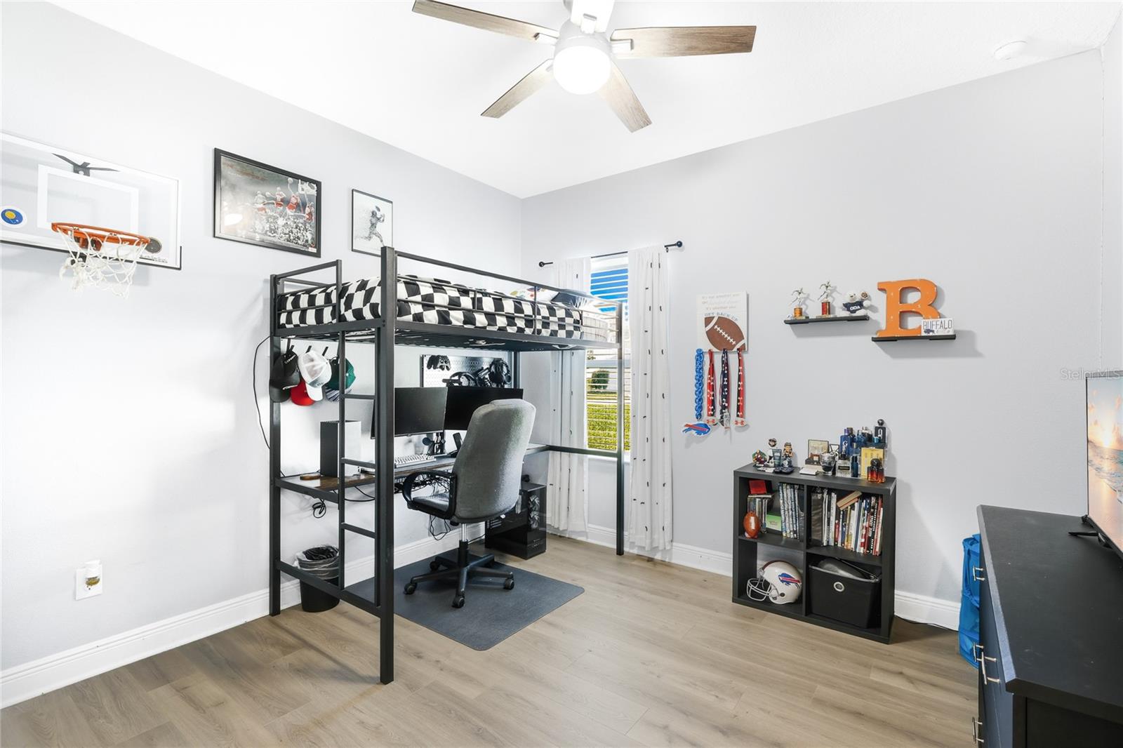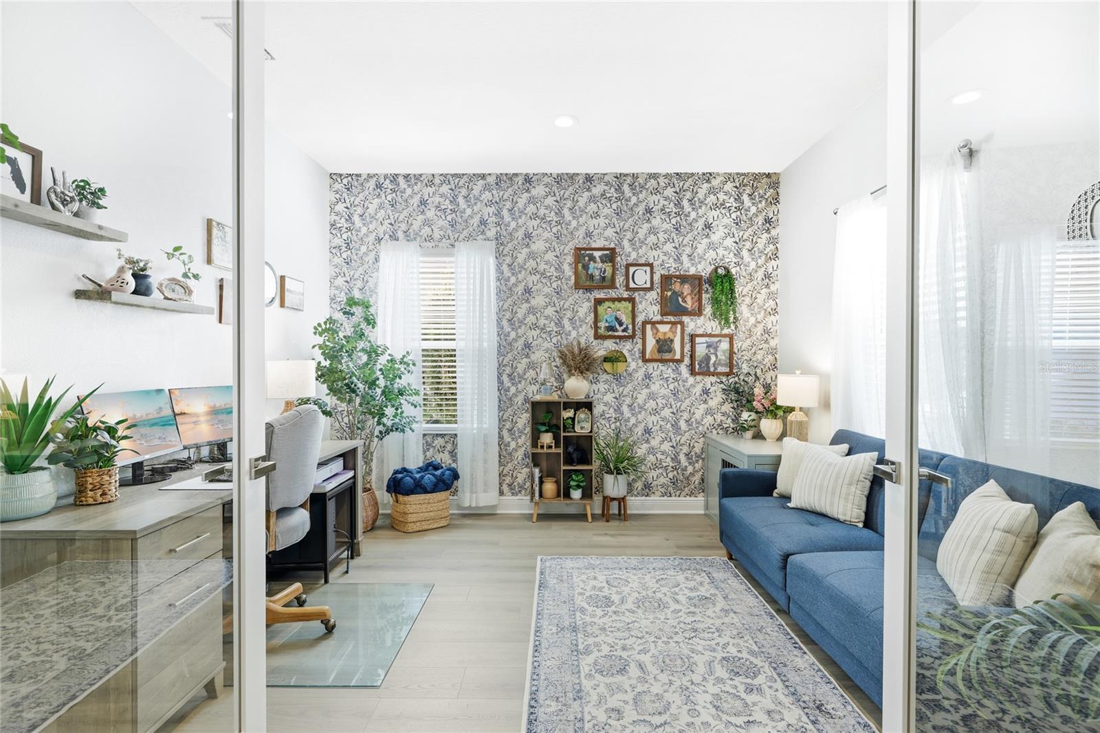 Located in the gated Neal Community of Silverleaf, this thoughtfully designed three bedroom, three and a half bathroom home offers comfort, style, and everyday functionality, all set on one of the largest lots in the neighborhood with peaceful pond views. Wide plank flooring, tray ceilings, and abundant natural light create a clean, airy atmosphere that flows naturally from room to room. The main living area connects seamlessly to the kitchen and dining space, making it ideal for both daily living and entertaining. The kitchen serves as a true centerpiece with stainless steel appliances, quartz countertops, a large center island with seating, modern cabinetry, and a walk in pantry. Sliding glass doors extend the living space outdoors, drawing your attention to the screened lanai and backyard retreat. A private front office enclosed with oversized glass doors offers flexibility for working from home, studying, or creative use. The split bedroom layout is ideal for privacy, with each guest bedroom offering its own bathroom, including one ensuite bath that is perfect for overnight guests or multi generational living. The primary suite provides a calm and comfortable retreat with tray ceilings and a well appointed en suite bath. Outdoor living is a standout feature of this home. The expansive screened lanai showcases a heated saltwater pool and spa, covered seating area, and tranquil pond views. The convenient half bath serves as a pool bath, adding comfort and functionality when entertaining or enjoying time outdoors. Additional features include hurricane impact windows and doors, a three car garage with extended driveway, electric vehicle charging outlet, whole house surge protection, gutters around the entire home, and an upgraded sprinkler system covering all lawn and planter areas. The home has been meticulously maintained with regular servicing of major systems. Silverleaf enhances everyday living with resort style amenities including a community pool, spa, fitness center, clubhouse, playground, dog parks, and scenic walking paths. Sidewalks, tree lined streets, and preserved natural surroundings add to the charm, all within a convenient Parrish location close to shopping, dining, and major roadways. **THIS PROPERTY QUALIFIES FOR A 1% LENDER INCENTIVE IF USING PREFERRED LENDER. INQUIRE FOR MORE DETAILS.**