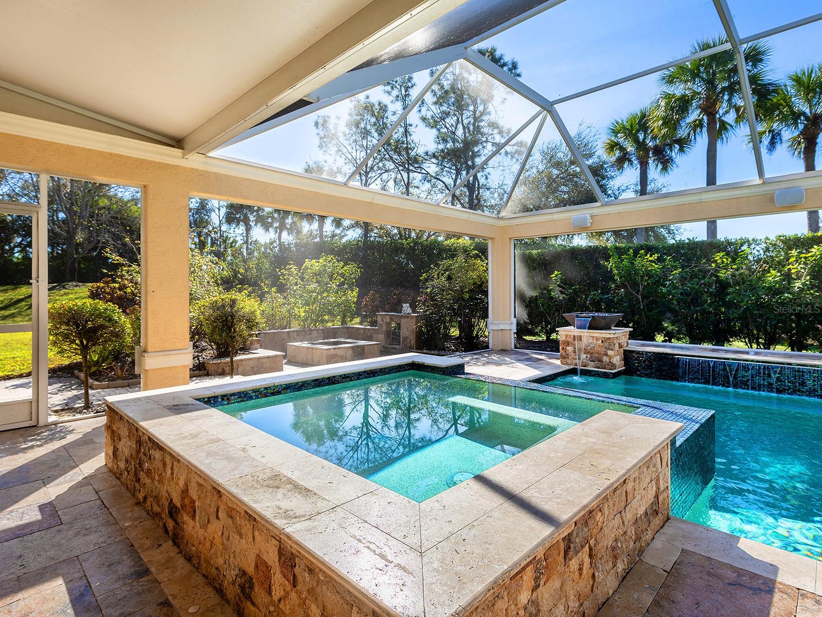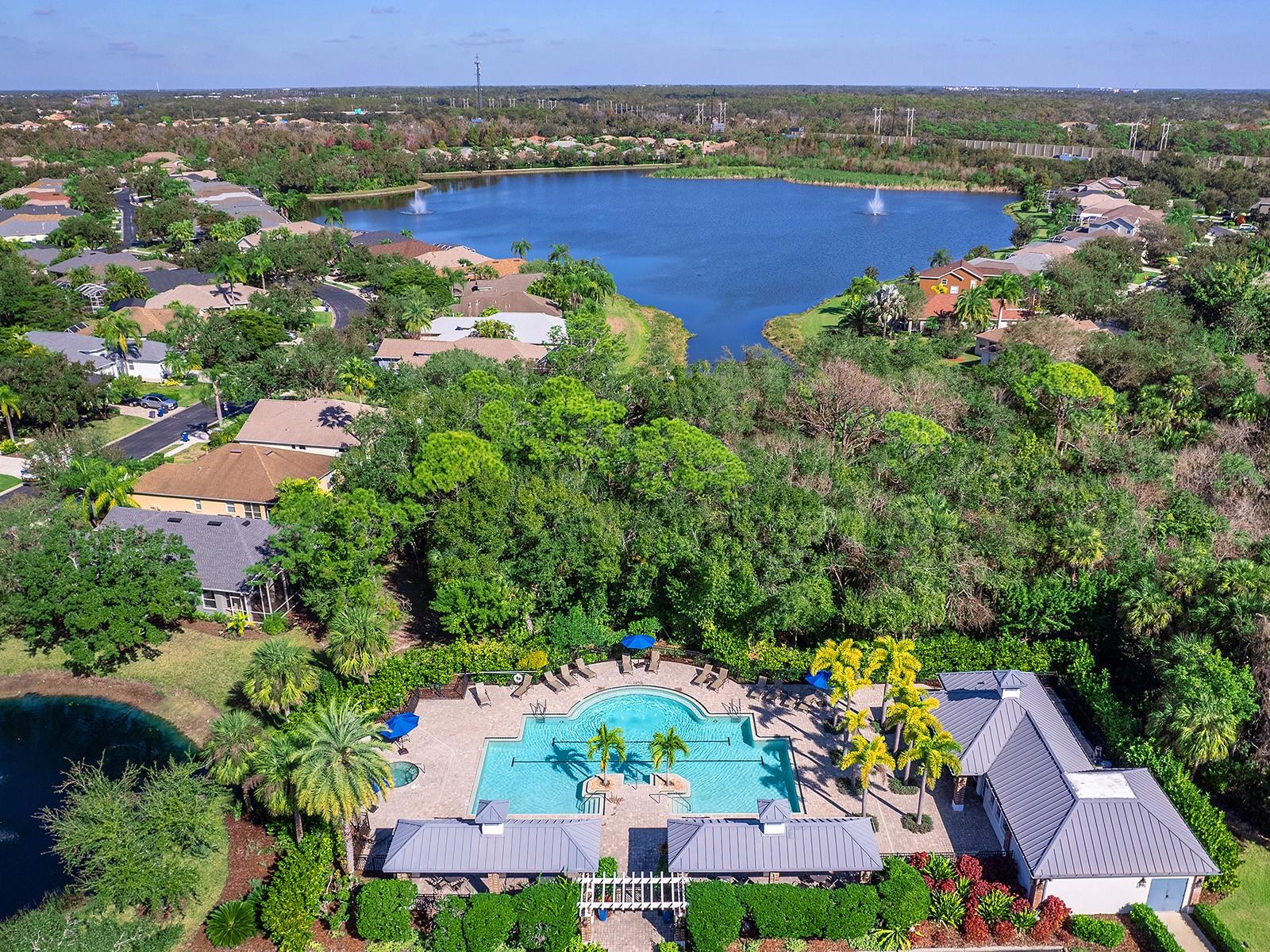 Privately positioned at end of a tranquil cul-de-sac in the prestigious gated enclave of University Place, this distinguished estate occupies the largest homesite in the community, offering an uncommon sense of space, privacy and refinement. Designed for elevated Florida living, the residence seamlessly blends architectural sophistication with resort-inspired outdoor luxury. The expansive rear grounds have been masterfully curated to create an extraordinary private retreat. An award-winning pool anchors the setting, enhanced by cascading water features, sculptural fire bowls, a 10-person spa and an elegant fire pit. A fully appointed summer kitchen and additional under-building living area provide exceptional versatility for entertaining and relaxation, day or evening. The interior layout is equally thoughtful, accommodating multigenerational living with a private suite ideal for extended family or guests. A strategically placed bath also serves as a pool bath, reflecting the home's intuitive design and effortless indoor-outdoor flow. The expansive entertaining kitchen serves as heart of the home, anchored by a generous island and complemented by stainless steel appliances and an abundance of finely crafted wood cabinetry, designed to balance everyday functionality with effortless elegance. The primary suite is a private sanctuary, offering direct access to the pool terrace, bespoke dual built-in closets and a spa-inspired atmosphere designed for rest, comfort and quiet luxury. Residents of University Place enjoy access to two exclusive recreation centers featuring resort-style pools, fitness facilities, outdoor kitchens with natural gas grills and scenic walking trails winding around serene, fountain-lit lakes. The community's Charleston-inspired streetlamps and flowering baskets contribute to its timeless charm and impeccable presentation. Ideally in the heart of the Sarasota-Bradenton corridor, the home offers immediate access to the UTC lifestyle premier shopping, fine dining, cultural attractions and Benderson Park, along with proximity to Interstate 75, downtown Sarasota and Bradenton, and world-renowned beaches of Siesta Key and Longboat Key. Golf, tennis and pickleball are moments away. A rare offering in one of the region's sought-after gated communities, this exceptional residence represents the pinnacle of Florida living where privacy, elegance and location converge.