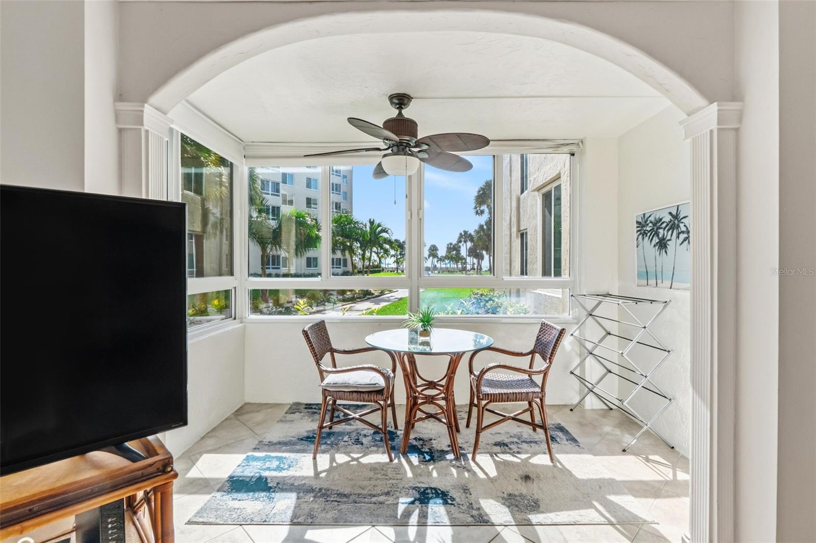 If tennis and pickleball courts, beachfront living, and exceptional rental potential are at the top of your list, welcome to Surf & Racquet Club on Siesta Key--where resort-style amenities and timeless island appeal come together seamlessly. This sought-after ground-floor residence in Building W (5916) offers effortless access, direct proximity to the beach, and a lifestyle that balances relaxation with activity. The interior has been thoughtfully renovated with a clean, sophisticated coastal aesthetic. The kitchen is a standout, featuring crisp white cabinetry, elegant quartzite countertops, stainless steel appliances, double ovens, recessed lighting, and bar seating ideal for casual entertaining or morning coffee before a walk on the sand. Both bathrooms have been updated to complement the home's refined yet relaxed design.Warm hardwood floors provide a rich foundation in the living area, paired with fresh neutral tones and curated furnishings with woven textures--rattan and bamboo elements that nod to island living while maintaining an elevated feel. The primary suite offers a versatile vanity area, perfect for getting ready for an exciting night in Siesta Key's vibrant village or preparing for another sun-filled day.The enclosed lanai, framed by expansive windows, overlooks the lush 13-acre grounds of Surf & Racquet with tranquil views toward the pool and palm-lined pathways leading to Siesta Key's world-renowned beach. Your ownership grants access to 2 heated swimming pools, fitness center, a BBQ pavilion, and a recreation hall as well as an active tennis calendar where owners come together for fitness, fellowship and fun. Whether you're seeking a polished beachfront retreat or a high-performing investment in one of the island's most iconic communities, this residence delivers comfort, style, and the unmistakable allure of Siesta Key living.