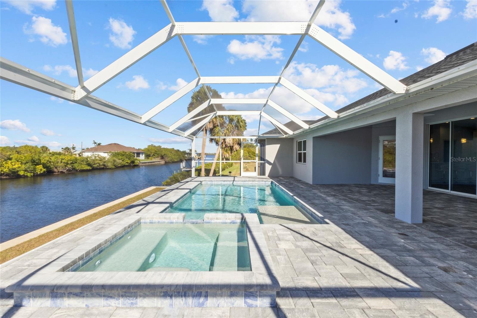 BRAND NEW CUSTOM-BUILT WATERFRONT HOME NEWLY COMPLETED, offering breathtaking water views and refined coastal design. Situated on a premium 80-FOOT CONCRETE SEAWALL LOT along the Myakka River, this beautifully crafted residence provides direct boating access to the Gulf, nearby islands, and Southwest Florida's renowned beaches.Designed with both style and function in mind, the home features 3 BEDROOMS, 2 BATHROOMS, plus a dedicated OFFICE/DEN, along with a HEATED POOL AND SPA and a fully equipped OUTDOOR KITCHEN--perfect for embracing the Florida lifestyle. The open-concept layout is filled with natural light and enhanced by elegant coastal finishes throughout.Interior details include crown molding, tray ceilings with accent lighting, transom windows, wainscoting, and custom woodwork. The bright and airy office/den is thoughtfully designed with French doors, making it ideal for working from home or additional flex space. The spacious KITCHEN is a standout, featuring BEAUTIFUL QUARTZ countertops, a large ISLAND with double sink and seating, an additional row of cabinetry for extra storage, soft-close SOLID WOOD CABINETS, a walk-in PANTRY, stainless steel Samsung appliances, and stylish pendant lighting. The dining area offers a picture window showcasing stunning water views A and Wainscoting for formal looks. The great room opens seamlessly to the lanai and pool area, creating an ideal indoor-outdoor living experience. The primary suite provides a tranquil retreat with a tray ceiling, two walk-in closets, dual vanities with granite countertops, a soaking tub, walk-in shower, and direct access to the lanai. Two generous guest bedrooms and a well-appointed laundry room with utility sink and brand-new Samsung washer and dryer complete the interior.Outdoor living truly shines with a spacious PAVER LANAI, oversized HEATED POOL and SPA, and OUTDOOR KITCHEN with built-in grill, under-counter refrigerator, and sink--perfect for entertaining or relaxing while enjoying expansive water views.Additional highlights include a 3-car garage with pull-down attic access, covered front porch, BRICK PAVER DRIVEWAY and WALKWAYS, hurricane shutters, and well-fed irrigation. HOMEOWNERS INSURANCE is exceptionally affordable at approximately $472 each quarter, and the home includes a transferable BUILDER WARRANTY, offering added peace of mind.Located in the desirable Gulf Cove community, residents enjoy access to a public boat ramp and park, with Boca Grande, Manasota Key, golf courses, marinas, world-class fishing, shopping, and dining just minutes away.This is a rare opportunity to own a thoughtfully designed, move-in-ready waterfront home that perfectly blends comfort, quality, and coastal living.