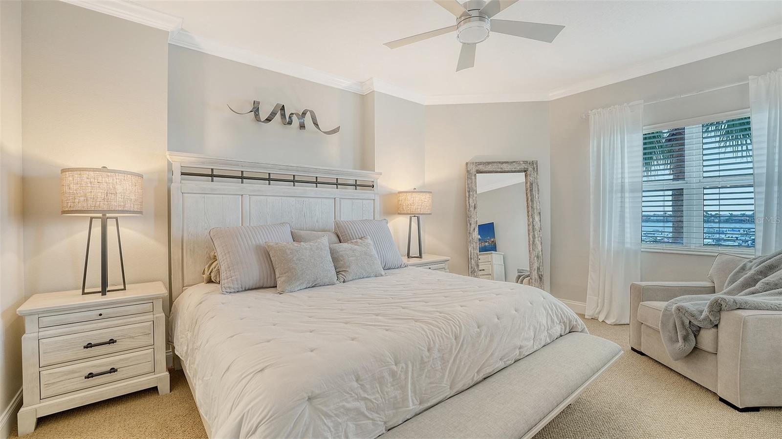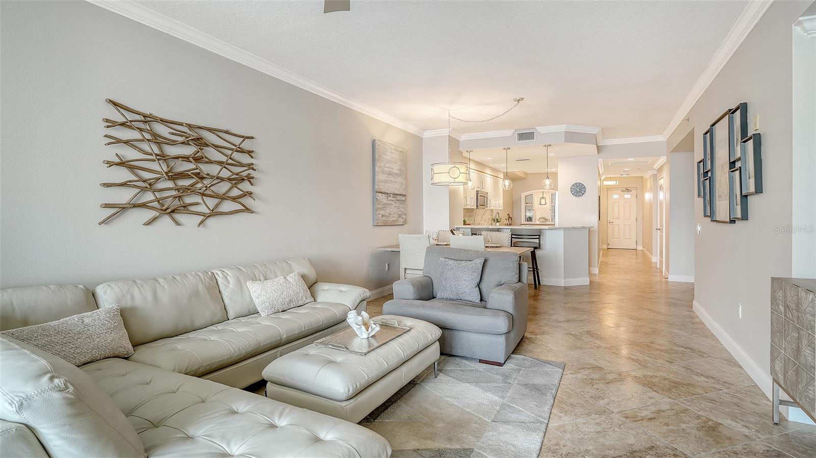 Discover a blend of coastal charm and modern sophistication in this stunning, FULLY-FURNISHED, third-floor residence at Laguna in Riviera Dunes. This 2-bedroom, 2-bath condo with a spacious den offers 1,758 square feet of thoughtfully designed living space, all set against the backdrop of captivating marina views. Every glance out the window reveals a picture-perfect scene, framed by IMPACT RATED WINDOWS AND DOORS that provide both beauty and peace of mind.The split floor plan ensures privacy and functionality, creating a natural flow between the serene primary suite and the inviting guest quarters. At the heart of the home, a beautifully REMODELED KITCHEN gleams with QUARTZ COUNTERTOPS, STAINLESS STEEL APPLIANCES, and custom touches that make it as practical as it is stylish. With an eat-in kitchen nook, a dedicated dining room, and a casual bar seating area, you'll enjoy versatile spaces perfect for entertaining or relaxing with morning coffee and evening wine.The open-concept layout is enhanced by high ceilings and abundant natural light, creating an airy, uplifting atmosphere throughout. A private laundry room adds everyday convenience, while a NEW ROOF (2025) NEW HVAC (2022) and NEW HOT WATER TANK (2024) ensure year-round comfort.The spacious den equipped with a MURPHY BED offers flexible living options--ideal for a home office, media room, or third bedroom. One covered parking space (under building) is included for your convenience. Best of all, this residence is being offered fully furnished, making it effortlessly move-in ready. Whether you're seeking a full-time residence or a luxurious seasonal escape, this condo captures the essence of waterfront living in one of the Gulf Coast's most desirable communities. Laguna is a premier waterfront condominium community ideally situated within Riviera Dunes, one of Florida's finest DEEP-WATER MARINAS, making it a perfect choice for boating enthusiasts. Nestled along the scenic Manatee River, this exclusive enclave offers a rare combination of luxury, serenity, and convenience. Residents enjoy breathtaking views of the river, marina, and stunning Gulf Coast sunsets from the comfort of their private balconies.The community itself is gated and secure, with amenities that include a resort-style heated pool and spa, fitness center, tennis courts, and a clubhouse for social gatherings and events. Adding to the appeal is the on-site waterfront restaurant, Dockside Social Bar + Kitchen. This stylish dining destination offers a relaxed yet vibrant atmosphere with indoor and outdoor seating, live music, and a diverse menu offering something for everyone.In addition to its boating and dining attractions, Laguna's location provides easy access to downtown Bradenton, Sarasota, and St. Petersburg, offering a rich mix of dining, shopping, cultural attractions, and entertainment. This is more than just a home--it's a lifestyle. Come experience the elegance, ease, and coastal beauty that await you at Laguna in Riviera Dunes.
