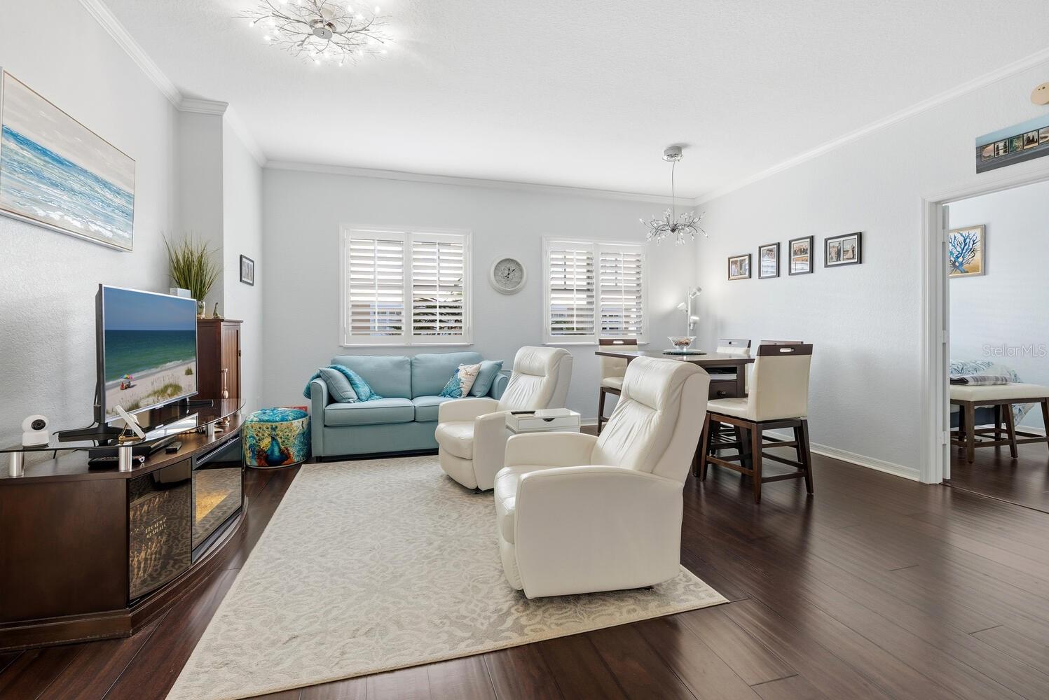 Welcome to your own piece of paradise at Broadway Promenade, where downtown sophistication meets exceptional value. This beautifully appointed two-bedroom, two-bath residence offers an open-concept, split plan layout for added privacy, rich luxury vinyl plank flooring, plantation shutters, & upgraded lighting throughout. Step onto the shaded balcony to tranquil courtyard views, a serene bubbling fountain & lush mature landscaping which create a peaceful, private retreat. The home offers a recently updated dishwasher & microwave, impressively low electric bills & some of the lowest condo maintenance fees in the downtown area. Two covered parking spaces in the under-building garage complete the offering. Located on the second floor, the home offers easy access to the many Broadway Promenade amenities which include fitness center, saunas, library, billiards room, 24-hour concierge, heated pool and spa, outdoor dining areas, & guest suites for visiting friends and family. Pet-friendly living completes the lifestyle. Step outside & embrace true walkability to Publix, downtown cafs, dining, & shopping are just moments away. Directly across the street, the city's vibrant waterfront park offers outdoor concerts, yoga classes, kayaking, movie nights, & more. This is refined urban living at its finest, without the downtown price tag. Furniture is negotiable.