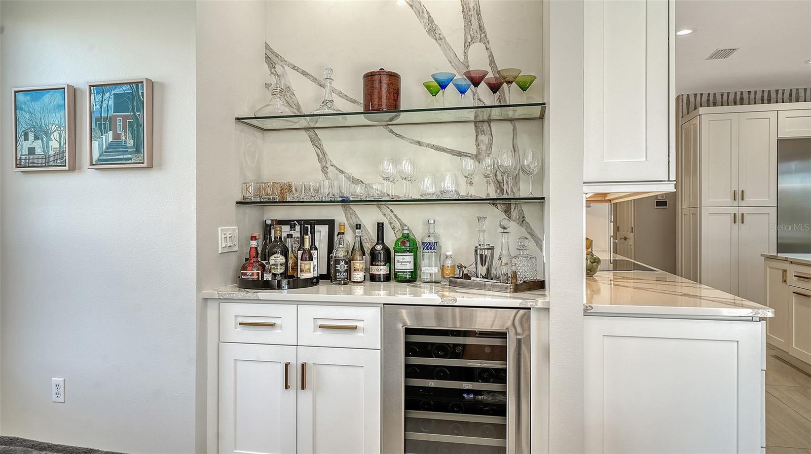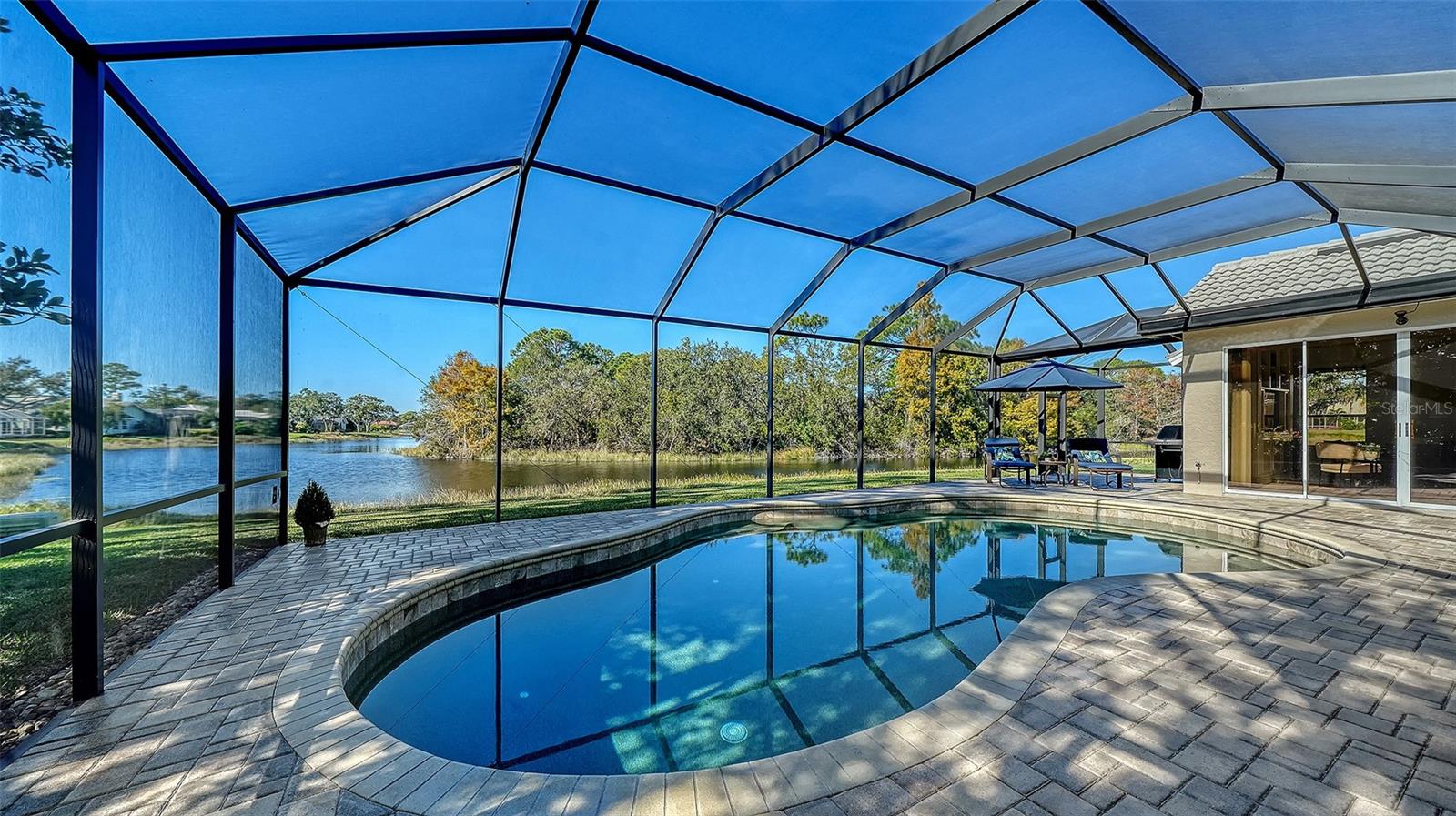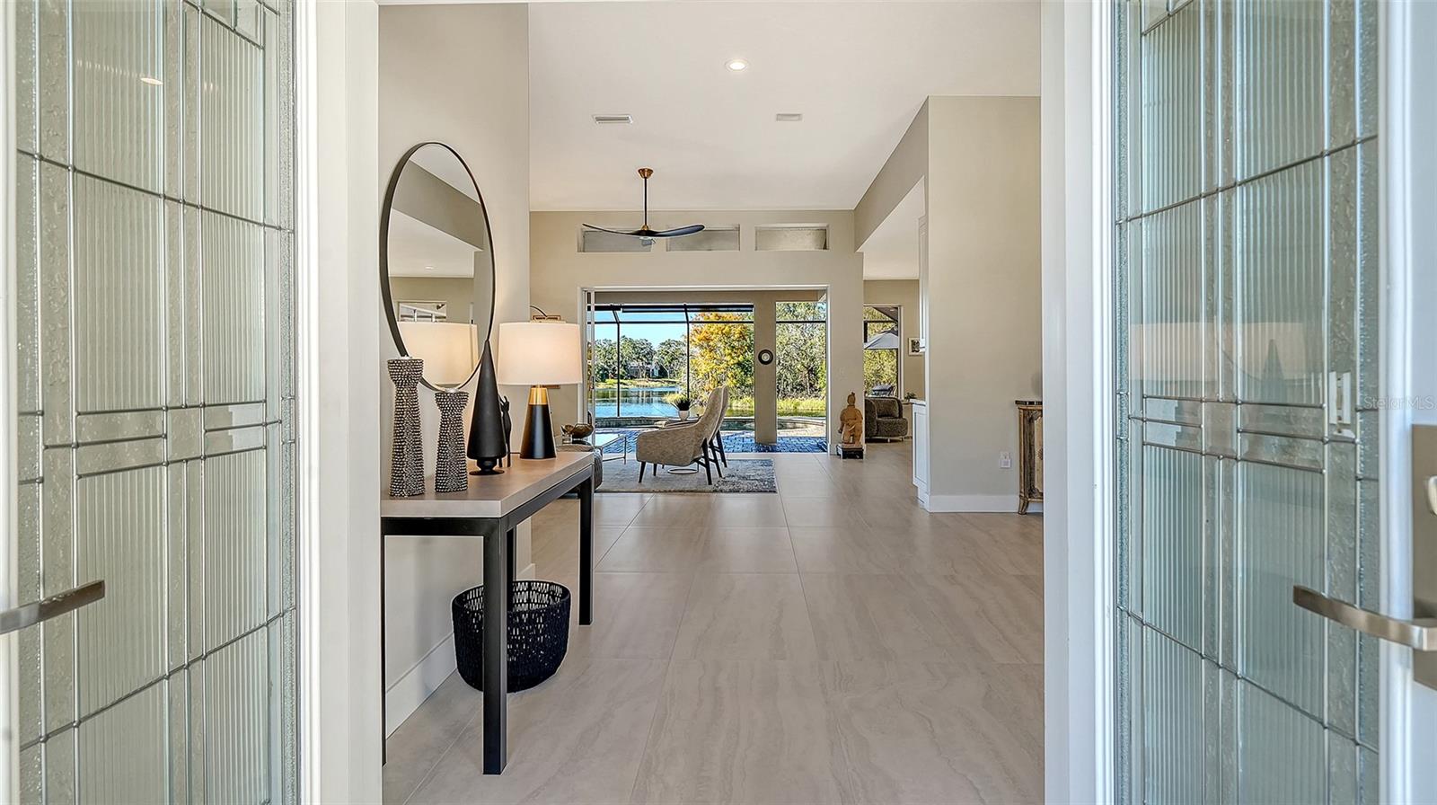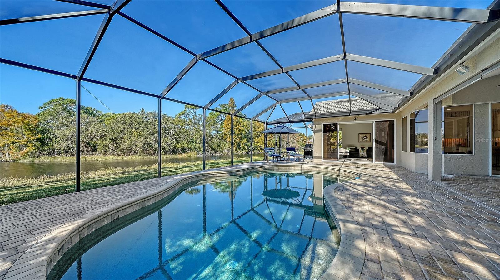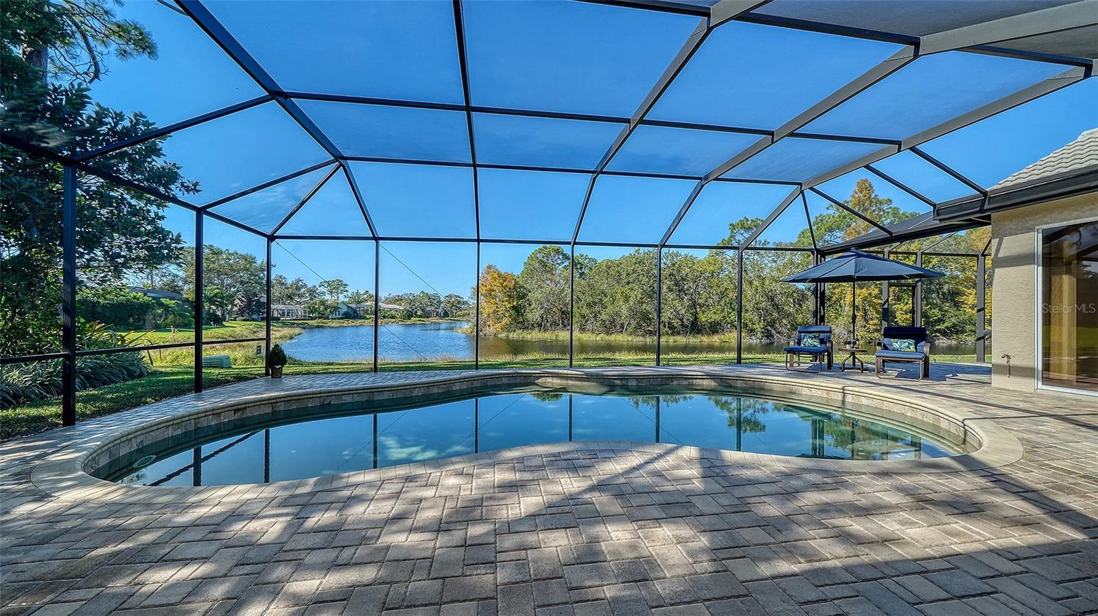 Under contract, (multiple offers) accepting backup offers. Experience refined Sarasota living in this updated four-bedroom, two-bath residence in the Deer Creek community. Italian tile flooring throughout the main living areas enhances the open design while complementing abundant natural light. The owners restructured the floor plan by removing select interior walls to create expanded gathering spaces designed for entertaining and to maximize panoramic water views. The enhanced layout improves sightlines and flow throughout the main living areas. A gourmet kitchen features a designer Italian marble backsplash, quartz countertops and an expansive center island, complemented by premium Thermador appliances including an induction cooktop. The open configuration supports both everyday living and easy entertaining. The luxurious quartz continues into the family room bar and rises along the wall for a beautiful seamless finish. A custom built-in bookcase and television unit anchors the family room with integrated storage. Quartz countertops are also featured in the laundry room, creating consistency across the living spaces. Positioned to capture expansive open-water views, the residence offers privacy and a tranquil setting from multiple vantage points. Major system updates include a tile roof in 2018, AC in 2019 and water heater in 2022. Additional interior enhancements include all new interior door hardware, updated lighting fixtures and ceiling fans throughout the residence, contributing to a cohesive fresh interior aesthetic. Outdoor living areas have been upgraded with pavers throughout the entire pool deck and the pool cage has been repainted and rescreened. The outdoor area offers covered space for dining, entertaining or relaxing with premium water views. Located in the Deer Creek community of Sarasota, this residence combines upgraded finishes, privacy and seamless indoor-outdoor living. The fourth bedroom is currently utilized as an office.