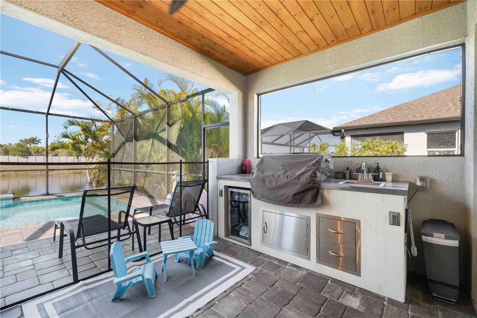 LUXURY, LOCATION, AND LIFESTYLE - this is modern Lakewood Ranch living at its finest. Just moments from the vibrant energy of Waterside Place and Lakewood Ranch Downtown, this impeccably designed residence delivers a refined blend of comfort, functionality, and elevated style. Thoughtfully upgraded and beautifully maintained, the home is perfectly suited for both relaxed everyday living and effortless entertaining. At the heart of the home, the open-concept gourmet kitchen features a spacious center island, quartz countertops, stainless steel appliances, and upgraded cabinetry, seamlessly flowing into the great room, dining area, and outdoor living space. Step outside to your private backyard retreat, where a heated resort-style pool, fully equipped outdoor kitchen, mature landscaping, and fencing create an inviting oasis - enhanced by solar energy efficiency for forward-thinking living. The flexible floor plan offers 4 bedrooms, 3.5 bathrooms, a private office on the main level, and an upstairs loft. The first-floor primary suite provides a peaceful escape with a spa-inspired bath, dual vanities, glass-enclosed shower, and custom walk-in closet. Three upstairs bedrooms and a spacious upstairs loft room/area are ideal for guests or multi-generational living. Enjoy tranquil water views from the upstairs balcony overlooking the pond, with no rear neighbors for added privacy. Additional highlights include abundant storage throughout, built-in upper laundry cabinetry, designer closets in select bedrooms, and a newly replaced dishwasher (2025). Built by M/I Homes, this custom residence showcases timeless finishes, thoughtful craftsmanship, and a layout designed for modern lifestyles. Located in Hidden Creek, residents enjoy NO CDD fees, lower HOA dues, and a prime location just minutes from Waterside Place, UTC, Lakewood Ranch amenities, and Sarasota's renowned Gulf Coast beaches. Schedule your private showing today and experience the perfect balance of luxury, convenience, and Florida living!