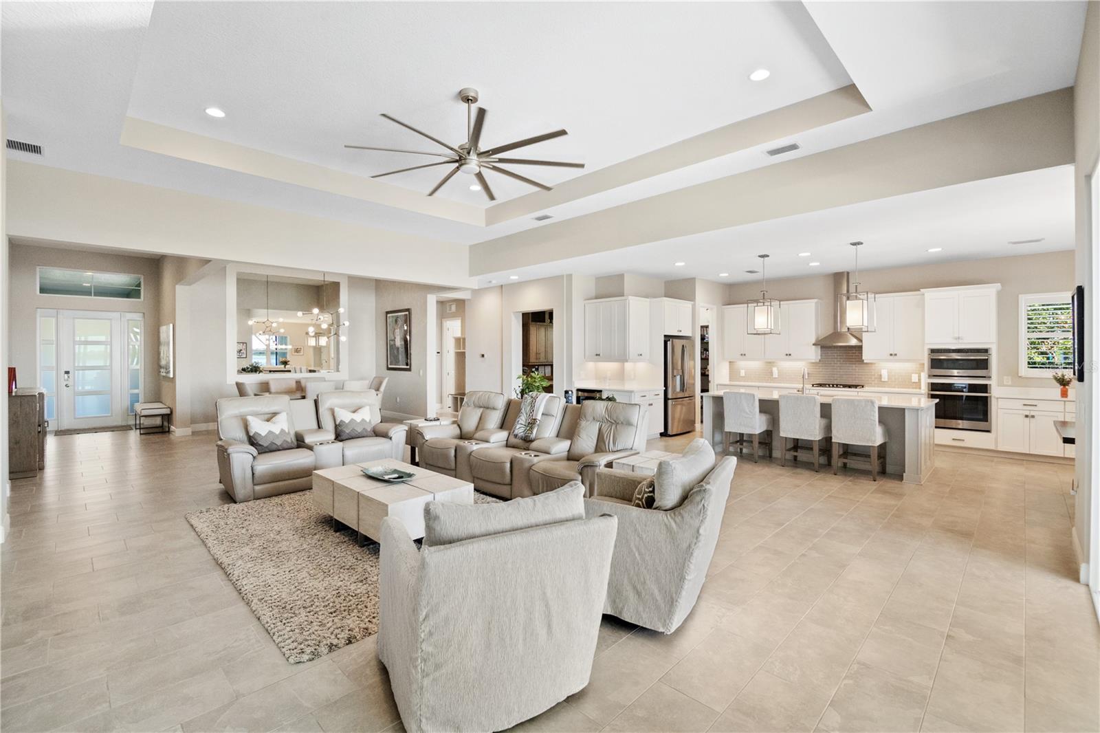 Nestled in the heart of the prestigious Lakehouse Cove community, this extraordinary home redefines Florida luxury living with its unparalleled blend of elegance, seclusion, and natural beauty. Sitting on the largest lot in Lakehouse Cove, this property offers an unmatched sense of privacy, with a 35-foot buffer on one side and 50 feet on the other. Adding to its exclusivity, the home boasts 2000 feet of uninterrupted long lake views, with nothing but serene waters and spectacular sunrises & sunsets as your backdrop--no neighbors in sight.This South-facing gem is designed to soak in the Florida sunshine, filling every corner with warm, natural light. Inside, the*open Outrigger floor plan is thoughtfully crafted, featuring a split-bedroom layout for ultimate privacy. The expansive chef's kitchen impresses with two-tone countertops, a gas stove, and abundant storage, making it as functional as it is beautiful. Elegant details like tray ceilings, plantation shutters, and impact-rated windows and sliding doors add sophistication and peace of mind.Step outside, and you'll find an entertainer's dream. The frameless screened patio offers unobstructed views of the shimmering lake, while the heated saltwater pool and summer kitchen set the stage for unforgettable gatherings. The custom landscaped yard and spacious covered patio create a tranquil outdoor haven, and the cozy front patio overlooking a serene wildlife preserve adds even more charm.Practical upgrades abound here: an extended garage for extra convenience, additional cabinetry for effortless organization, and the removal of interior columns to create an open, airy flow. Every detail has been meticulously designed for comfort, style, and a seamless indoor-outdoor lifestyle.Purchasing this home with all its premium upgrades and this prime lot directly from the builder would cost over $2.5 million, if available. Why wait or pay more? This stunning, move-in-ready home is a rare opportunity to own the best of Lakehouse Cove today. Furniture included in the sale