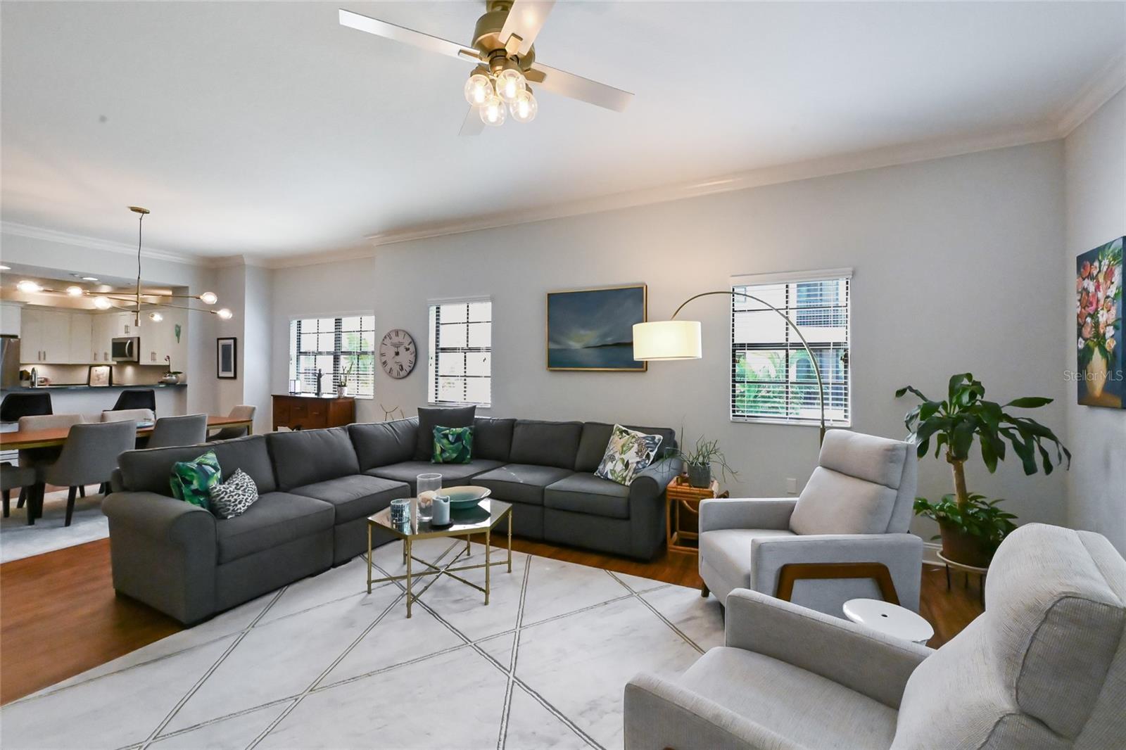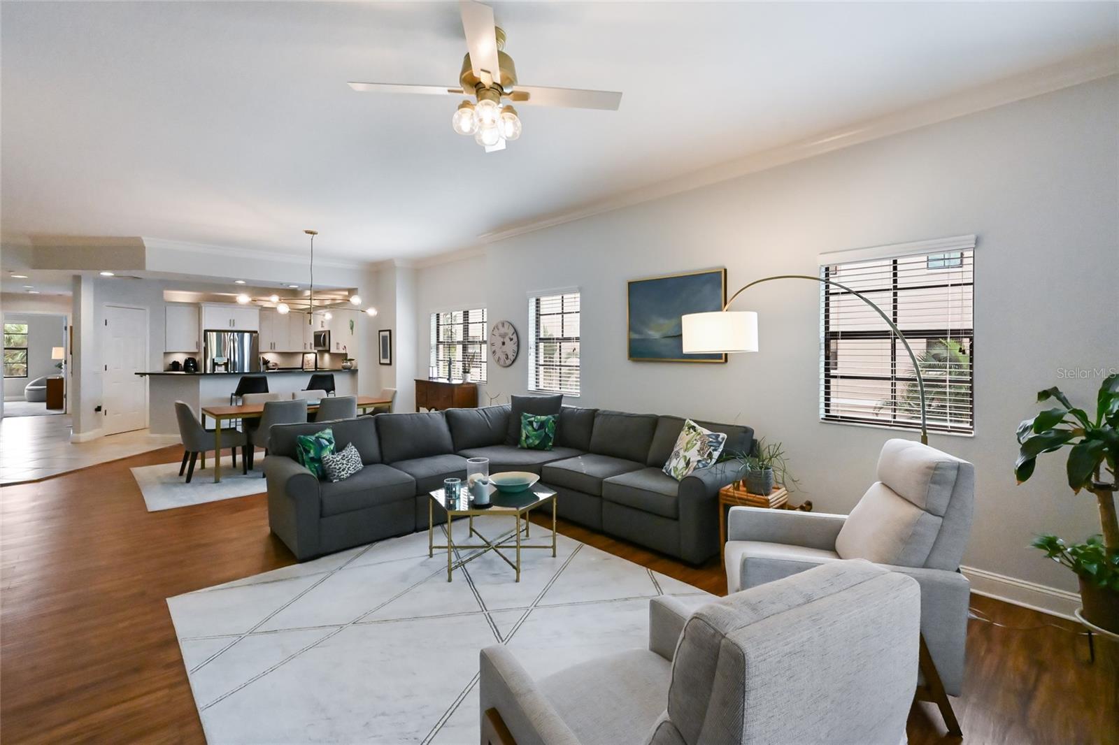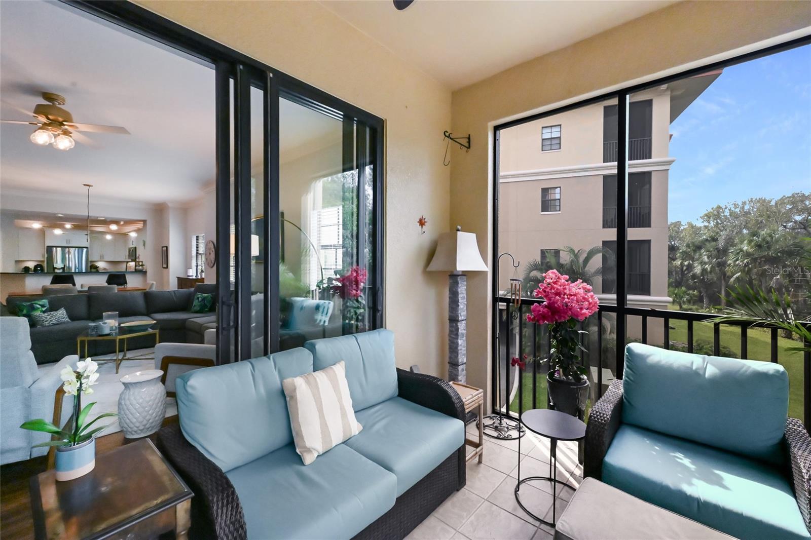 This expansive 2,153 sq ft end-unit condo--the largest currently for sale in Lake Vista--offers 3 bedrooms, 2.5 bathrooms, and peaceful, private preserve views in one of the best locations in all of Lakewood Ranch. Just steps from Lakewood Ranch Main Street and Waterside Place this gated community delivers unmatched walkability, convenience, and lifestyle appeal. The corner/end-unit location provides additional windows, abundant natural light, and enhanced privacy in a quiet setting, all with no stairs and easy access. The thoughtfully designed floor plan is ideal for everyday living and entertaining, featuring spacious, flowing living areas and a convenient half bath for guests. Storage is exceptional, with a large kitchen pantry, linen closets, utility closet, and a full laundry room with cabinetry and utility sink. The primary suite is privately positioned opposite the guest bedrooms and offers a serene retreat with direct lanai access, tranquil preserve views, two his-and-hers closets plus an additional linen closet, dual vanities, a soaking tub, and a built-in vanity. The screened lanai is completely private and generously sized--comparable to those found in many single-family homes. This residence has been meticulously maintained and thoughtfully upgraded, including a kitchen remodel (2022) with new cabinets, uplighting, updated appliances, refreshed flooring, paint, lighting, fans, and smart-home features such as a Nest thermostat and keyless entry. Mechanical systems have been proactively cared for, with HVAC replaced in 2019 and serviced twice annually, an air purification system added in 2022, and a water heater replaced in 2021. All appliances 2020 or newer! The condo experienced no leaks, no hurricane damage, and no power loss during recent storms. Additional highlights include two designated parking spaces, with one ideally located directly next to the entrance--a true "money spot." Residents of Lake Vista enjoy access to a clubhouse with fitness center, resort-style pool and spa, and a grill area overlooking the pool. The HOA has also completed major improvements, including new roofs (2023), new building front doors (2025), remodeled pool (2023) and upcoming new sidewalks (2026), Building painted (2024) with strong reserves and no additional assessments anticipated. A rare opportunity to own a large, move-in-ready condo combining space, privacy, walkability, and long-term value in the heart of Lakewood Ranch. NO CDD FEES!