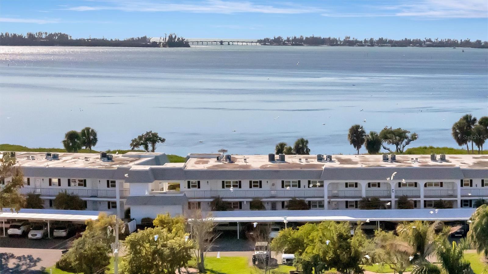Stunning SUNSETS and WATER VIEWS are waiting for you! Relax and enjoy the views of the Longboat Key Bridge over Sarasota Bay through your expansive wall of Impact windows (a $30K upgrade) in this pristine top floor, end unit condo. Perfectly located near Anna Maria Island and Longboat Key sits a community unmatched in this area. Welcome to 4717 Independence Dr. in sought-after Mount Vernon, this area's finest 55+ community offering a vibrant active lifestyle and amenities galore . . . yes we even have boating opportunities so bring your boat or jet skis and begin exploring the waters of Manatee/Sarasota Counties! One of the largest units, 1,556 sq. feet of air-conditioned Florida living offers plenty of room for friends and family, 2-bedroom, 2-bath and featuring a private laundry closet separate from the kitchen, one of the few units offering this upgrade. Newer Impact Windows throughout provide peace of mind. Travertine flooring, tasteful modern solid wood cabinets, beautiful stone counters, breakfast bar plus dining area add to the open flow of this special condo. The split bedroom floorplan is great for privacy and offers a primary ensuite with wide-open water views, updated bathroom and spacious walk-in closet plus a second bedroom and remodeled bath. This end unit offers FIVE additional windows for natural light to flow throughout the condo. A few steps to the elevator (or stairs if you prefer) and you're at your convenient covered parking space complete with a private storage area. Mount Vernon residents enjoy an ACTIVE LIFESTYLE! Low condo fees include water, sewer, trash, recycle, pest control, cable TV, internet, exterior maintenance, including roof and landscaping. Amenities include friendly neighbors, clubhouse w/kitchen, fitness center, a workshop, billiards, tennis/pickleball courts, heated swimming pool, putting green, access to a reserved dock for a one-time fee of $25 (Board approval necessary) and social activities. In and around the community you'll find a bayside pavilion, bayfront nature trail, bird sanctuary, butterfly garden and so much more. Close to shopping, dining, some of Florida's best beaches and unlimited sunshine! Is this upgraded, completely furnished home on your wish list? With low condo fees and priced below market value you'll want to schedule your private showing today. Video available upon request.