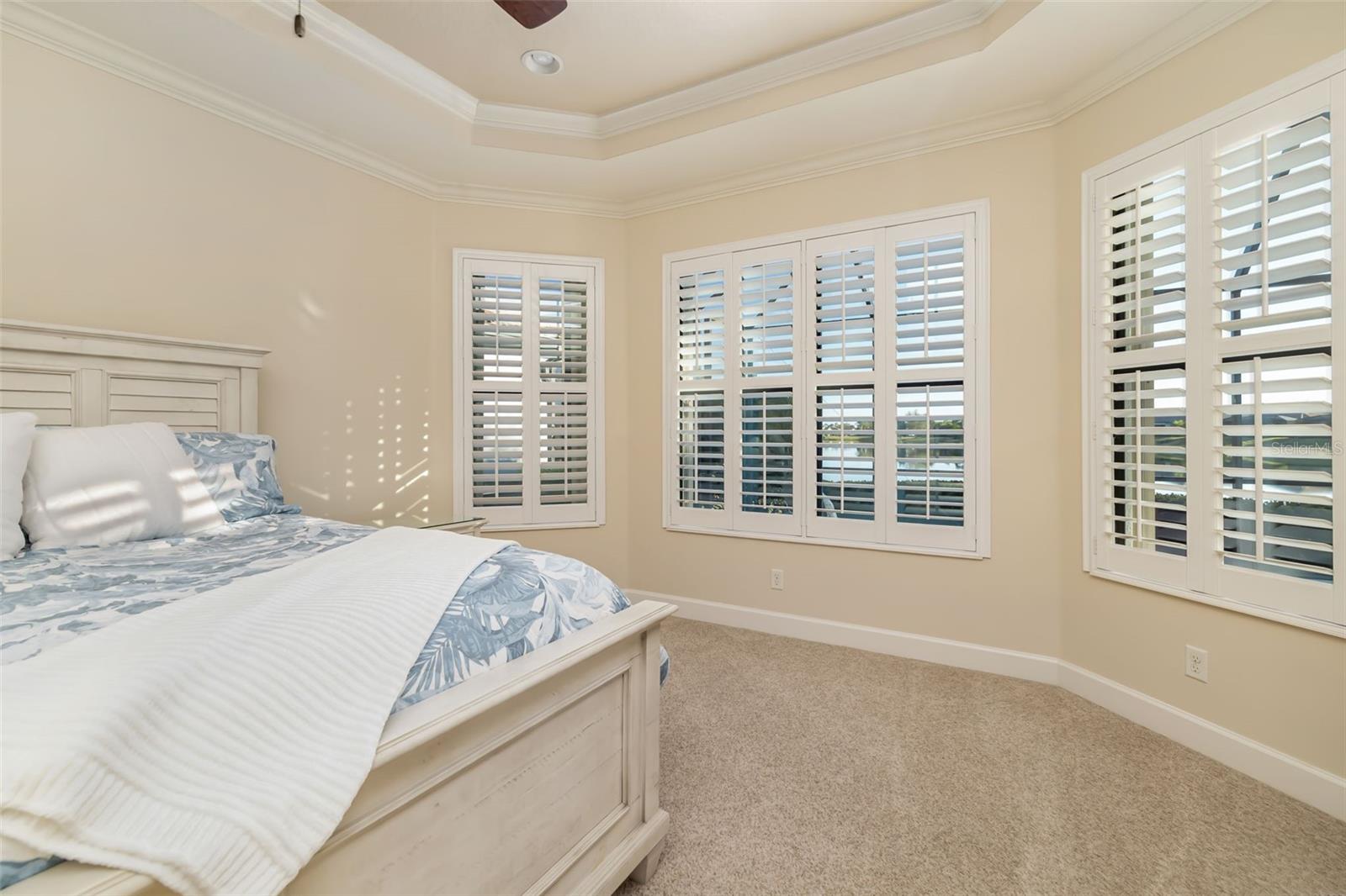 Welcome to Esplanade Golf & Country Club, one of the most sought after resort-style communities in Lakewood Ranch. This upscale waterfront 2-bedroom home with a private office (easily a 3rd bedroom) offers the perfect blend of elegance, comfort, and breathtaking sunset views. As you enter, you're greeted by beautiful tile flooring throughout the main living areas and immediate expansive water views that set the tone for Florida living at its finest. The open concept floor plan showcases a chef's luxury kitchen featuring upgraded cabinetry, granite countertops, newer stainless-steel appliances, and a large center island making it ideal for entertaining. The kitchen flows seamlessly into the living and dining areas, highlighted by wall-to-wall sliding glass doors that open to the lanai. The oversized primary suite offers tranquil water views, dual walk-in closets, dual vanities, and a spacious walk-in tiled shower. A split floor plan provides privacy with a guest bedroom and full bathroom at the front of the home, along with a private office or optional third bedroom. Step outside to your extended covered and screened lanai, complete with a custom outdoor kitchen and bar, all overlooking some of the most beautiful water views in the community creating the perfect setting to enjoy stunning Florida sunsets. Additional features include a full laundry room with custom cabinetry and sink, and an oversized two-car garage. Notable upgrades include tray ceilings, crown molding, garage flooring, 2024 A/C, outdoor kitchen, new toilets, newer appliances, fresh paint, and all-new landscaping with lawn maintenance included. Esplanade Golf & Country Club offers unmatched resort-style amenities, including championship golf, two clubhouses, three resort pools, a fitness center, tennis and pickleball courts, a spa, restaurant, Bahama Bar, and two dog parks, just to name a few. Centrally located, you're minutes from shopping, dining, and only a short drive to Florida's world-famous beaches. Don't miss this incredible opportunity and schedule your private showing today.