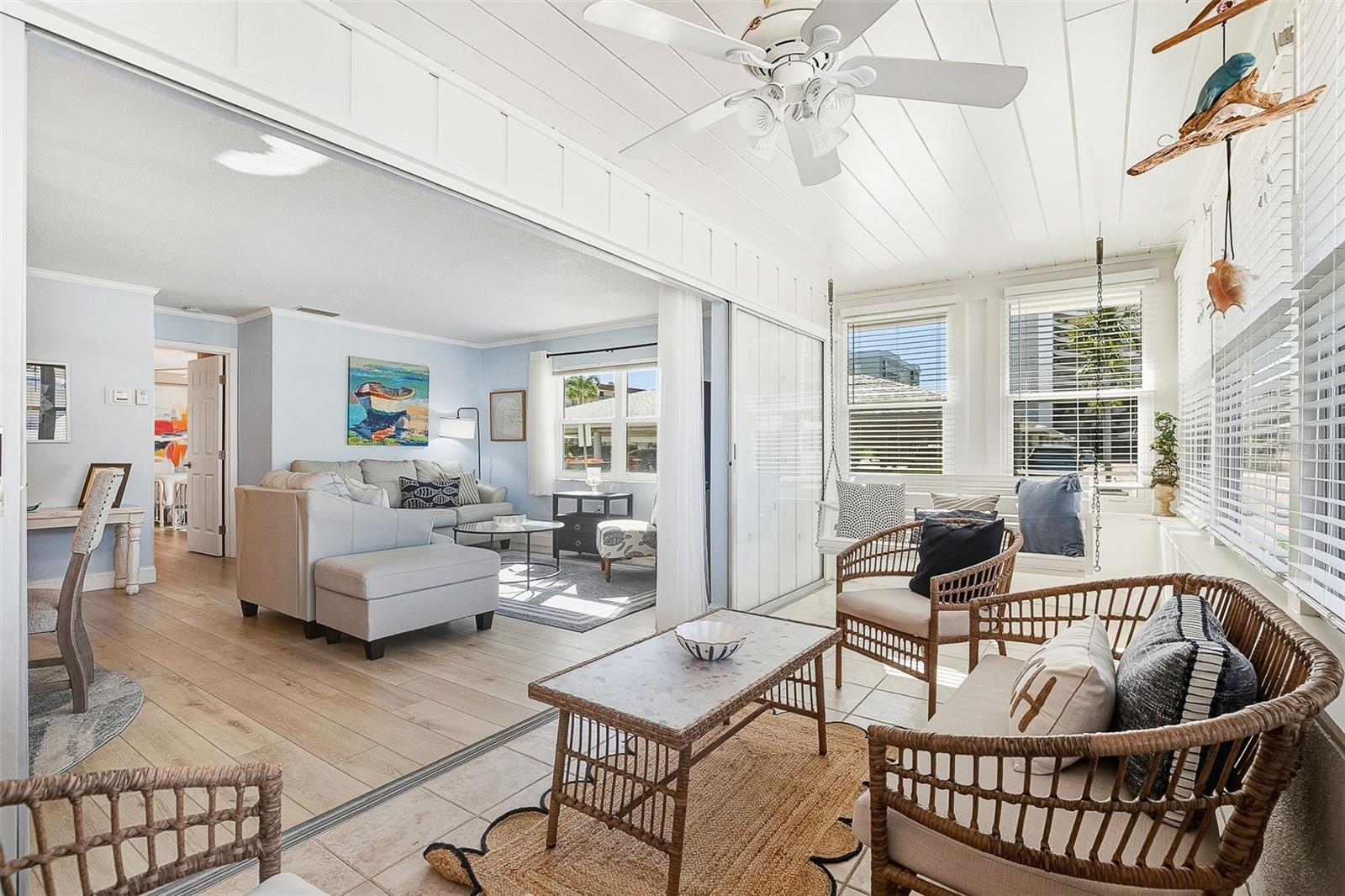 Everything is brand new in this beautifully renovated, turnkey furnished two bedroom, two bath end-unit villa offering an exceptional Siesta Key beach lifestyle just steps from the Gulf. The desirable split floor plan features spacious bedrooms, generous closets, and an open-concept living area filled with natural light, enhanced by a sun-lit Florida room. The updated kitchen is thoughtfully designed with granite countertops, a coordinating backsplash, soft-close cabinetry, and new stainless steel appliances. The primary suite offers a wall-to-wall closet, transom window, and sliding glass doors opening to the Florida room. Additional highlights include luxury vinyl plank flooring, all-new furnishings, and an attached one-car garage with washer and dryer plus ample storage for beach gear. Whether enjoyed as a private coastal retreat or a lock-and-leave rental opportunity, this residence truly offers the best of both worlds.Crystal Sands is a well-managed, financially stable beachfront community that has remained highly desirable since 1969 due to consistent upkeep and thoughtful renovations. The condominium comprises a collection of one, two, and three bedroom villas along with a Gulf-front high-rise tower, all set within beautifully maintained grounds. Residents and guests enjoy private beach access with umbrellas and loungers, two heated swimming pools, a clubhouse, on-site rental management, and night security, all just moments from Siesta Key's renowned dining and shopping.