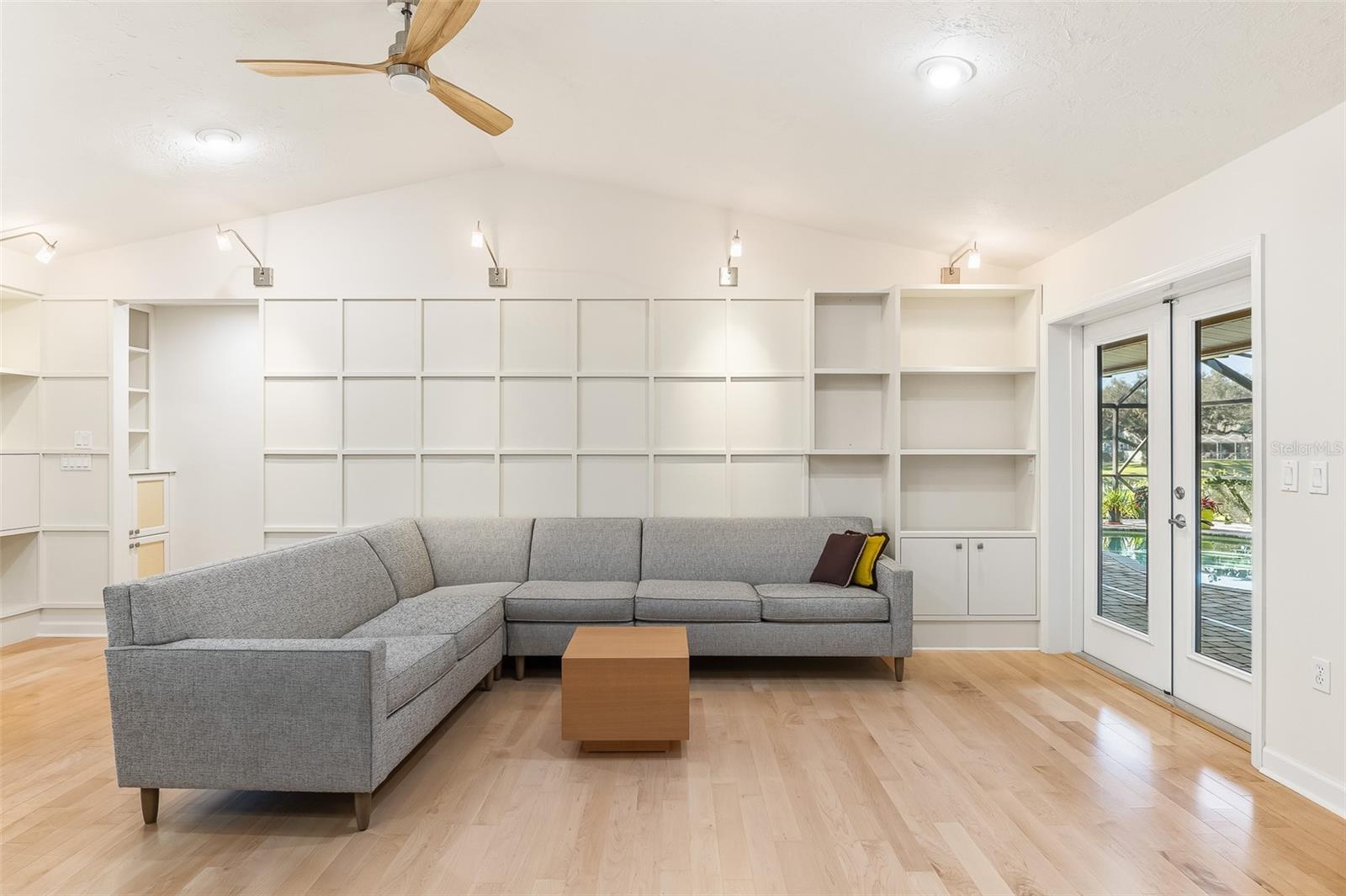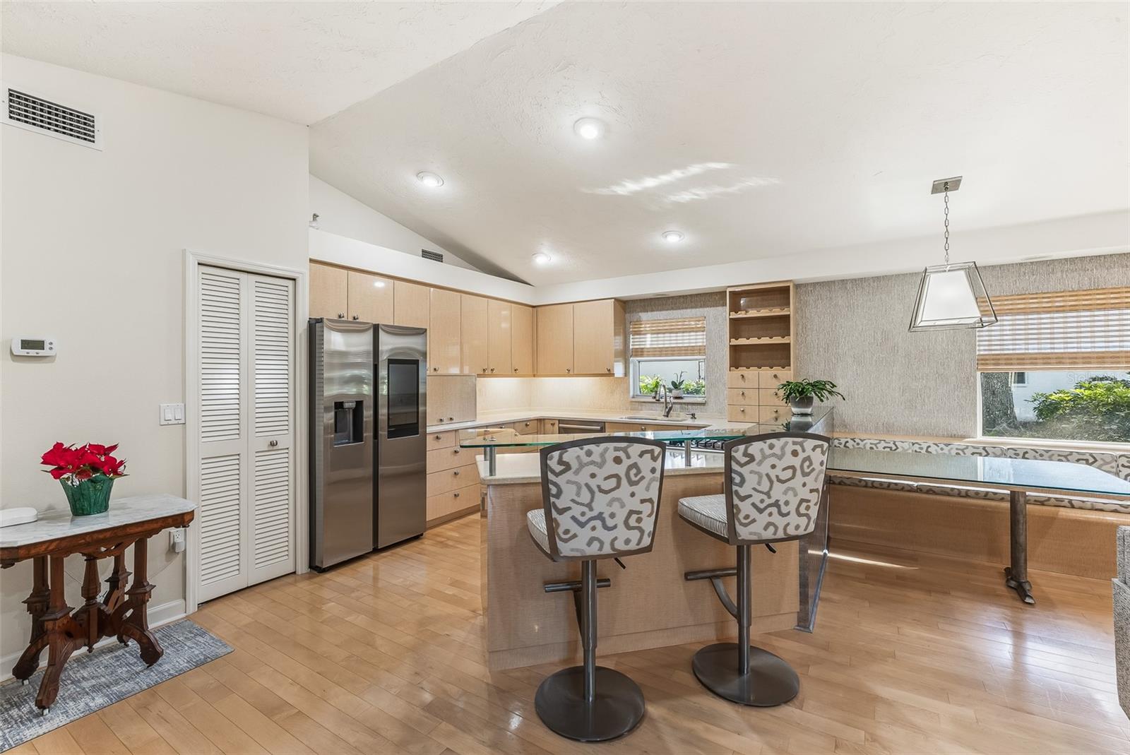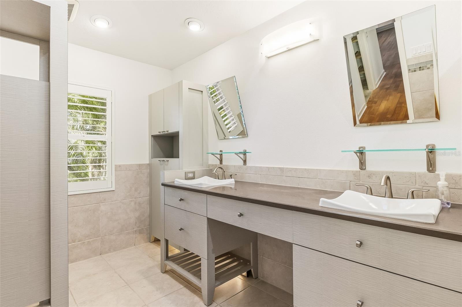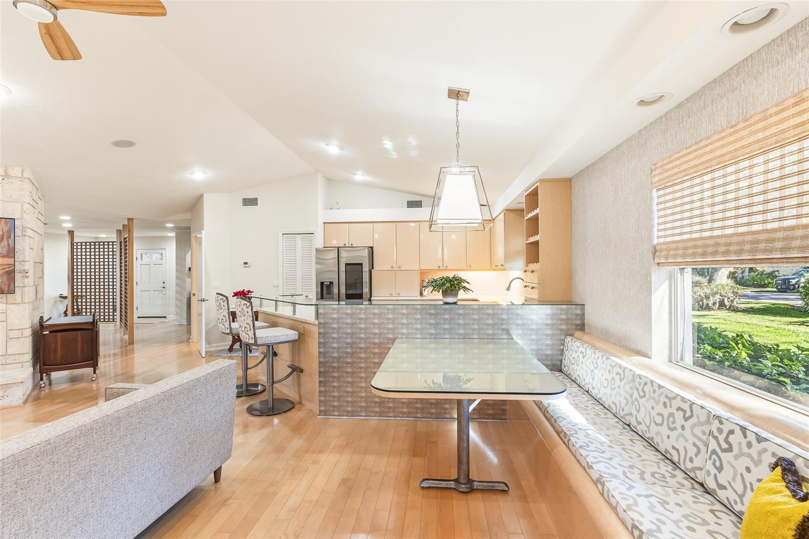 One or more photo(s) has been virtually staged. Discover this stunning three-bedroom, two-and-a-half-bath home nestled on a quiet street in the sought-after Sherwood Forest community. Set on a spacious, beautifully treed lakefront lot, this residence combines serene natural surroundings with elegant modern living.Step inside to find neutral-toned engineered hardwood floors flowing throughout the home, complemented by custom cabinetry and built-ins thoughtfully placed in several rooms. At the heart of the living space, a double-sided gas fireplace set in striking Coral Stone creates a warm and inviting ambiance.The upgraded kitchen features premium Bosch and Samsung appliances, abundant storage, and a charming built-in seat bench and table for casual dining. The luxurious primary suite offers his-and-hers walk-in closets and a spa-inspired bathroom with double sinks and generous storage solutions.Outdoor living is equally impressive, featuring a fully equipped outdoor kitchen with a custom granite bar, cable TV, and a Sonos sound system that extends through the family room, primary bedroom, and lanai--perfect for entertaining or relaxing lakeside. Hurricane Shutters for some of the windows in the home. Roof replaced in 2018. Gorgeous landscaping with Sand Oak Trees, irrigation to keep your St. Augustine lawn pristine. Paver pool area, driveway and walkways.Great central location in town! Not many communities have the larger lots, majestic oaks and winding roads that Sherwood Forest exudes. Enjoy shopping, dining, beaches, the arts and so much more that Sarasota has to offer.A rare opportunity to own a refined home blending comfort, craftsmanship, and lakefront tranquility.