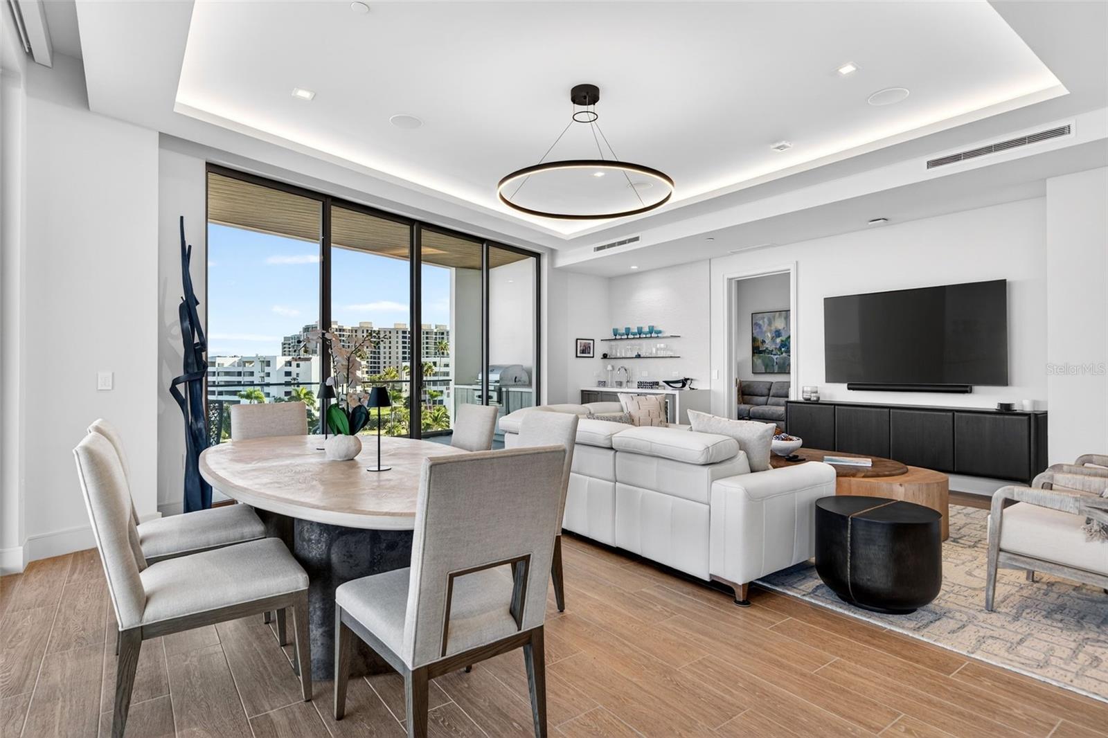 Spectacular Sarasota Bay and city skyline views set the stage for this exquisite and private two-bedroom, two-bath residence at the prestigious St. Regis Longboat Key. Offered fully furnished and thoughtfully designed by Studio G Interiors, the home showcases an elegant coastal aesthetic throughout. A large wraparound terrace with a private gas grill provides the perfect setting for indoor-outdoor living and entertaining. The spacious owner's suite enjoys breathtaking Sarasota Bay views and features a spa-like bathroom appointed with Poggenpohl cabinetry and quartz countertops. The en suite guest bedroom offers privacy and comfort with custom-designed closets, making it ideal for visitors or extended stays. Additional highlights include electronic blinds throughout, a built-in office area, and a sophisticated wet bar with designer tile, custom shelving, a wine refrigerator, and an ice maker--perfect for entertaining. The gourmet kitchen is beautifully appointed with Poggenpohl cabinetry, a Sub-Zero refrigerator, Wolf double ovens and six-burner cooktop, and a Cove dishwasher. A dedicated laundry room with sink is equipped with an Electrolux washer and dryer. Completing this exceptional residence is a private two-car garage, offering rare convenience and security. Beyond the residence, The St. Regis Longboat Key Resort offers a curated collection of world-class amenities designed exclusively for residents. The private clubhouse includes a state-of-the-art fitness center, a resident-only pool and spa, and access to the signature St. Regis Butler and Concierge services that redefine luxury living. Indulge in the oceanfront spa, diverse dining venues, and beachfront cabanas, or enjoy family-friendly experiences such as a lazy river and saltwater lagoon teeming with tropical fish, stingrays, and resident tortoises. Set on 17 acres of pristine beachfront, and just 3.5 miles from St. Armands Circle's renowned shopping and dining, this residence represents more than a home--it's an invitation to embrace the legendary St. Regis lifestyle, where elegance, comfort, and unparalleled service define every moment. Begin your journey to Live Exquisite at The St. Regis Longboat Key.