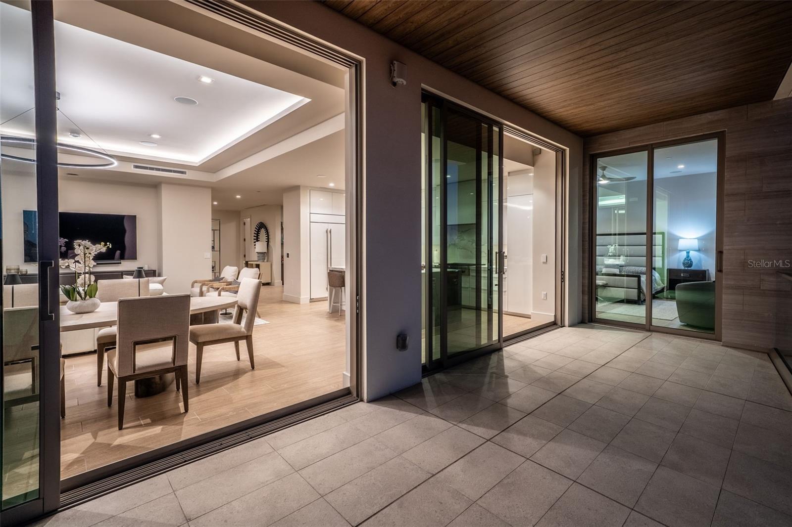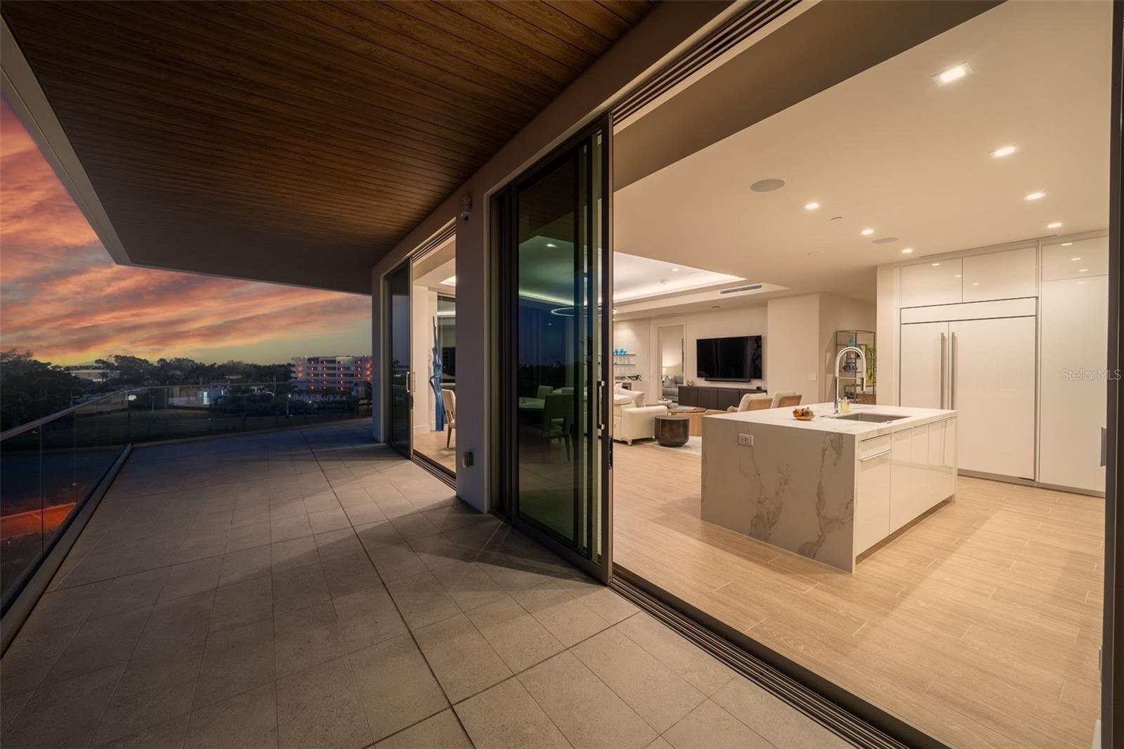 Exterior: Balcony, Lighting, Outdoor Grill, Outdoor Kitchen, Sidewalk, Sliding Doors, Storage