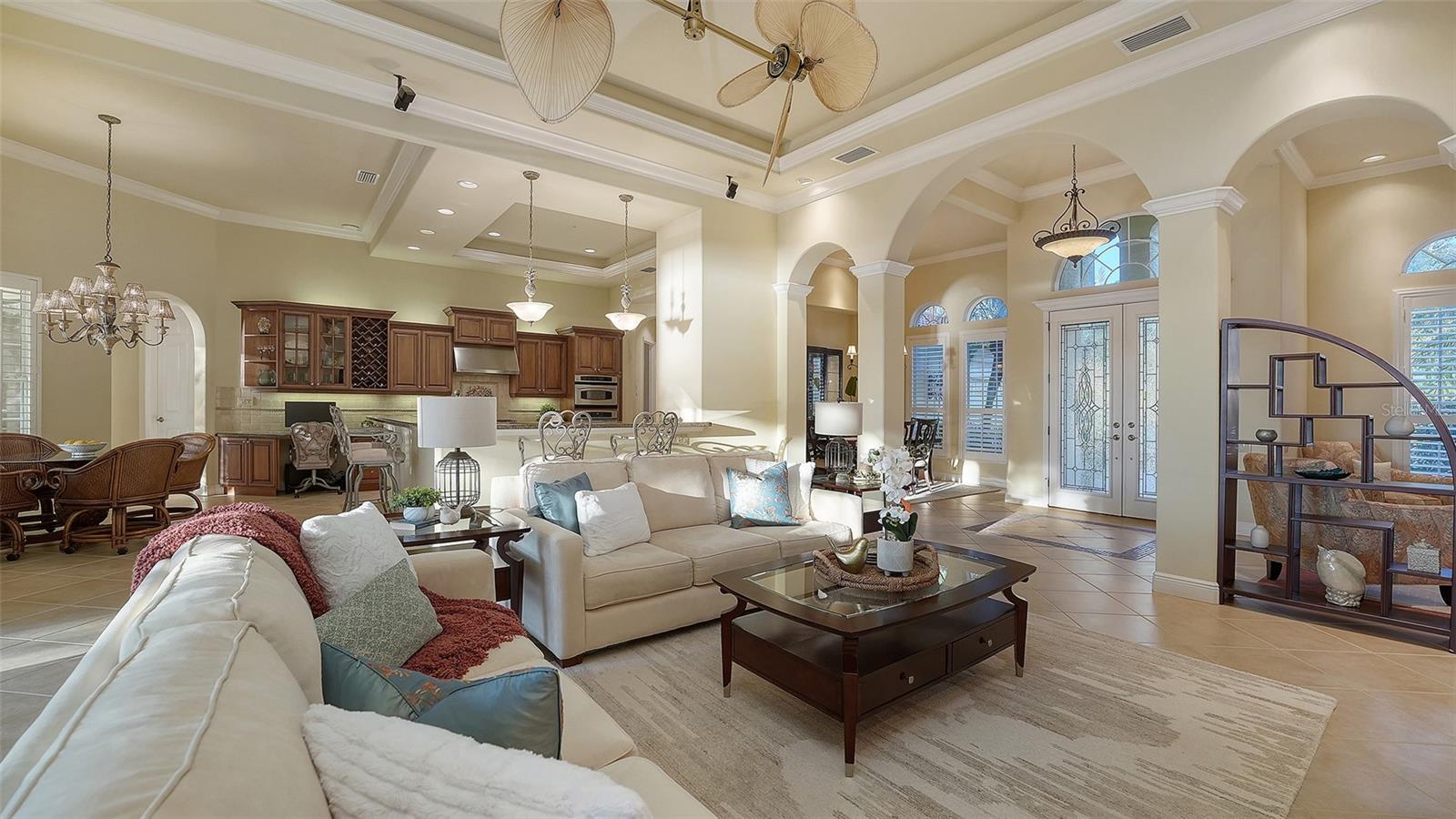 Set against a stunning backdrop of tranquil water and preserved natural beauty, this custom John Cannon residence delivers refined elegance within the gated Lakewood Ranch Country Club. Designed with an open, entertainer-friendly floor plan, the home offers three bedrooms, three baths, office, oversized two-car side-load garage with a separate golf cart garage entry, all showcasing exceptional craftsmanship throughout.Architectural details shine with tray ceilings, crown moldings, custom built-ins, and timeless tile flooring in the main living spaces. The gourmet kitchen is both stylish and functional, featuring rich wood cabinetry, granite countertops, stainless steel appliances, tile backsplash, breakfast bar, and a built-in desk. A casual dining area framed by an expansive aquarium window provides serene pool and preserve views.The private owner's retreat offers a spacious custom walk-in closet and direct access to the lanai, while the spa-inspired bath features dual vanities, a soaking tub, and a large walk-in shower. Sliding glass doors from the family room open to an oversized covered lanai, where a heated pool is surrounded by lush landscaping and breathtaking water and preserve vistas--perfect for relaxing or entertaining year-round.Residents of Lakewood Ranch Country Club enjoy access to an unmatched Florida lifestyle, including four championship golf courses, lighted tennis courts, a private athletic facility, polo club, scenic parks, and close proximity to University Town Center, Main Street, and premier dining and shopping.This is luxury living at its finest in one of the area's most coveted communities.