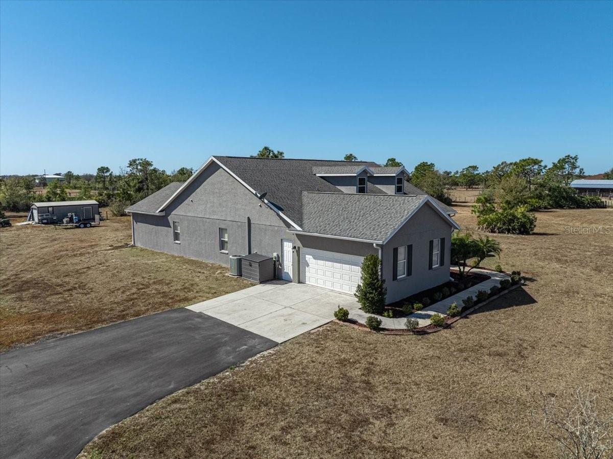 LIVE OFF THE LAND! Grow your own vegetables, bring your animals, and embrace the peaceful rhythm of country living -- all while being just 15 minutes from shopping and dining.This impeccably maintained 3-bedroom, 3-bath residence offers a thoughtful and versatile layout, including a dedicated office and an expansive bonus room currently used as a game room. The bonus space presents an excellent opportunity for a private in-law suite, with a full bath conveniently nearby. Two additional bedrooms with walk-in closets and a shared bath are tucked away in their own wing of the home, offering privacy and comfort.The spacious primary suite easily accommodates a king-size bed with additional furnishings and a sitting area. The luxurious primary bath features separate his-and-her vanities, a private water closet, a garden tub, and a Roman walk-in shower.Designed with impressive volume and natural light, the great room and kitchen boast soaring 12-foot ceilings, while the remaining rooms feature 10-foot ceilings throughout. The kitchen offers abundant cabinetry, a large double-door pantry, a formal dining room, and additional casual dining space.The oversized laundry room is exceptionally functional, complete with a built-in vanity and sink, extensive cabinetry, folding counter space, hanging area, and built-in hampers. The 2.5-car garage includes 9-foot built-in storage closets, and a 50-amp generator connector adds convenience and peace of mind.The salt water pool is long enough to actually swim laps. Enjoy entertaining under two spacious covered seating areas.Outdoors, you'll find a 12x30 workshop/shed equipped with water and electricity, beautiful pine tongue-and-groove porch ceilings, and a stunning pool area with two expansive covered spaces ideal for outdoor dining and lounging. The Roof is 5 Years Young. The Paved Driveway stretches approximately 300 feet, creating a grand and private entrance.There is ample space to build a barn, stables, or even a large custom garage for automotive enthusiasts. Located approximately 5 miles from the Bradenton Motorsports Park. Bring the whole family and experience this exceptional property for yourself.Washer and dryer do not convey.