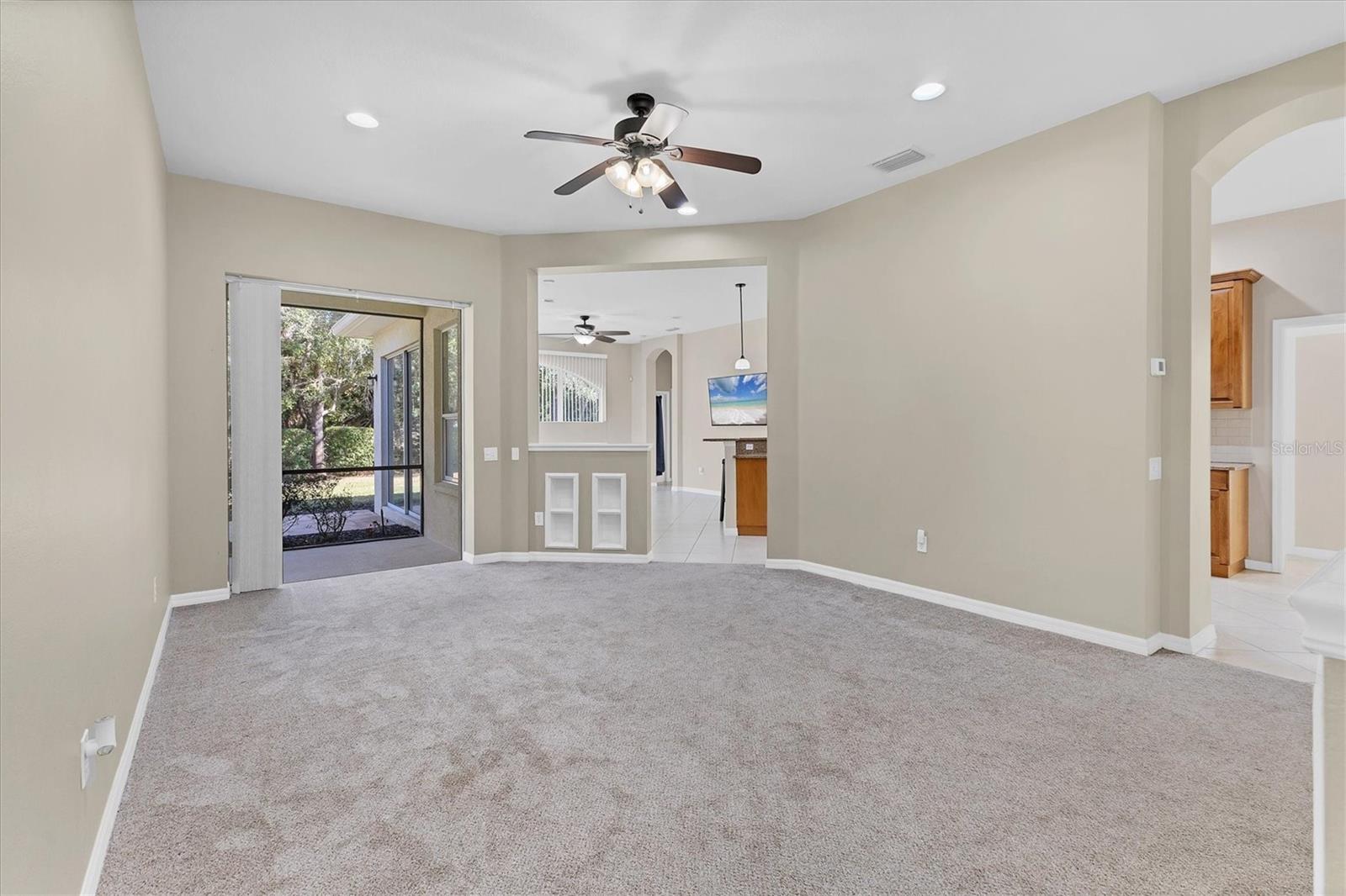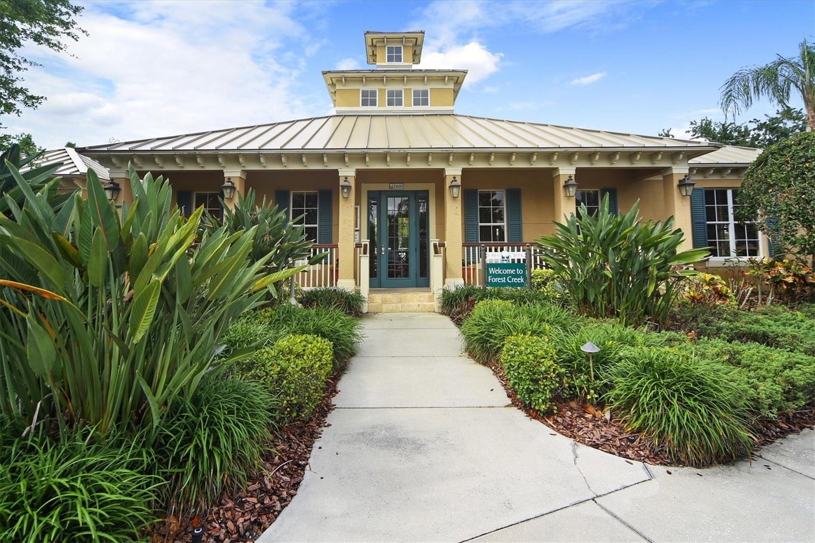 One or more photo(s) has been virtually staged. Motivated seller!!! Tucked away in a private enclave within the gated community of Forest Creek, this beautifully maintained 4-bedroom, 3-bath home offers an open floor plan with 10-foot ceilings and large windows that flood the space with natural light. The generous kitchen opens to the family room and features granite countertops, 42-inch cabinetry with crown molding, and a convenient eat-in bar--perfect for casual dining and entertaining. On one side of the home, two bedrooms share a full bath. The owner's suite is privately situated on the opposite side and includes a well-appointed en-suite bath with dual sinks, a garden tub, a separate walk-in shower, and a private water closet. Tucked away in the back is the 4th bedroom. The fourth bedroom has been used as a mother-in-law suite, complete with its own entrance and private bathroom with a walk-in shower, offering flexibility for guests or extended family. Step outside to the screened lanai overlooking the tranquil backyard with mature landscaping, providing a peaceful retreat. Forest Creek offers an array of community amenities, including scenic walking paths, a large community pond for fishing, kayaking, and canoeing, a clubhouse with a billiards room and fitness center, a heated pool and hot tub, playgrounds, basketball court, and even a dog park for your furry friends. Relax on the dock and watch wildlife frolic in this beautiful setting. For your peace of mind: Roof was replaced in 03/2025, AC was replaced in 2022, carpets were replaced in 2024 and hot water heater in 2025.