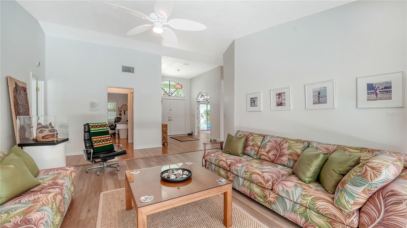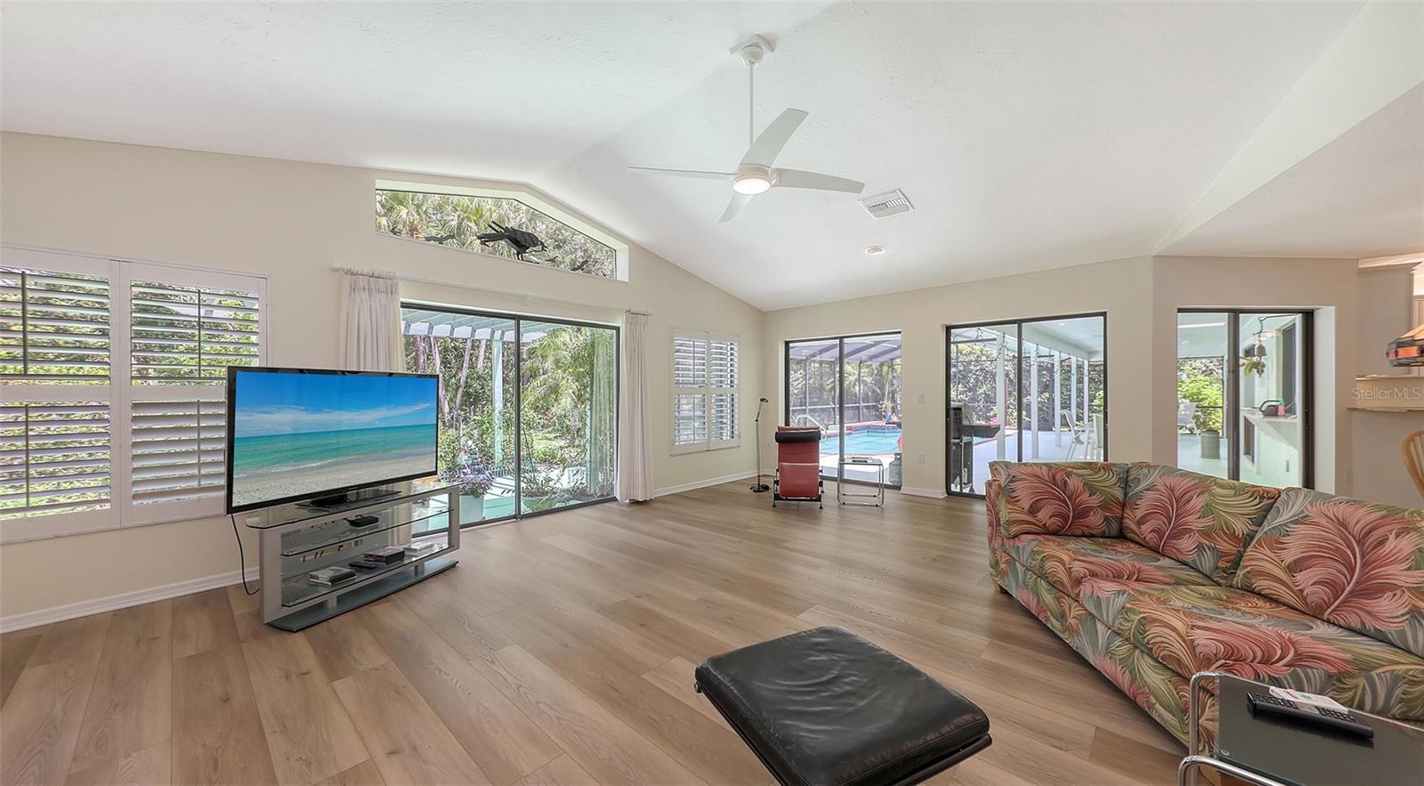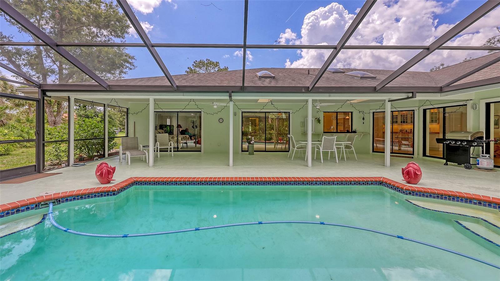 Discover this beautifully maintained three bedroom two and one half bath pool home, thoughtfully updated to provide comfort, efficiency, and contemporary style in a natural setting. The large kitchen has been updated with a new stove, refrigerator, dishwasher, disposal, and reverse osmosis drinking water equipment. Stylish luxury vinyl plank flooring has been installed in the living room, all three bedrooms, the great room, and kitchen. New ceiling fans have also been installed throughout the interior and lanai. The pool features a new pool sweep, and the entire pool cage frame has been freshly painted along with new screening installed in 2020. Fresh paint inside and out enhances every space with a clean, light, and bright look with abundant natural light provided by skylights throughout. The updates were more than just skin deep; A whole house water conditioner ensures pristine water quality, 2 separate water heaters and 2 HVAC systems provide peace of mind and redundancy. Recent enhancements include a reinforced roof structure with the addition of "third nail" and enhanced roof straps providing peace of mind and lowered insurance costs. Other improvements include a new washing machine, water heater (2021) and a new well pump for irrigation. The professionally designed and well maintained landscaping is amazing to behold and offers outstanding curb appeal in both the front and back yards. For those who love outdoor living, this home offers a sublime natural experience featuring a meticulously maintained butterfly garden including an elegant pergola just outside the family room's sliding doors providing a serene and tranquil setting rarely found in even the most rural settings allowing you to watch the birds, butterflies and even the occasional deer cavort from the comfort of your family room. This property combines thoughtful upgrades, and inviting living spaces both inside and out--ready for you to move in and enjoy. Property being sold as-is. Schedule your tour today to experience this exceptional opportunity firsthand!