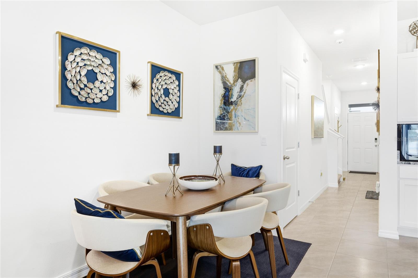 Welcome to this beautifully maintained end-unit townhome in Braden Pointe, where thoughtful design meets peaceful pond views. Built in 2023, this 3 bedroom, 2.5 bathroom residence offers a rare combination of privacy, natural light, and modern finishes in one of the community's most desirable placements. The open-concept main level is designed for everyday living and effortless entertaining. A bright, modern kitchen features white cabinetry, stainless steel appliances, a large center island with seating, and a walk-in pantry enhanced with custom shelving. Tile flooring flows throughout the first floor, leading seamlessly into the dining and living areas filled with natural light from the additional end-unit windows. Sliding glass doors open to a screened, covered lanai overlooking the pond and fountain, creating a serene backdrop ideal for morning coffee or evening relaxation. The absence of rear neighbors enhances privacy while maintaining an open, airy feel. Upstairs, a versatile loft provides flexible space for a home office, reading nook, or media area. The primary suite is generously sized and features two walk-in closets with custom built-ins and a well-appointed ensuite bath with dual vanities. Two additional bedrooms share a full bathroom, offering comfortable accommodations for guests or household members. Additional highlights include a one-car garage, hurricane shutters for all windows including the lanai doors, smart home features, and upgraded fixtures throughout. The home is not located in a flood or evacuation zone, adding peace of mind. Braden Pointe offers a quiet, well-kept setting with sidewalks, green spaces, and a community picnic pavilion. HOA fees include water, lawn care, and professional management, supporting a low-maintenance lifestyle. Conveniently located near grocery stores, major roadways, and a short drive to area beaches, this end-unit townhome delivers comfort, convenience, and long-term value in a setting that truly feels like home. **THIS PROPERTY QUALIFIES FOR A 1% LENDER INCENTIVE IF USING PREFERRED LENDER. INQUIRE FOR MORE DETAILS.**