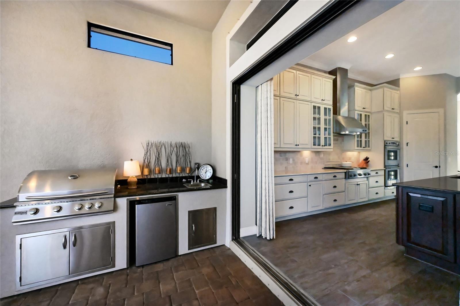Exterior: Hurricane Shutters, Outdoor Kitchen, Rain Gutters, Sliding Doors